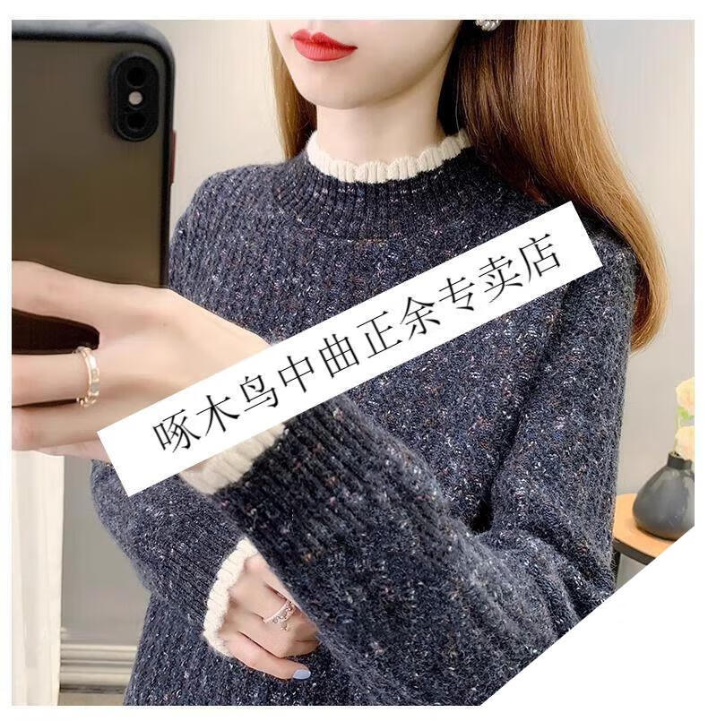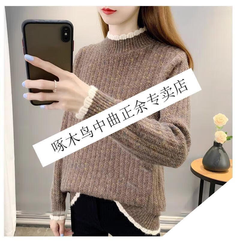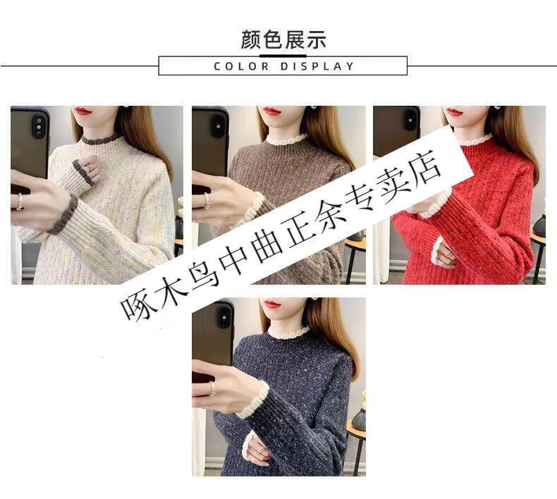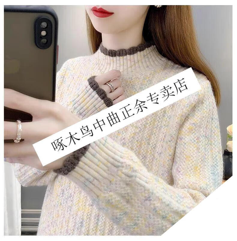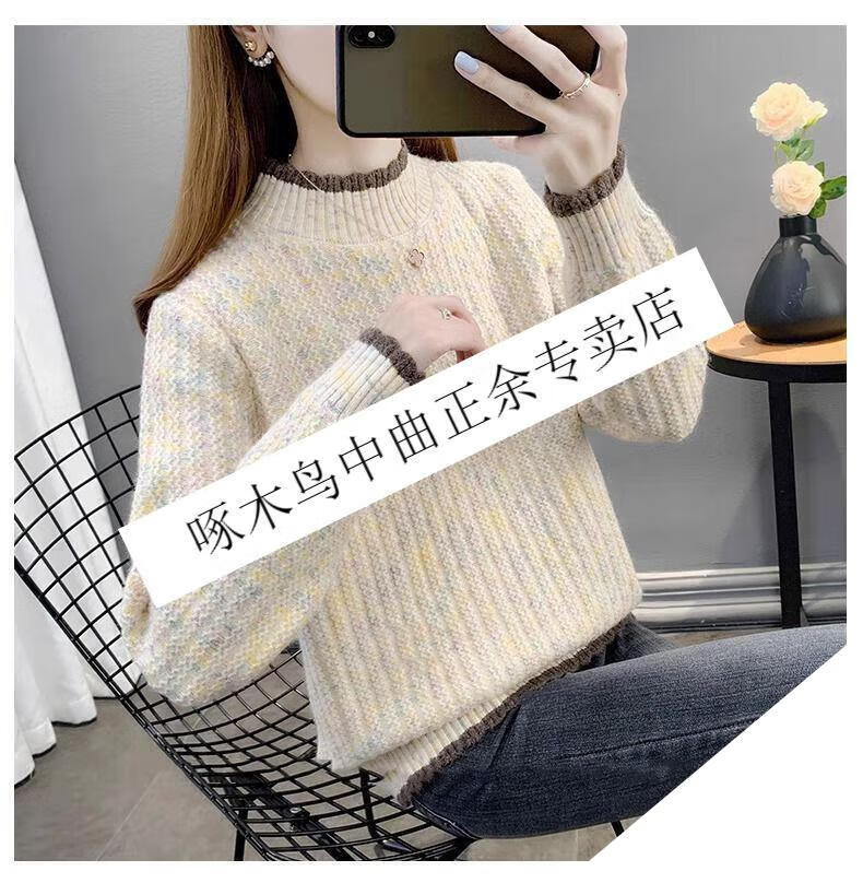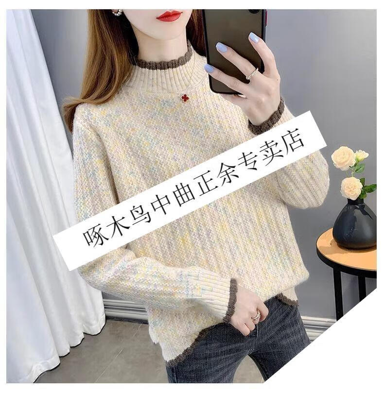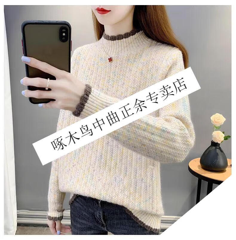 啄木鸟羊毛衫女加绒加厚半高领毛衣女秋冬季新款宽松洋气保暖针织打底衫 杏色【全身加绒】 M 建议95-110斤