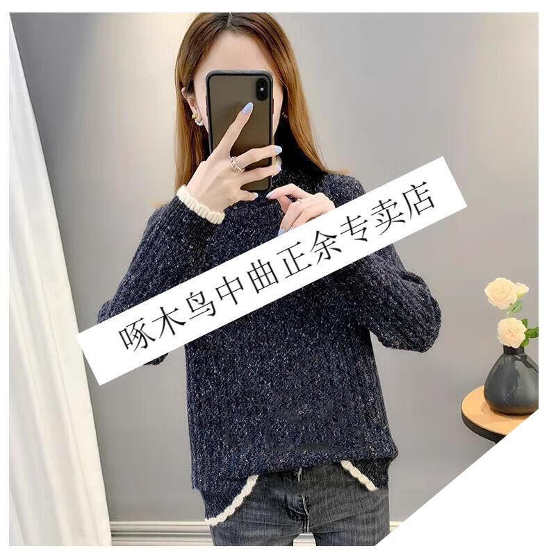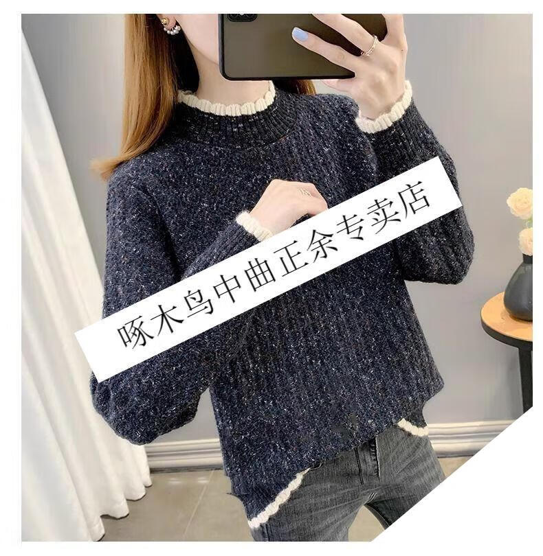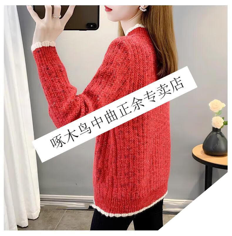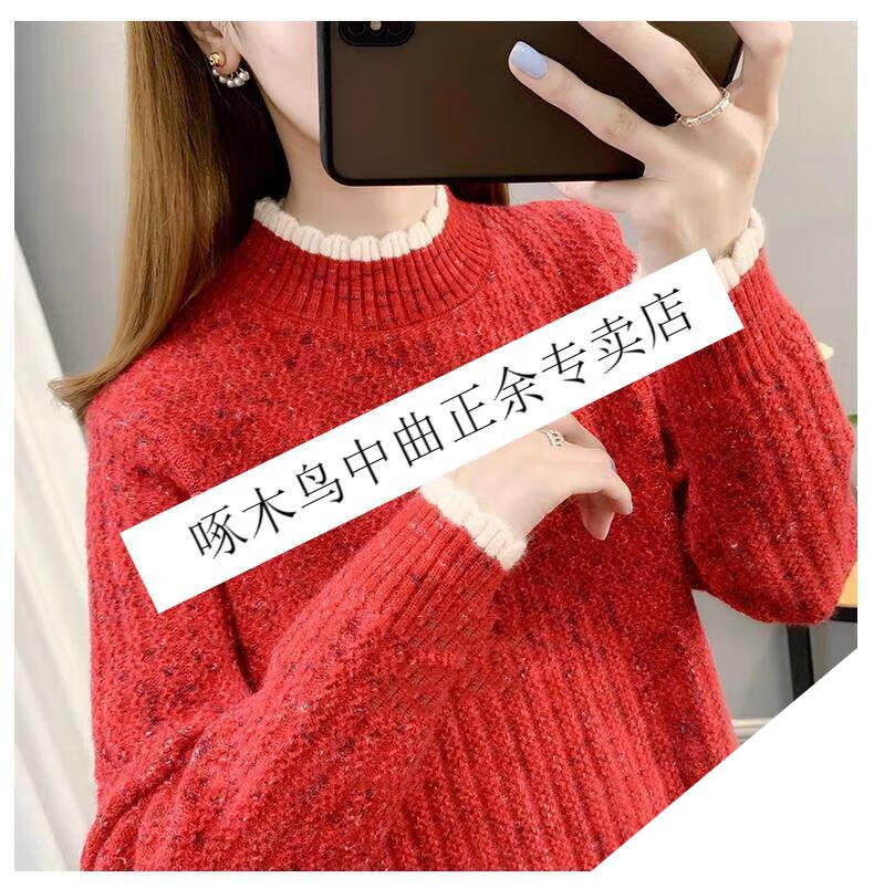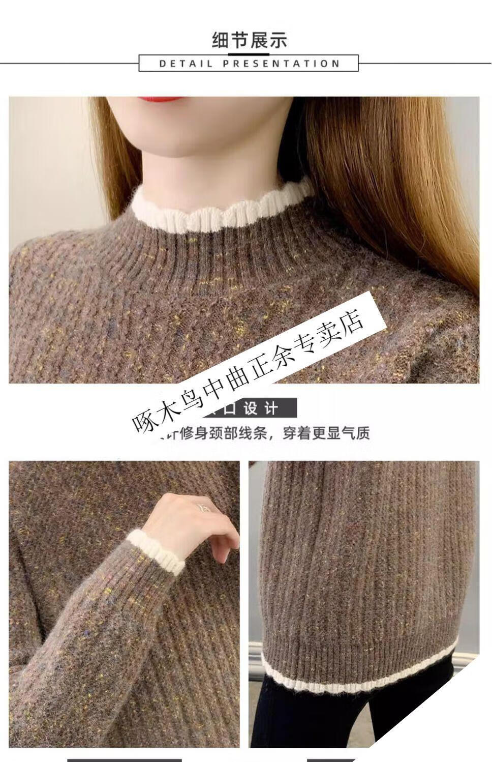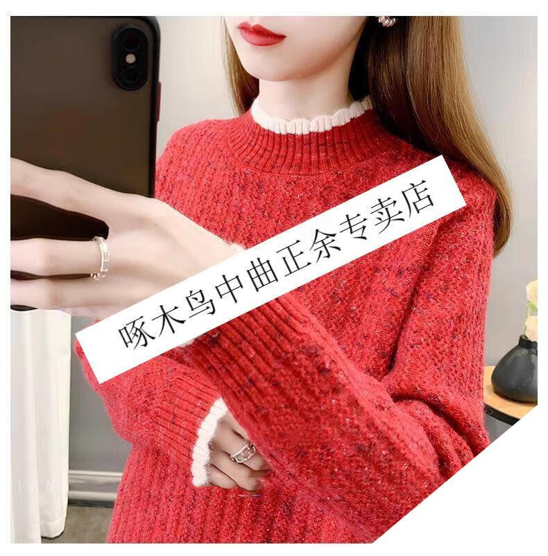 啄木鸟羊毛衫女加绒加厚半高领毛衣女秋冬季新款宽松洋气保暖针织打底衫 杏色【全身加绒】 M 建议95-110斤