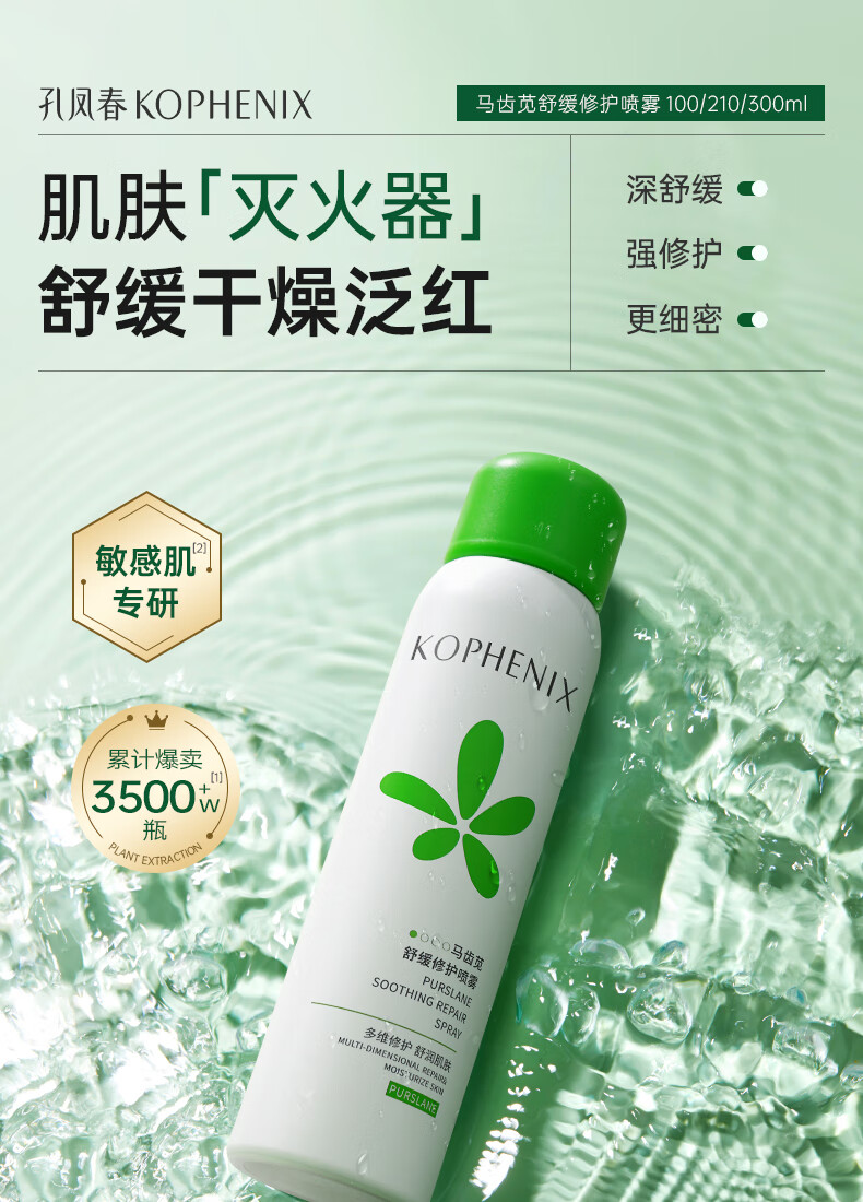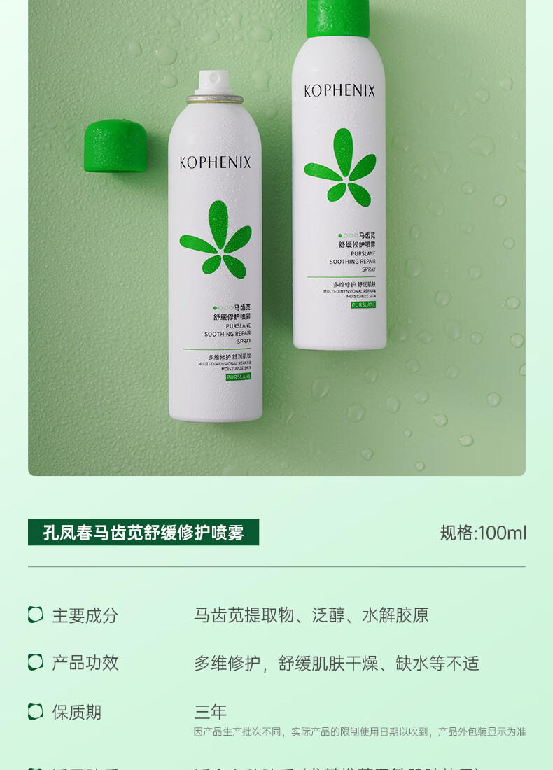 孔凤春爽肤水100ml马齿苋舒缓修护喷雾补水保湿护肤便携送女友新年礼物
