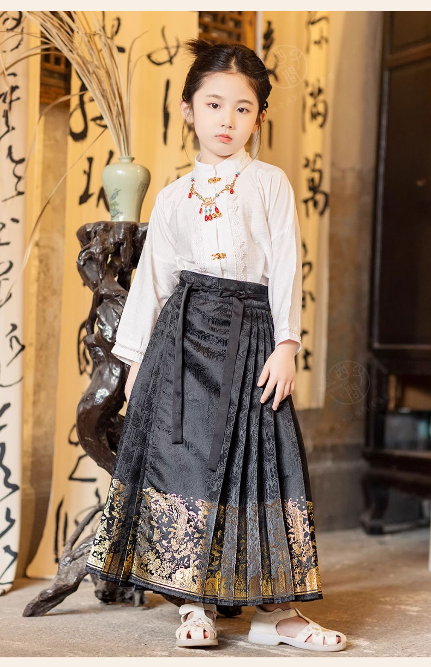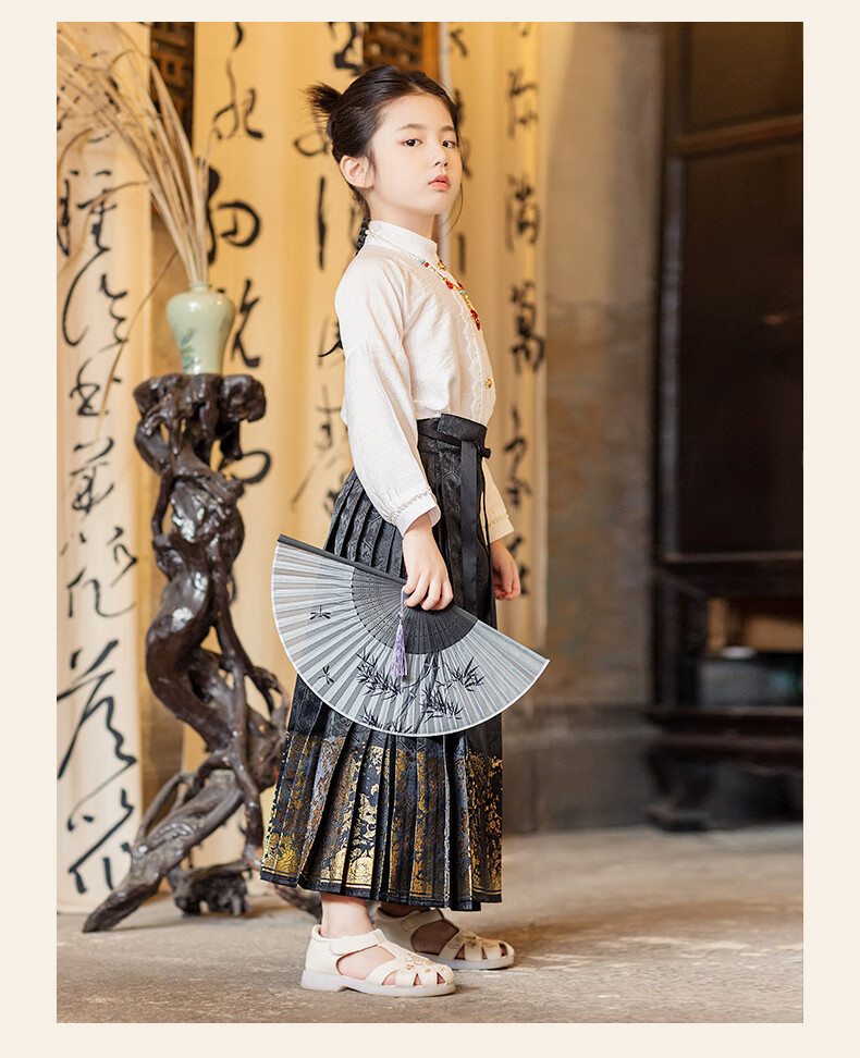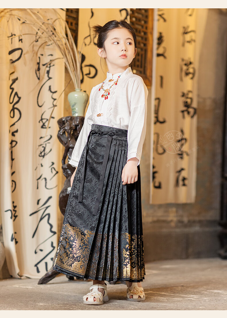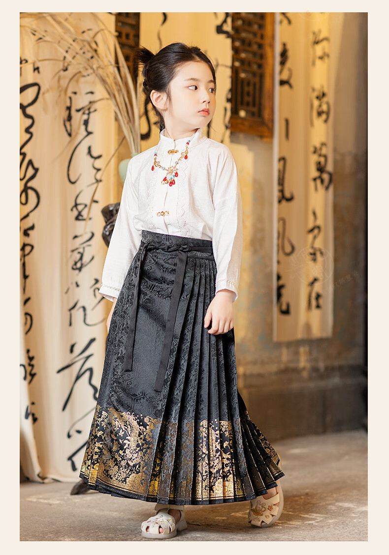 西子问【西子问】马面裙女童夏国风2025新款国风新中式衬衫礼服套装安栀 安栀-黑金 100