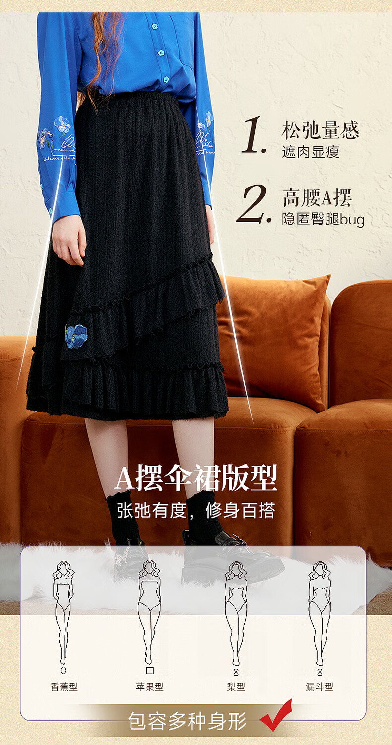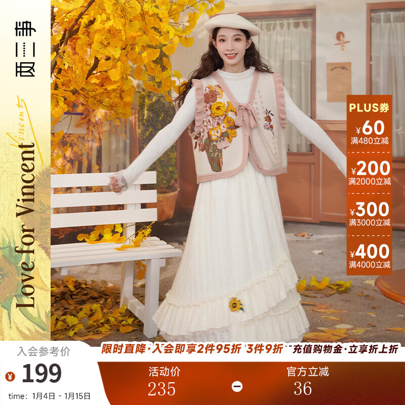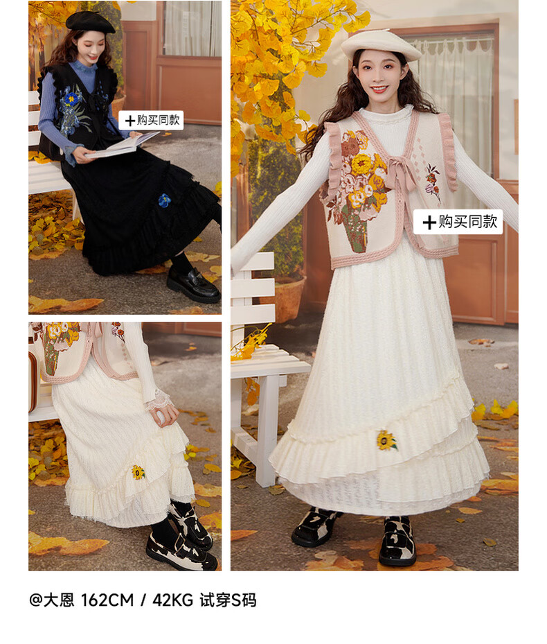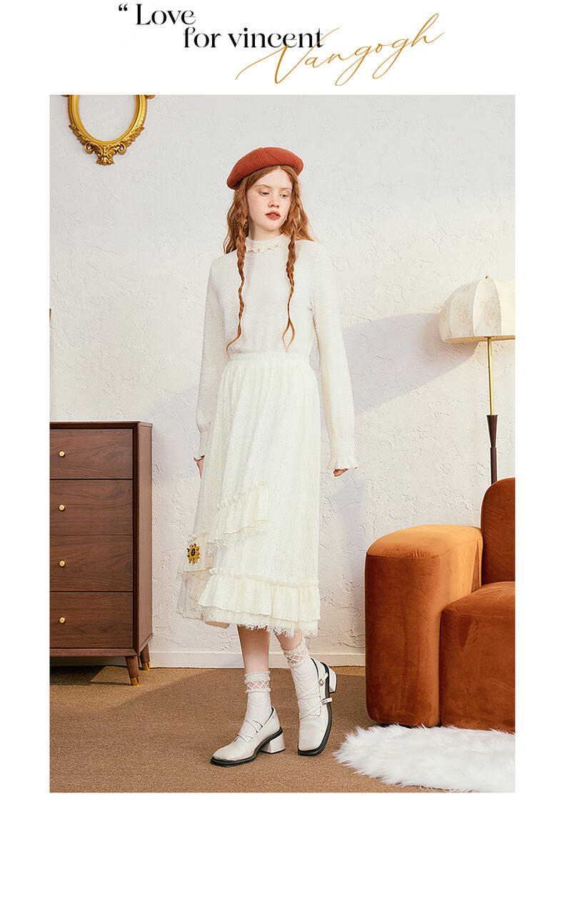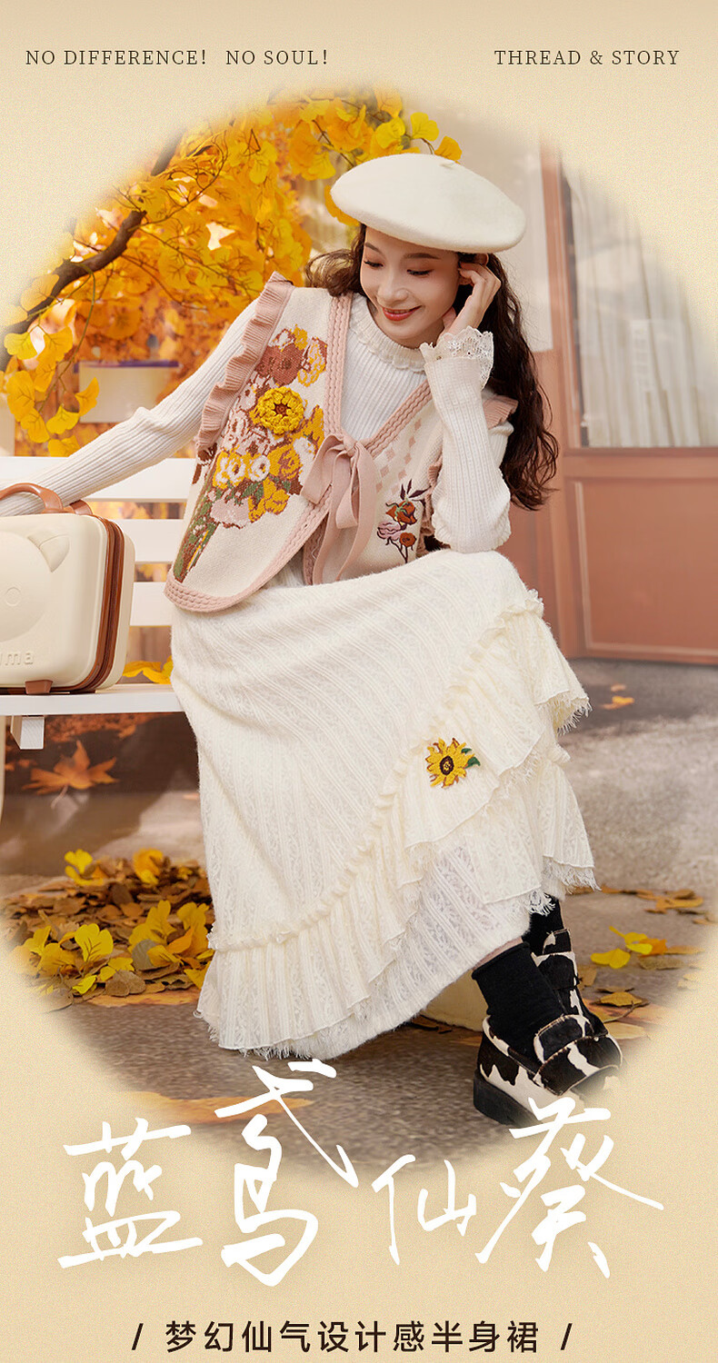 两三事梵高白色半身裙新款绝美秋装女款裙子蕾丝蛋糕半裙蓝鸢仙葵 杏色 M