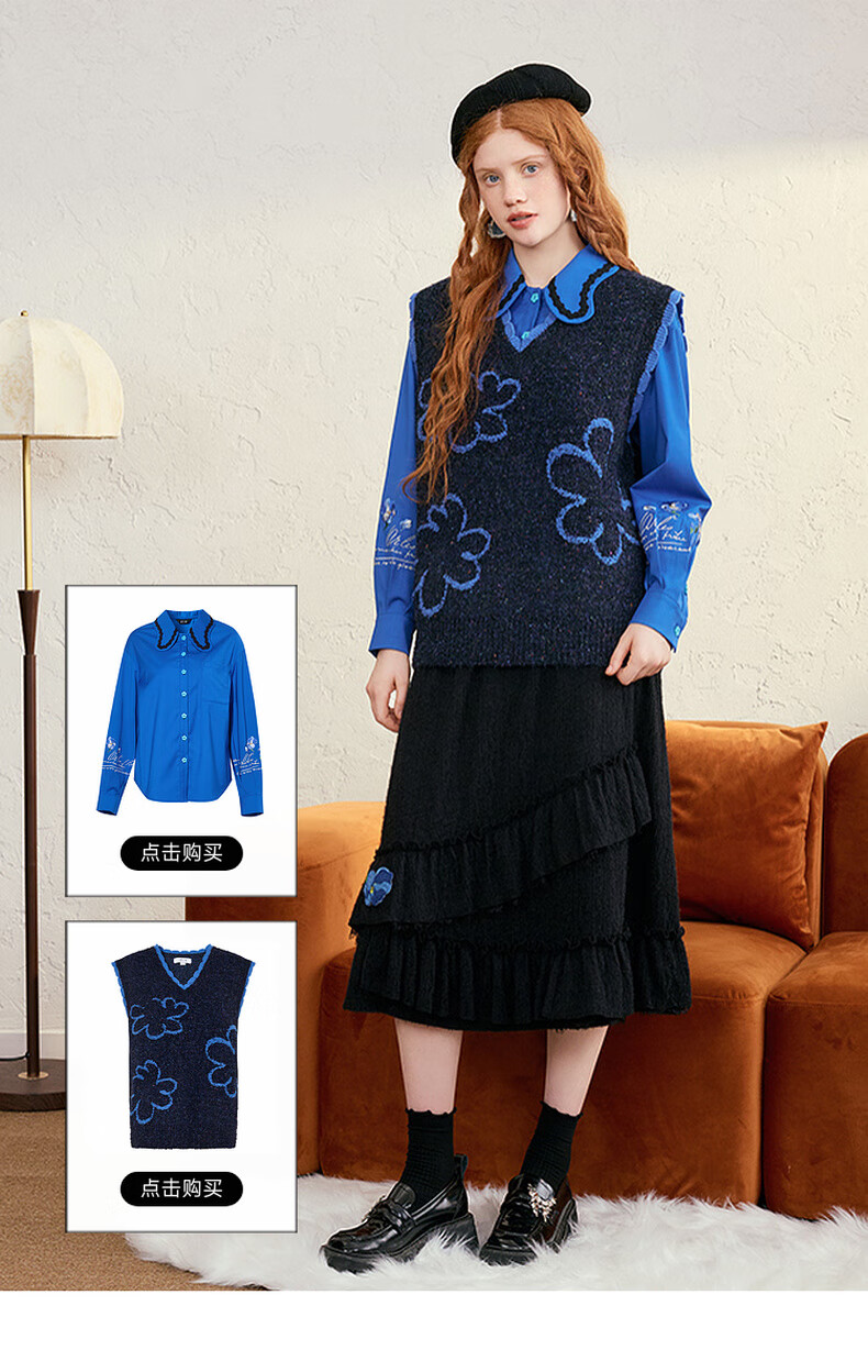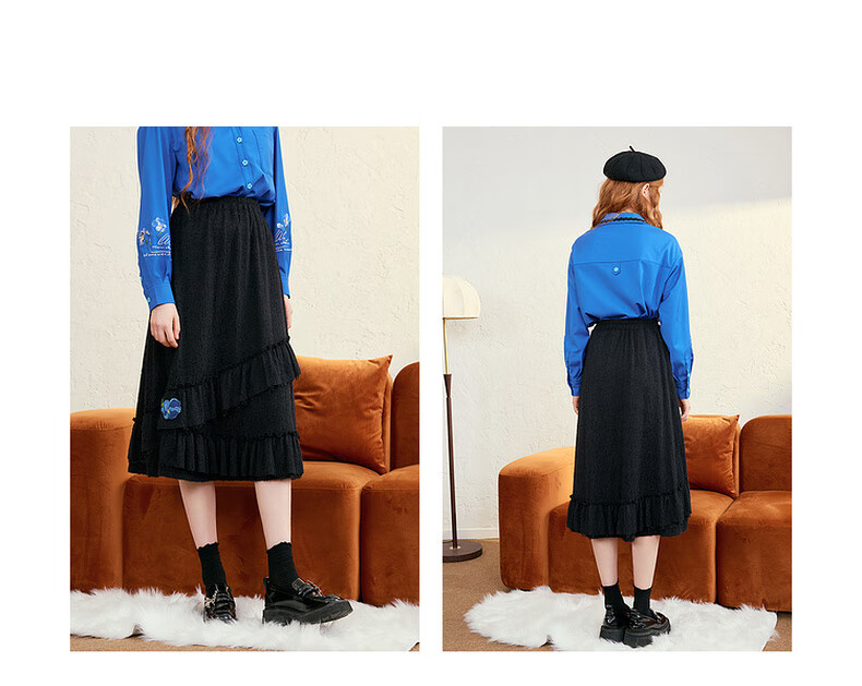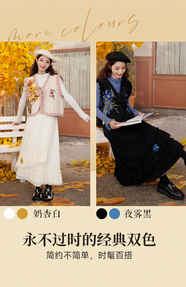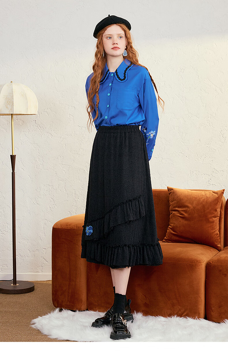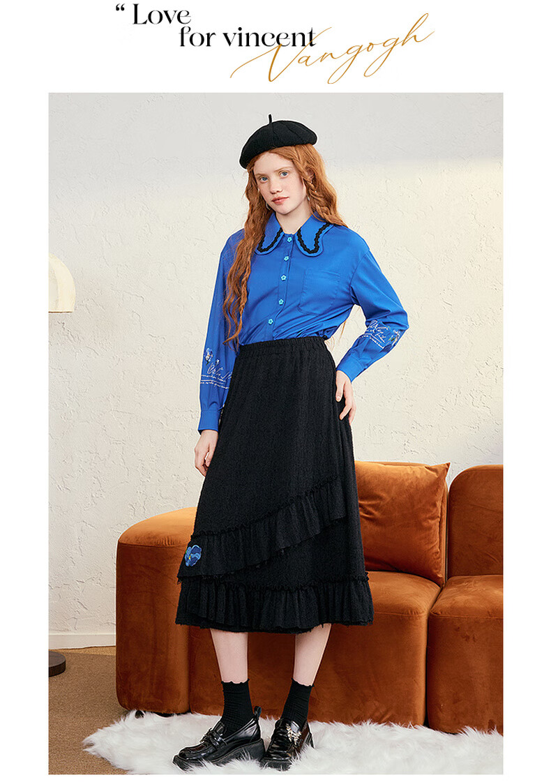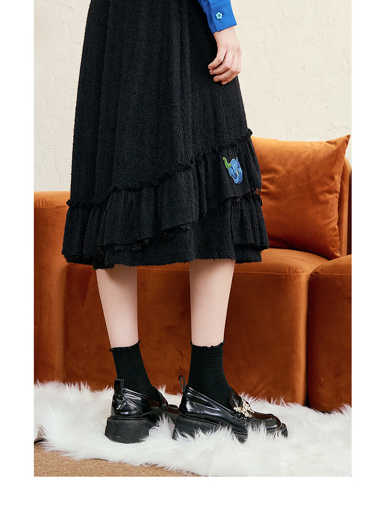 两三事梵高白色半身裙新款绝美秋装女款裙子蕾丝蛋糕半裙蓝鸢仙葵 杏色 M