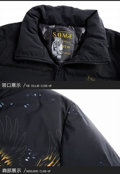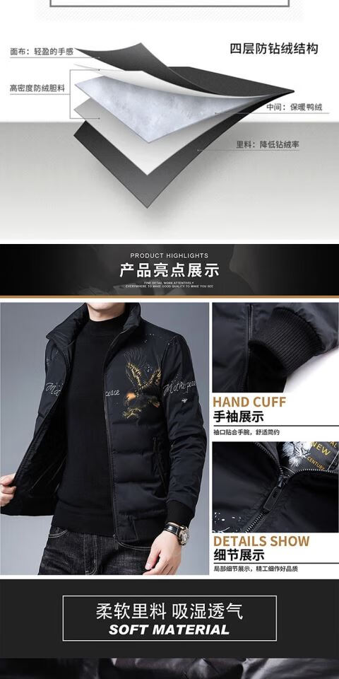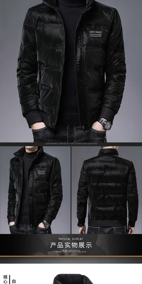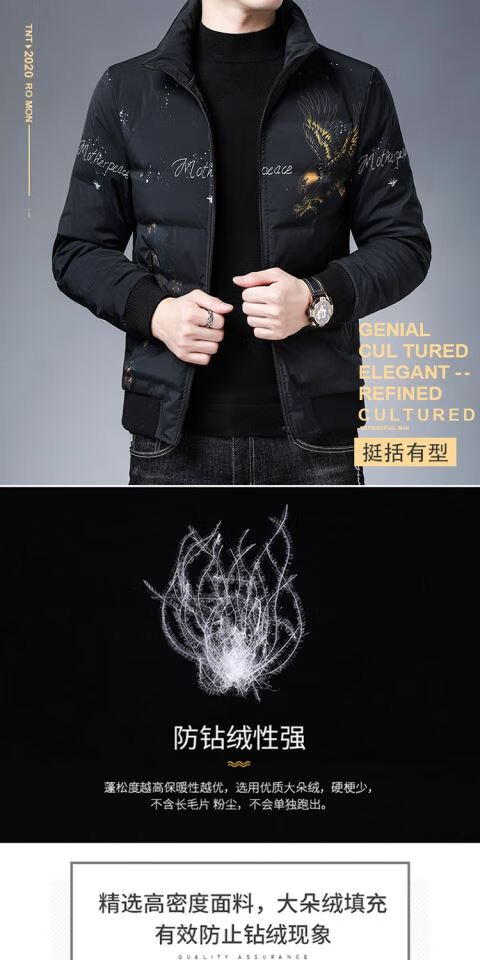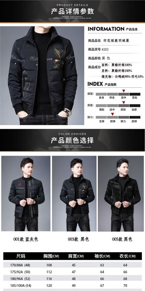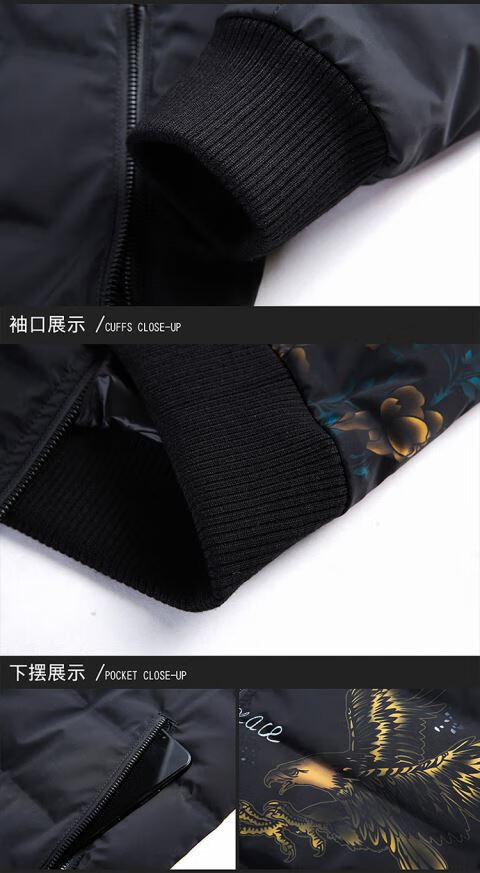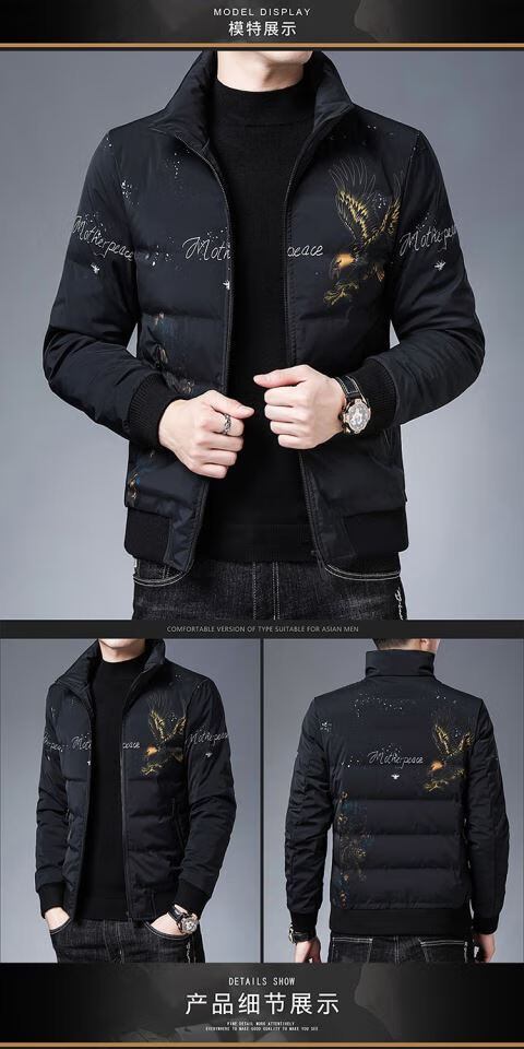 阿玛尼阿玛尼 男士羽绒服短款中青年印花外套时尚潮流男装上衣棒球领 黑色 003 XL 18052(体重145-160斤)