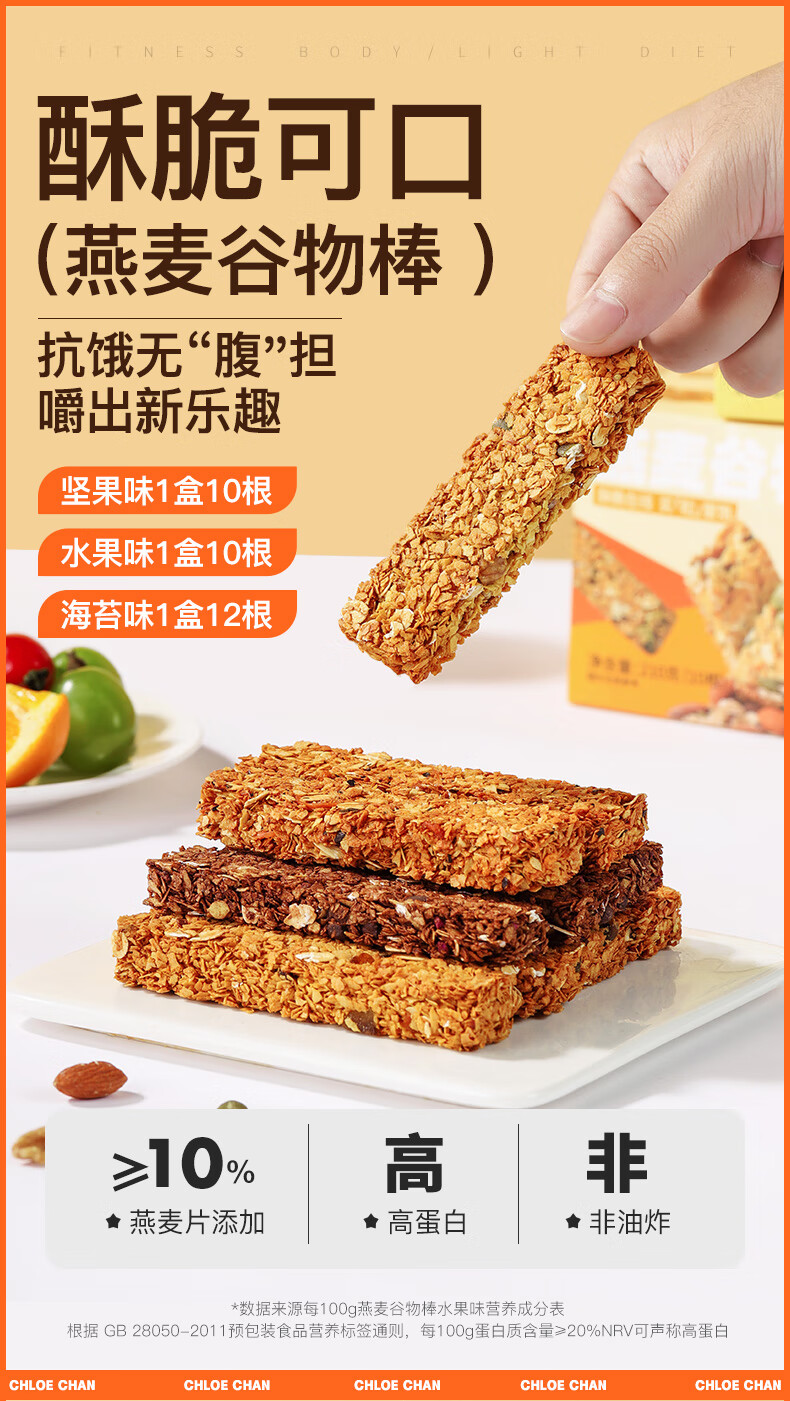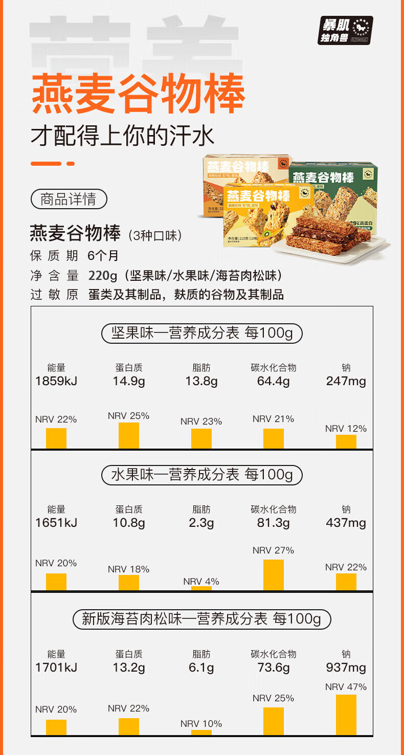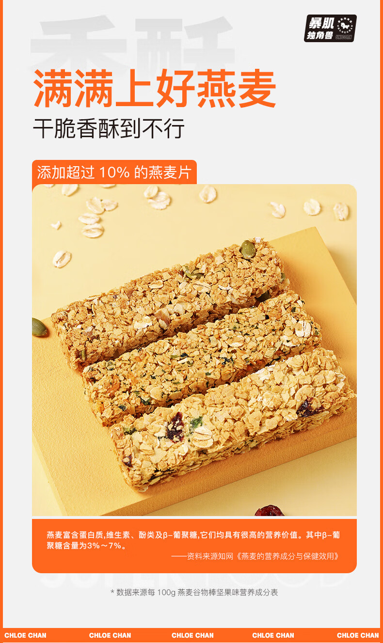 暴肌独角兽 谷物棒代餐能量棒水果坚果仁燕麦棒 共220g坚果味