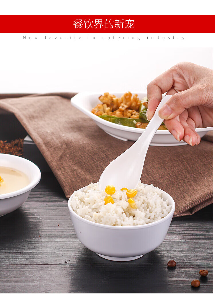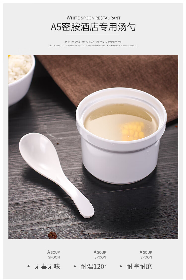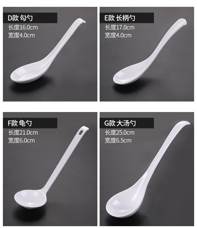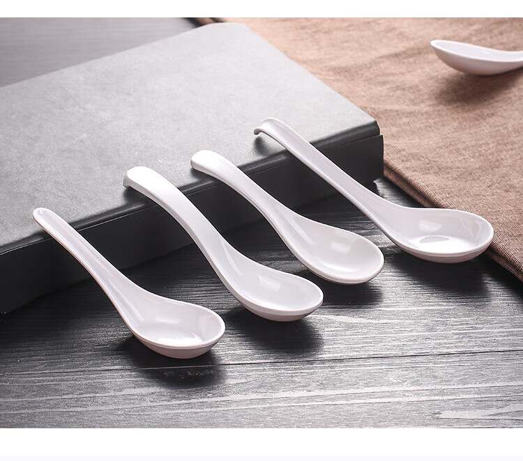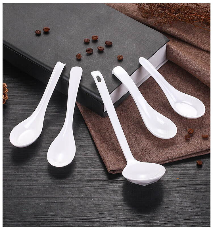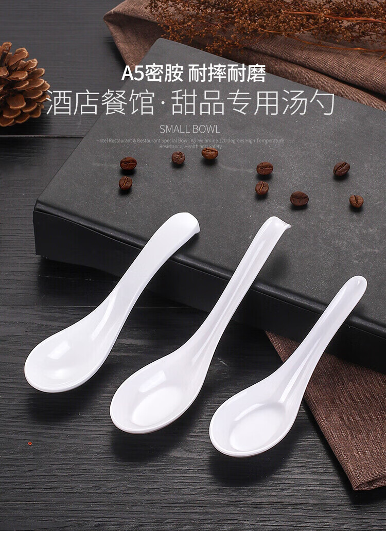 瓶樽天下A5白色密胺勺子塑料汤勺长柄商用家用麻辣烫餐厅仿瓷小调羹汤匙 A款 直柄勺 【10个装】
