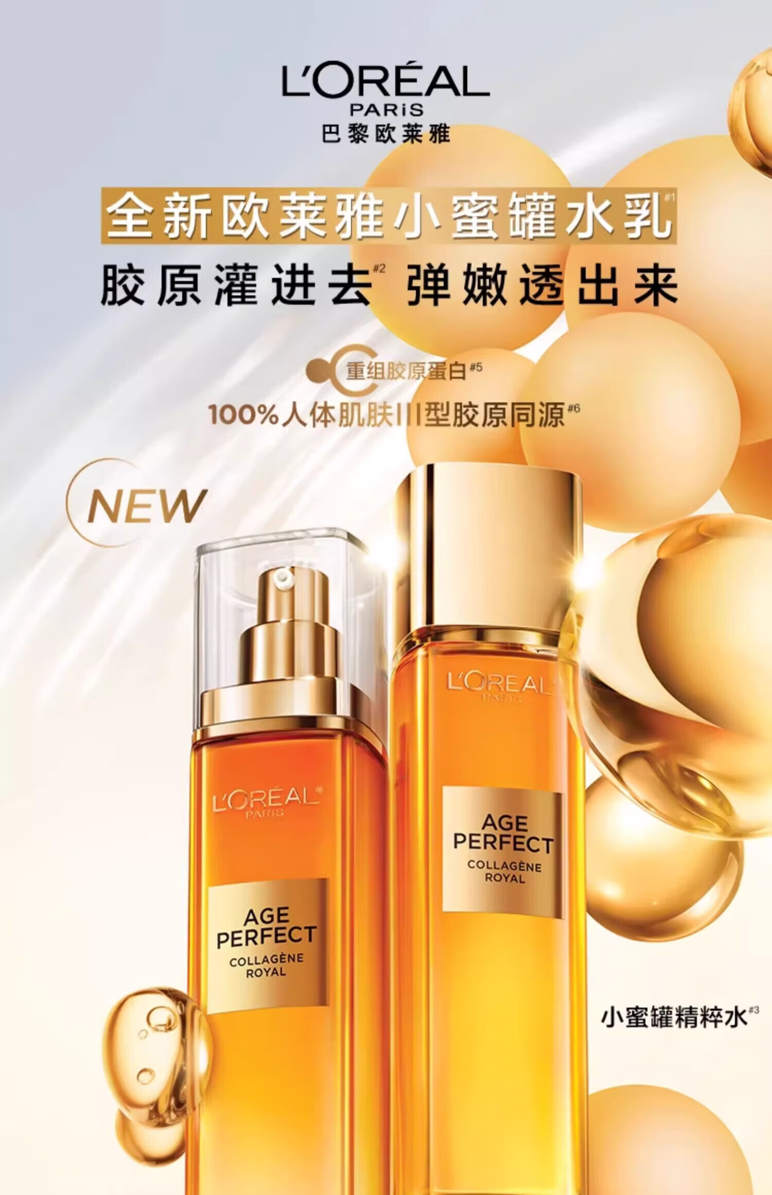 欧莱雅(LOREAL)护肤品套装小蜜罐花蜜胶原水乳套装紧致抗皱护肤礼盒新年礼物 随机品牌面膜x1