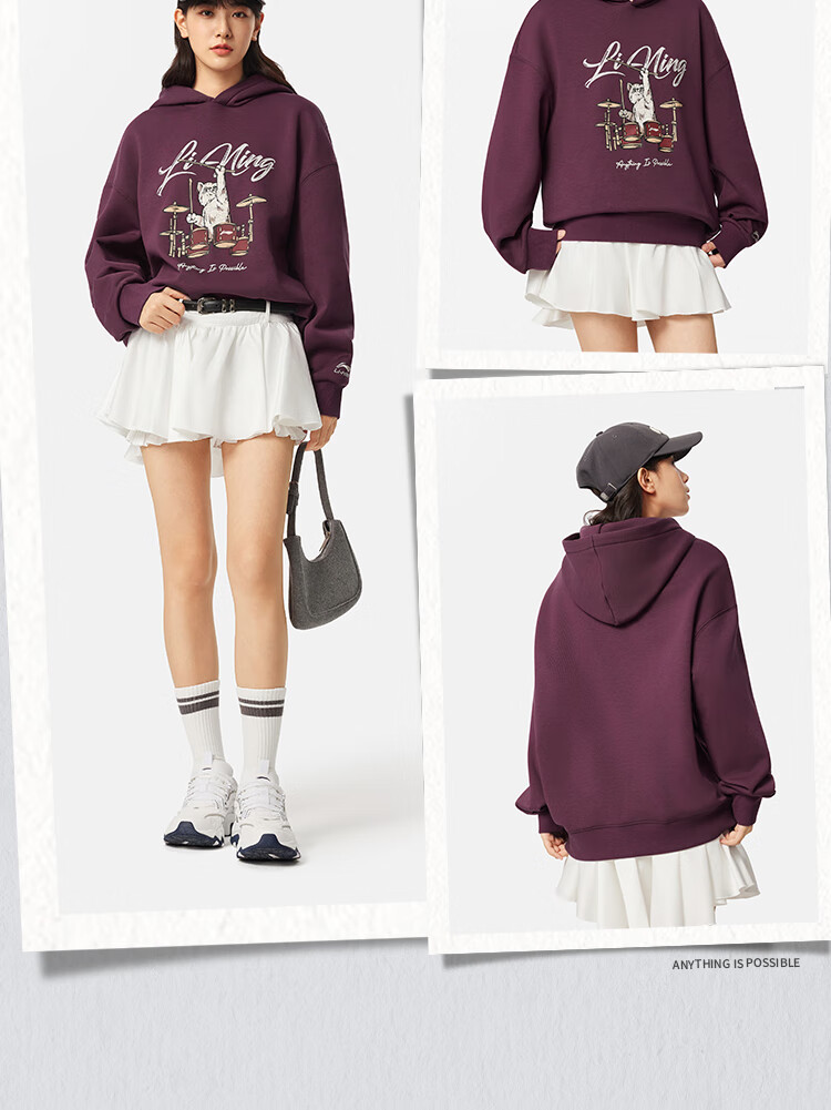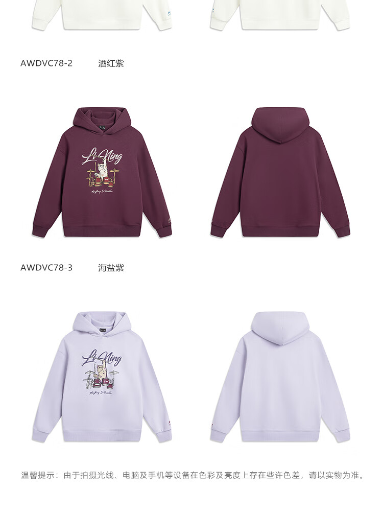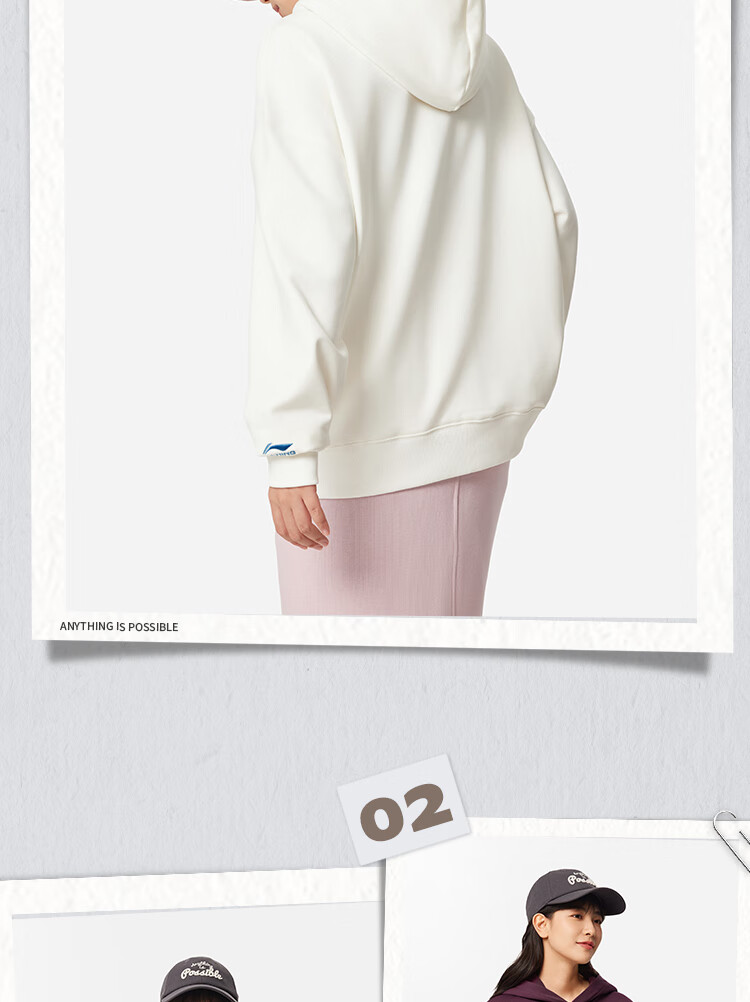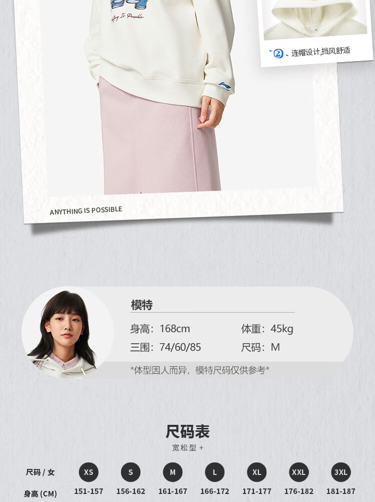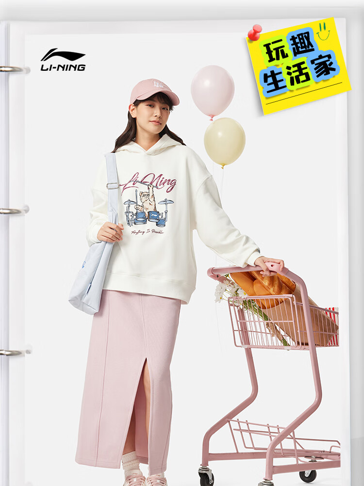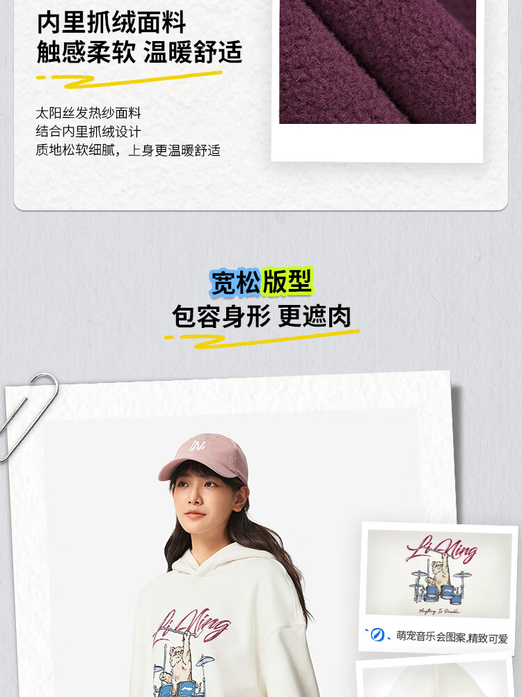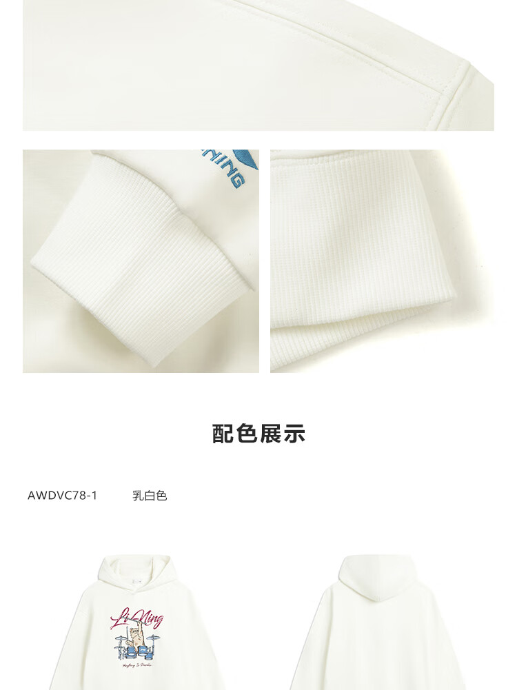 李宁加绒保暖抗菌套头连帽卫衣女子秋冬季时尚刺绣运动上衣 乳白色-1 M