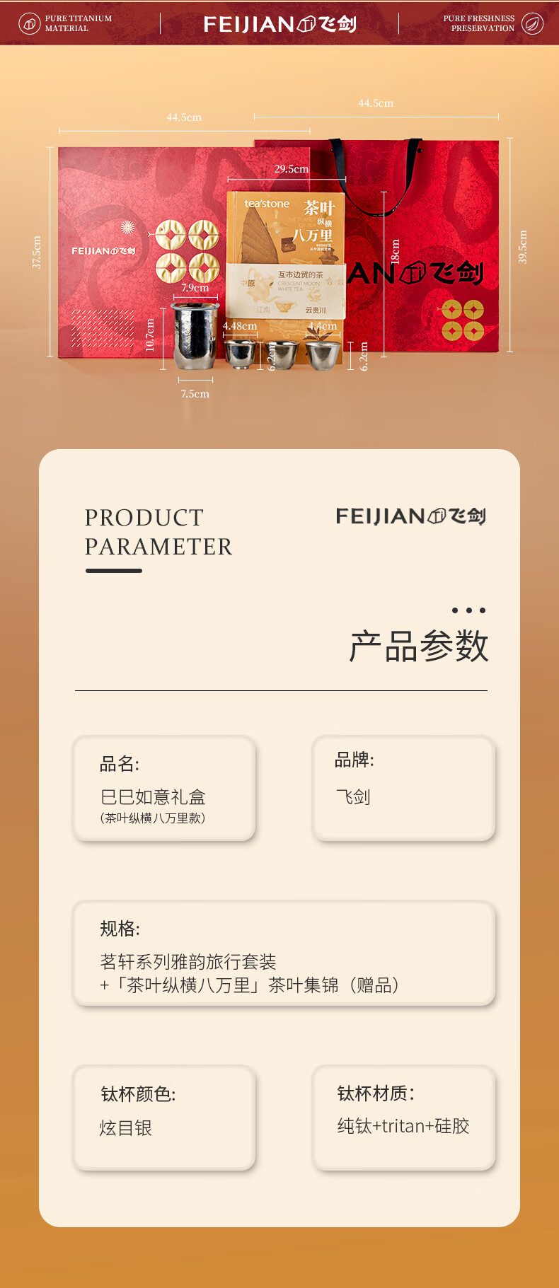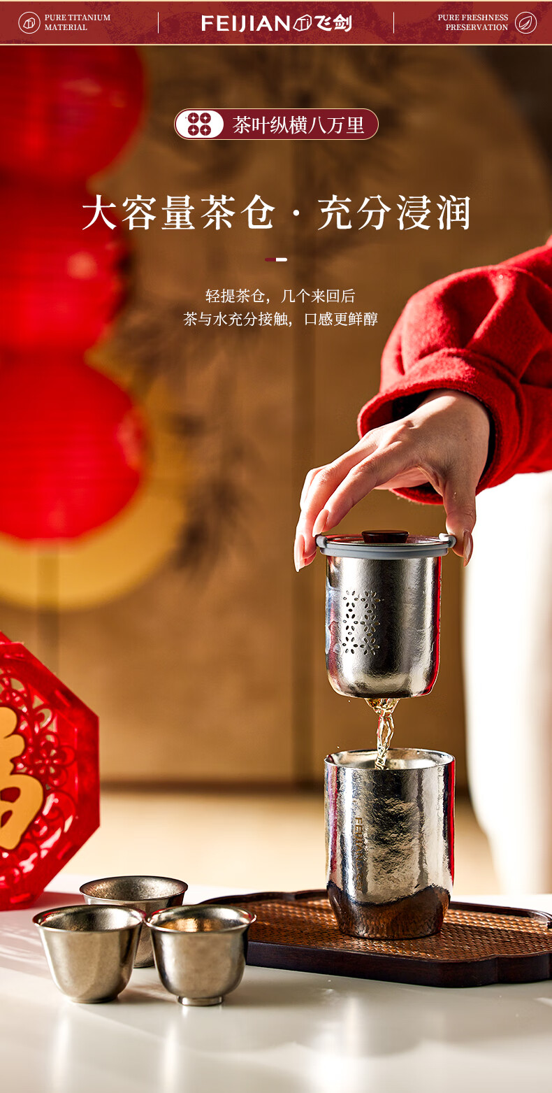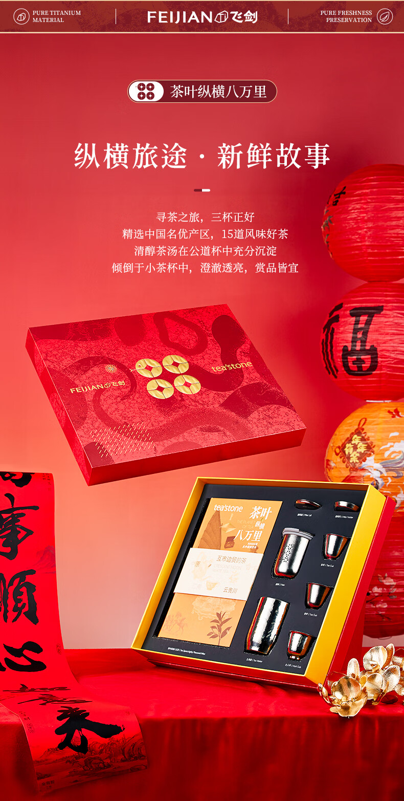 飞剑(feijian)蛇年限定纯钛茶具礼盒套装户外送长辈送领导送父母送老师毕业礼物 巳巳如意礼盒