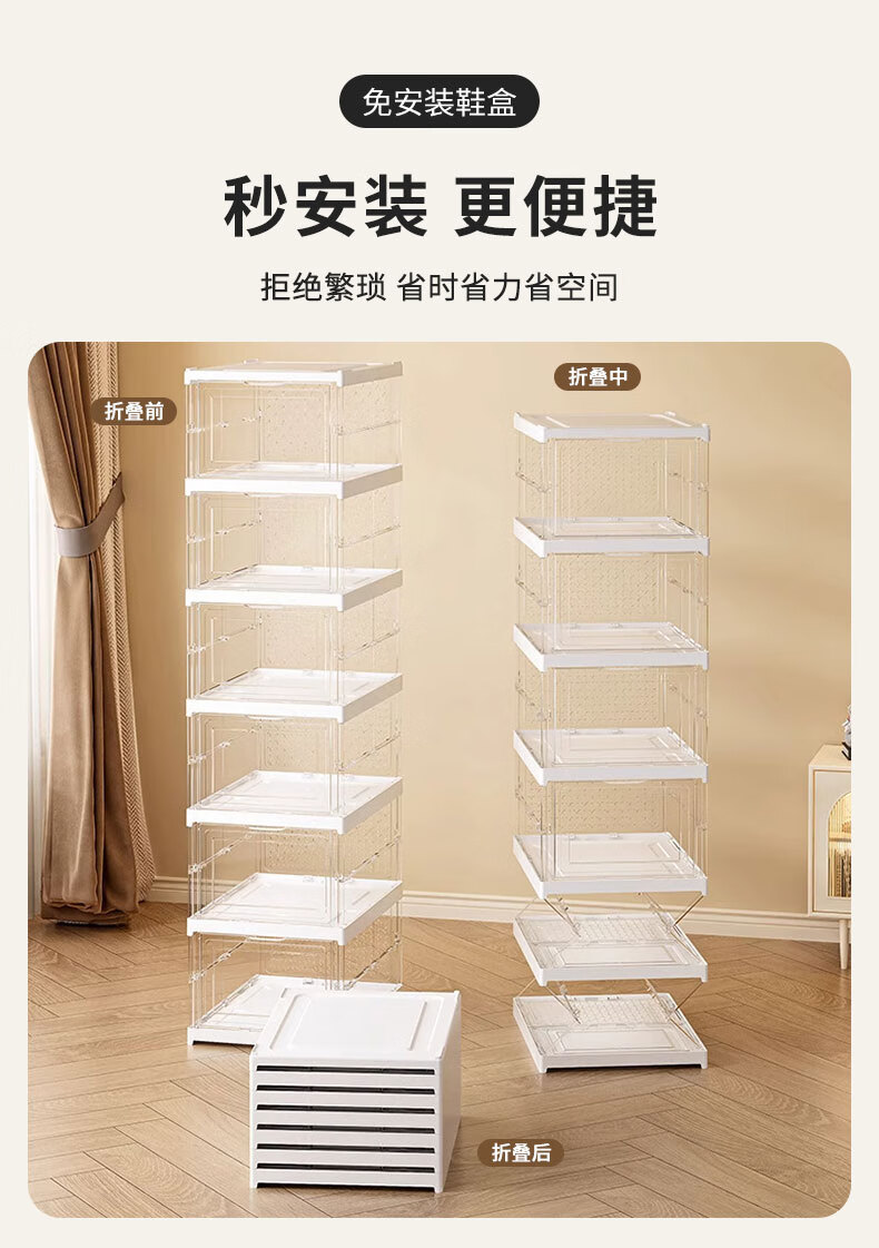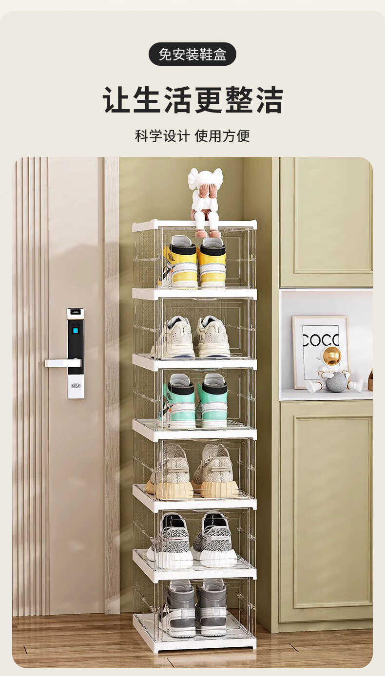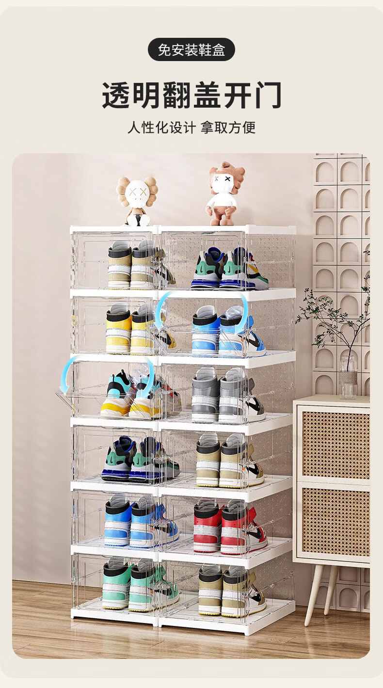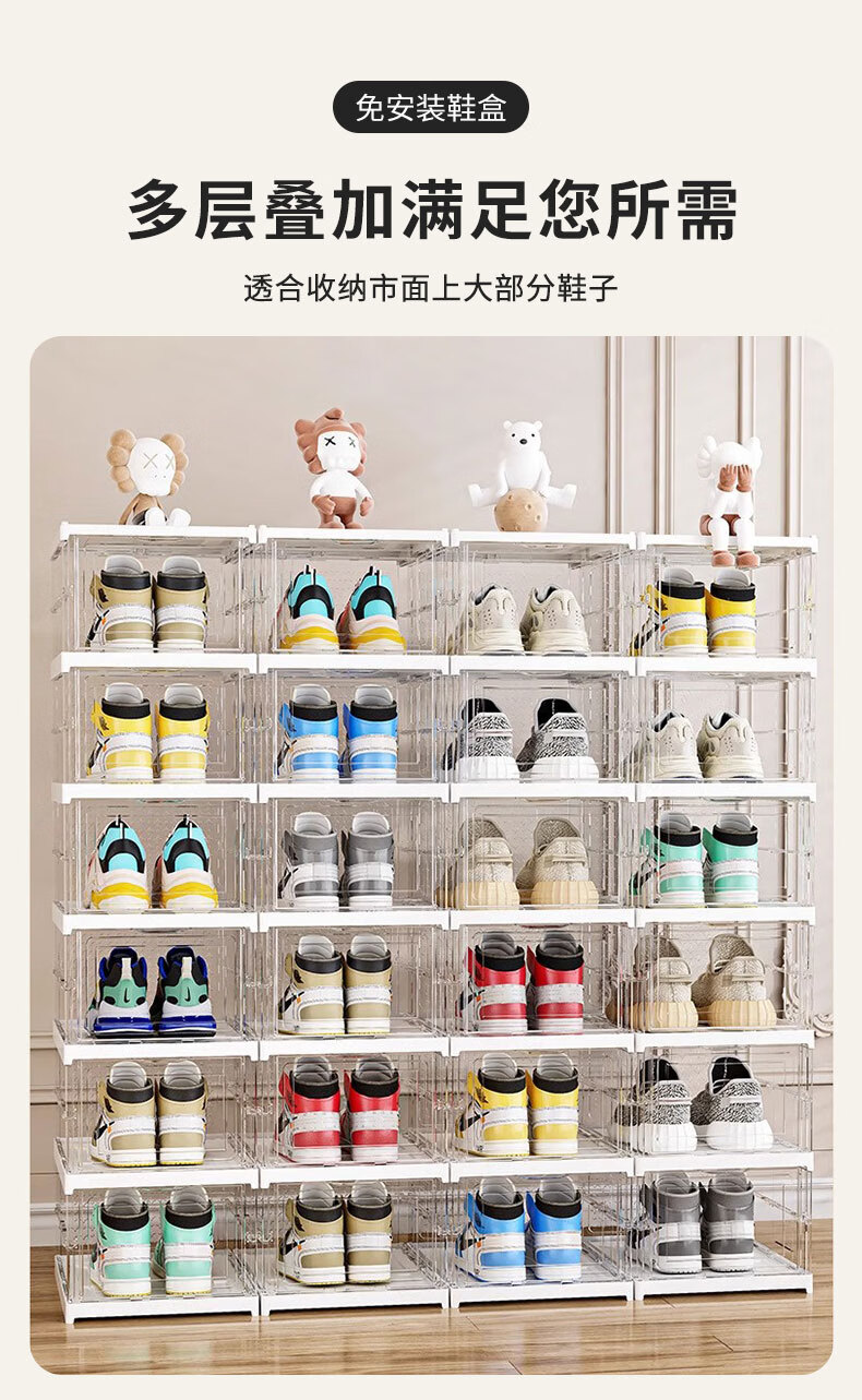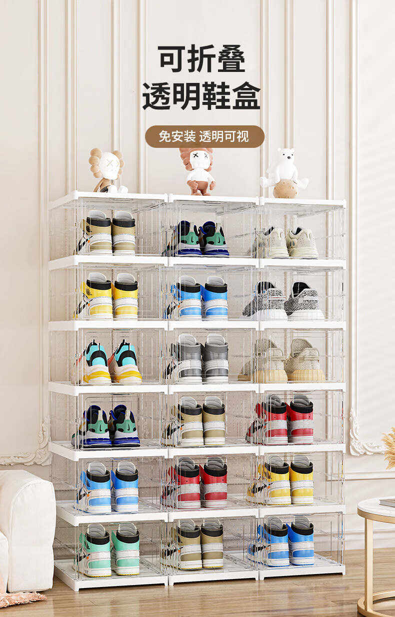 四万公里一体鞋盒家用多层可折叠磁吸鞋柜防尘免安装透明鞋子收纳柜收纳盒