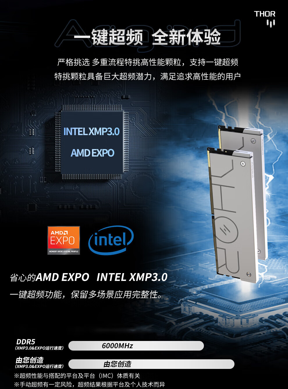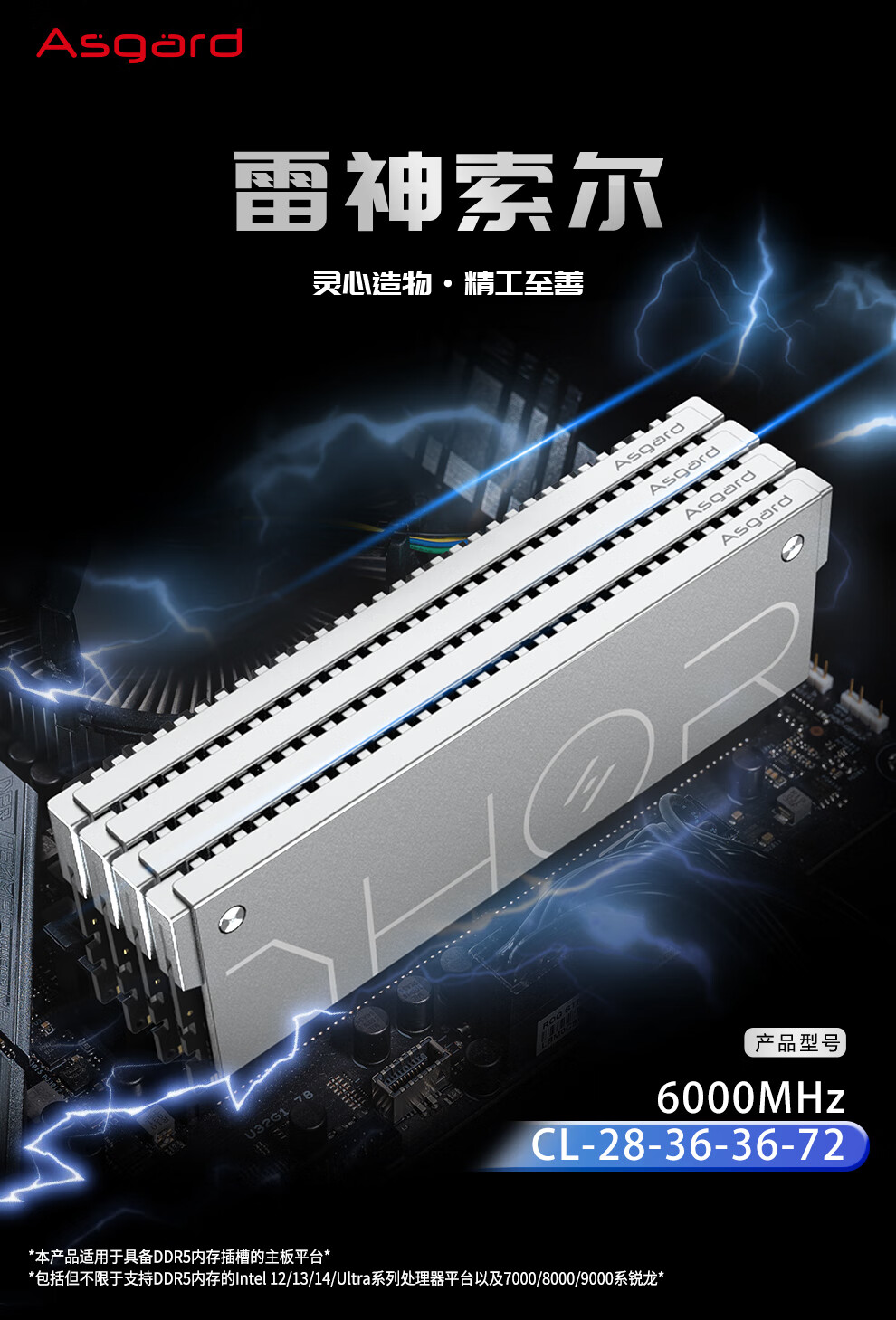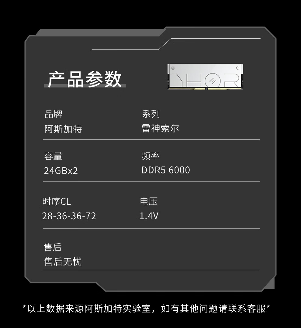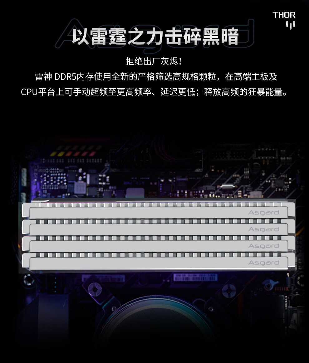阿斯加特(Asgard)48GB(24GBx2) DDR5 6000 台式机内存条 雷神索尔 马甲条 海力士M-die CL28 星光银