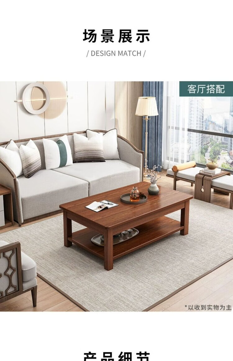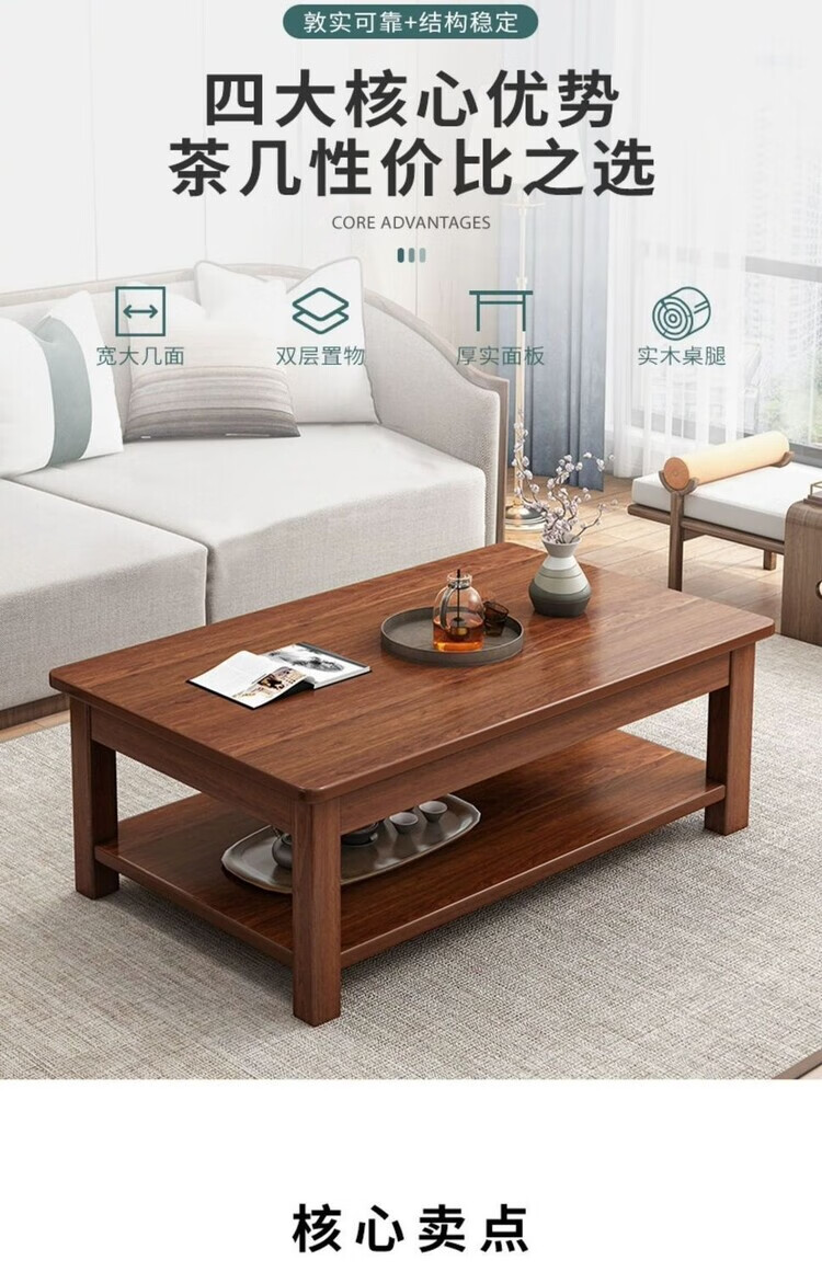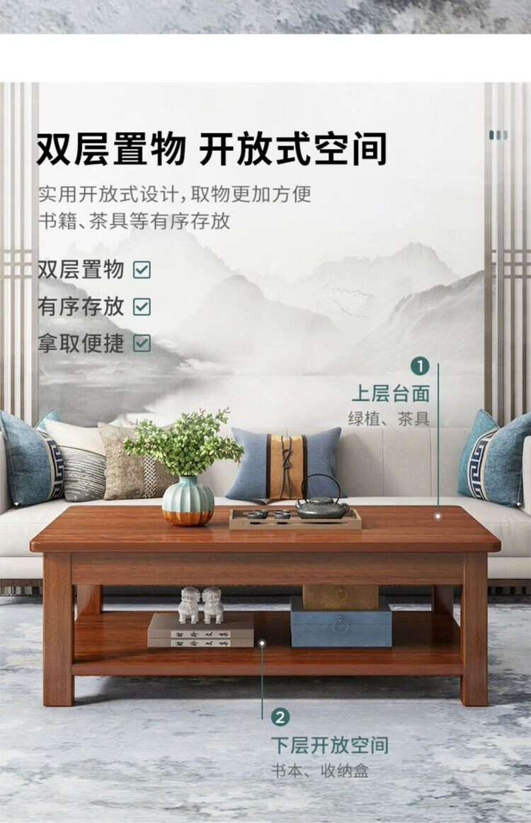 米囹清仓实木茶几办公室中式长方形茶桌家用客厅小户型双层储物茶台桌 【图二款】长11宽11高11 小 【现货速发+实木桌腿】