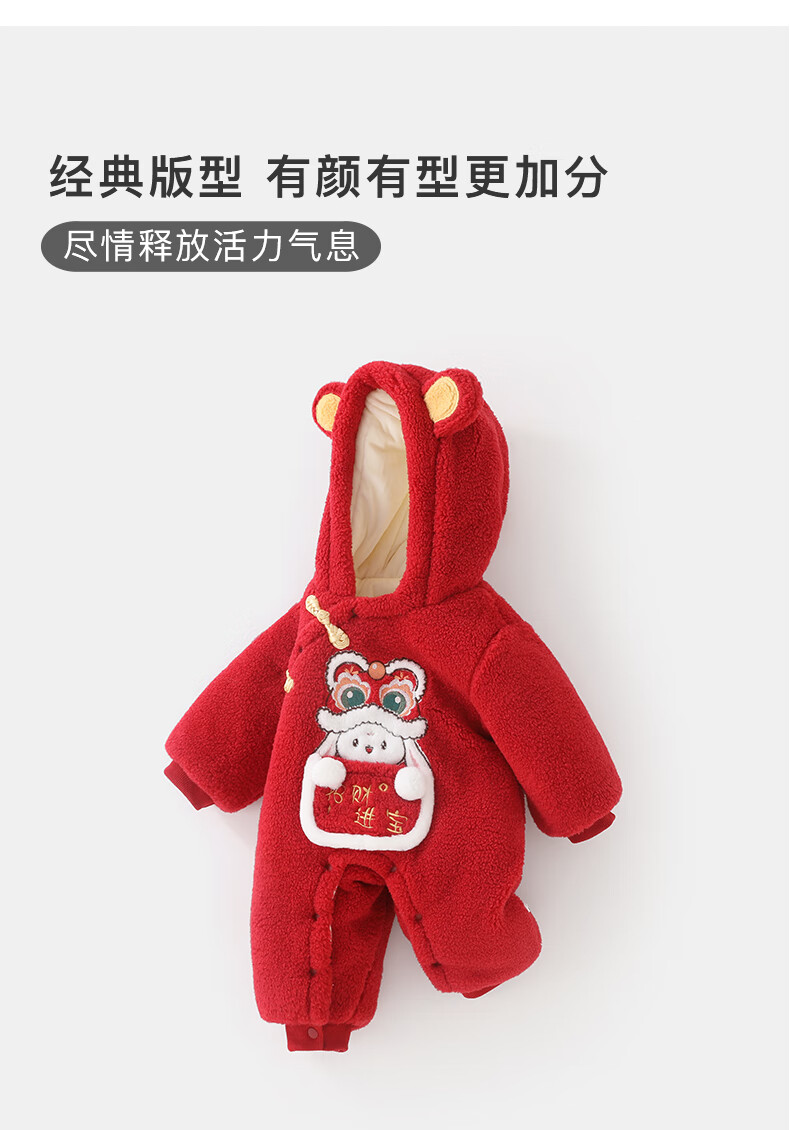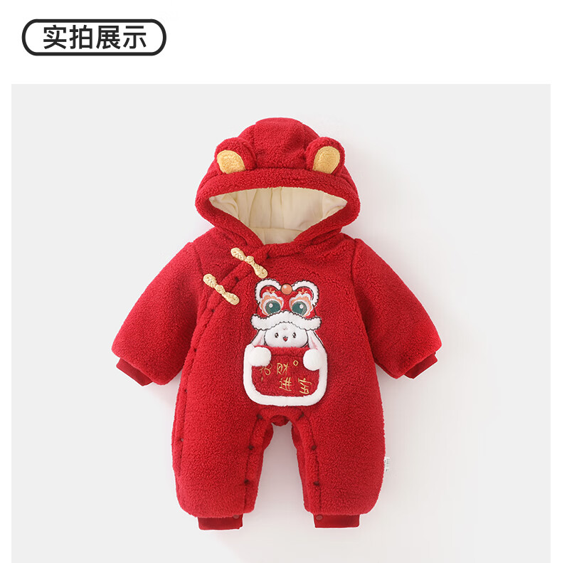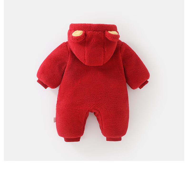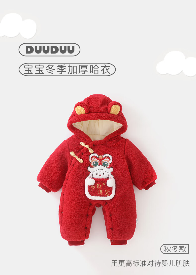 DUUDUU婴儿加厚连体衣秋冬装过年保暖棉衣爬服宝宝红色拜年服哈衣