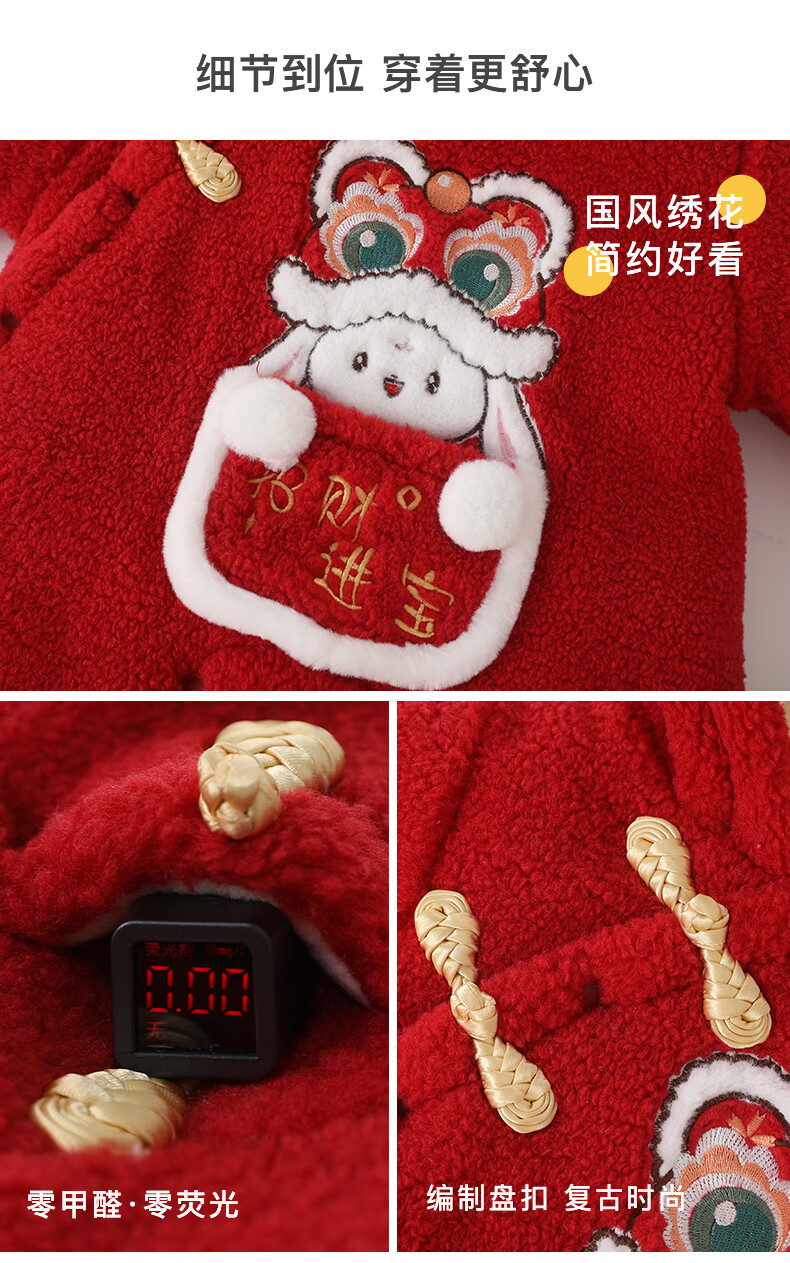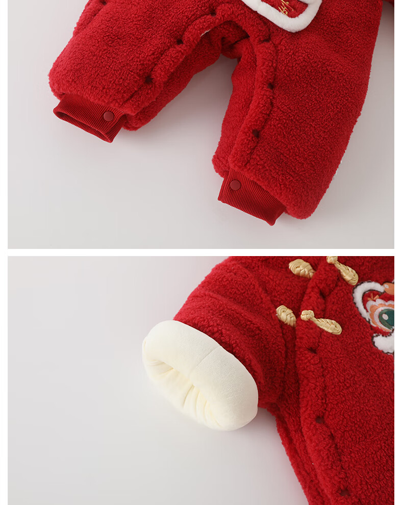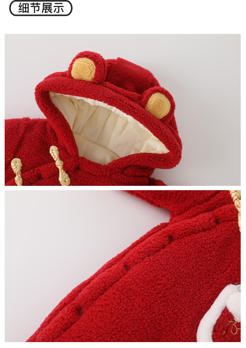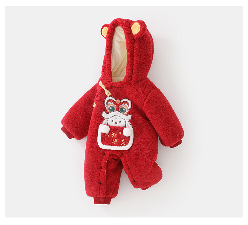 DUUDUU婴儿加厚连体衣秋冬装过年保暖棉衣爬服宝宝红色拜年服哈衣