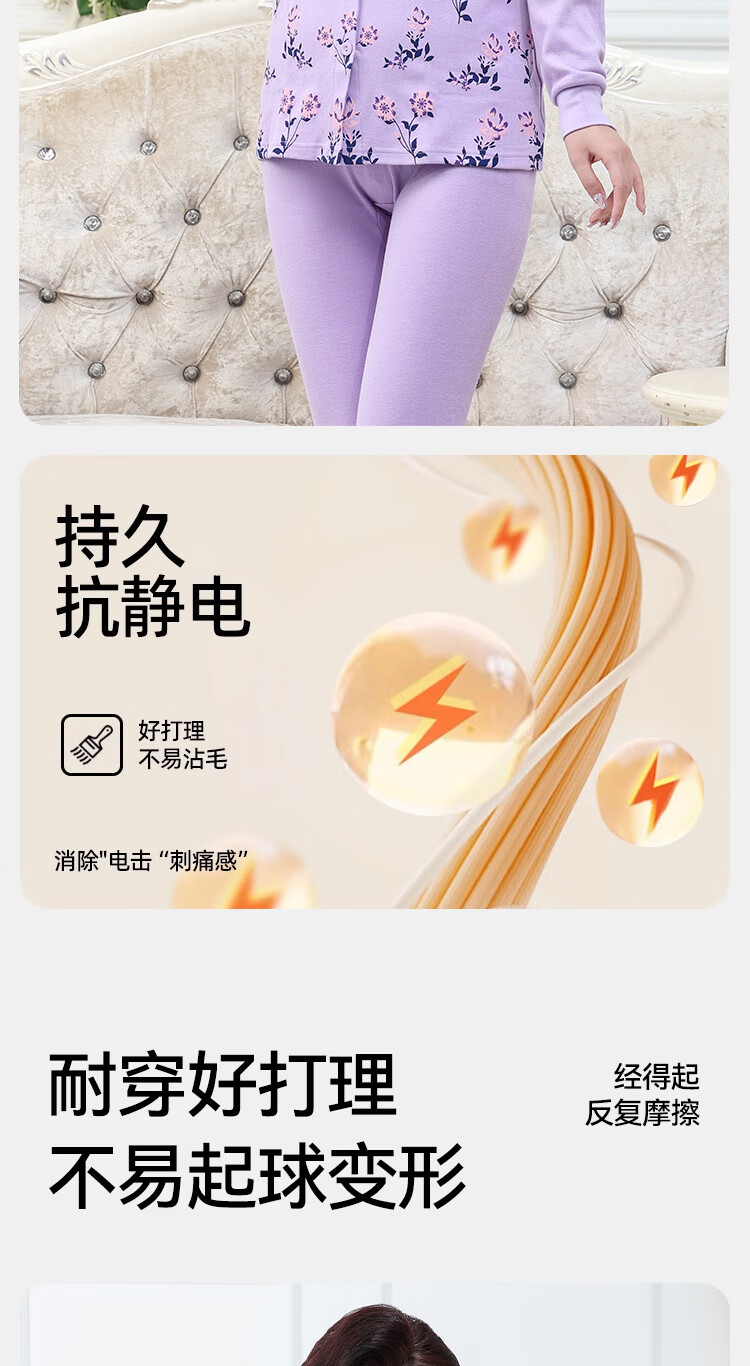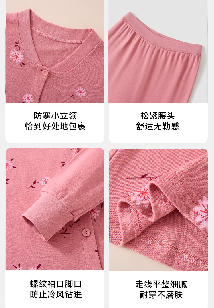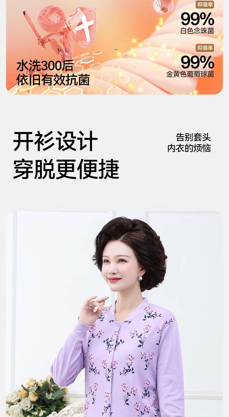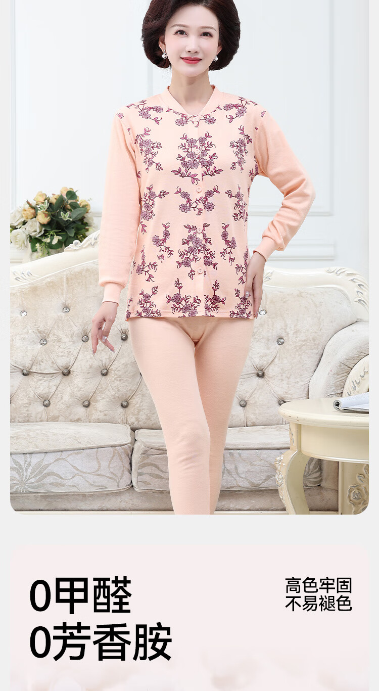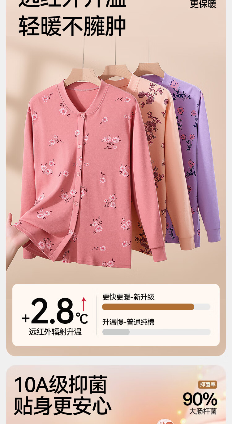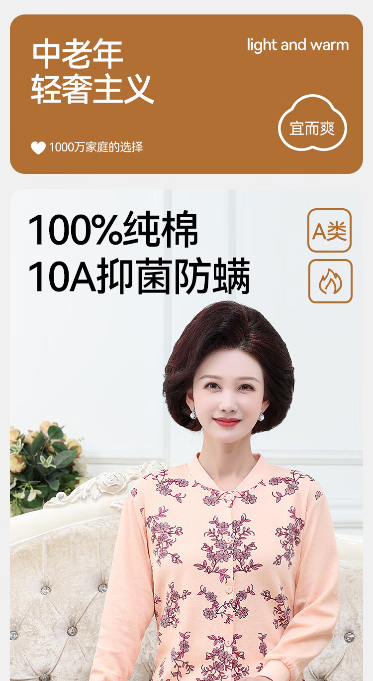 宜而爽中老年人保暖内衣秋冬季女士纯棉开衫套装棉衣长裤送妈妈