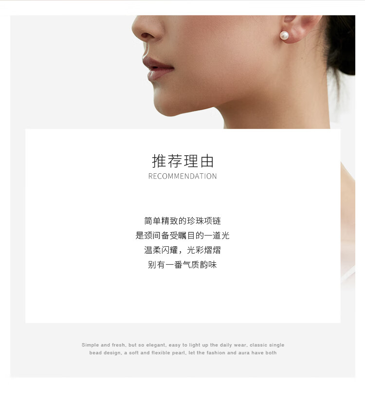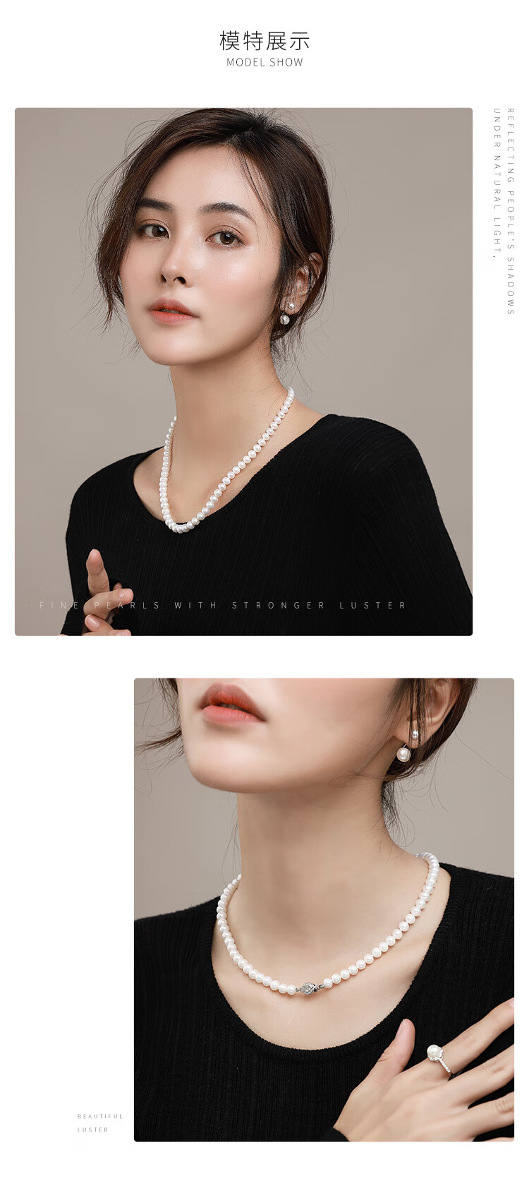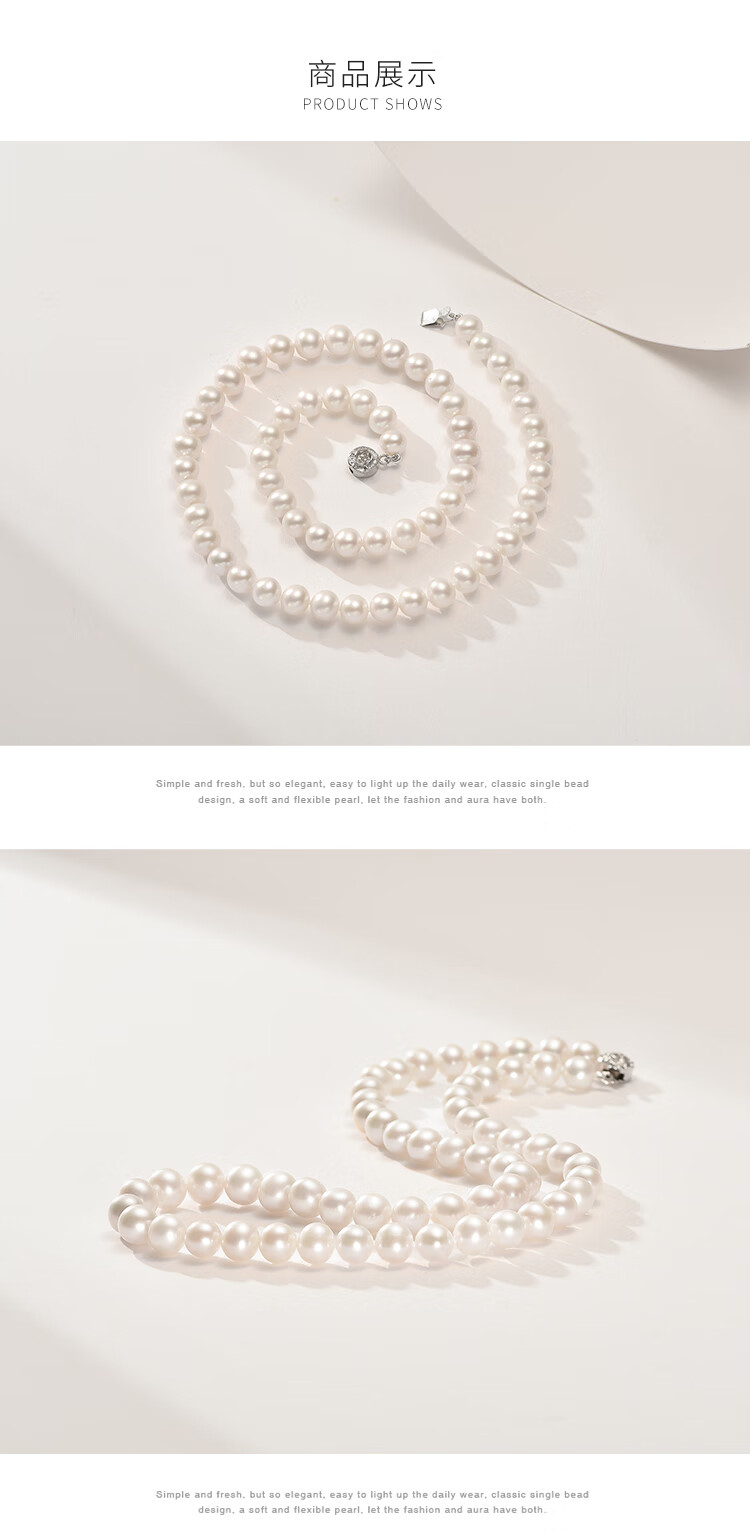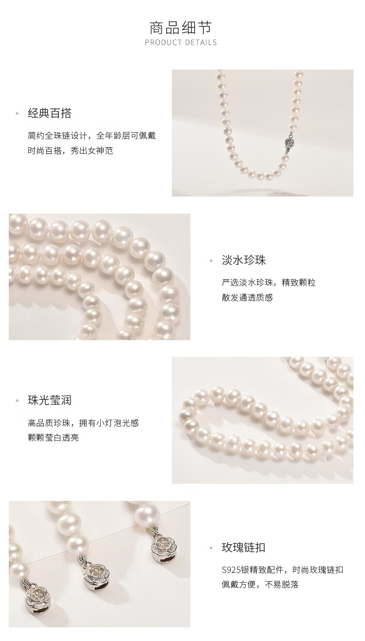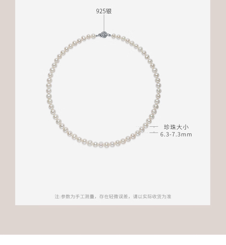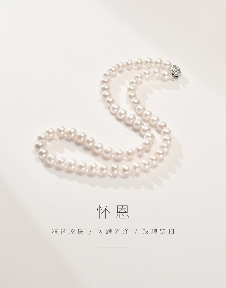 京润珍珠项链女925银怀恩淡水珍珠项链玫瑰花扣年轻款礼物送爱人