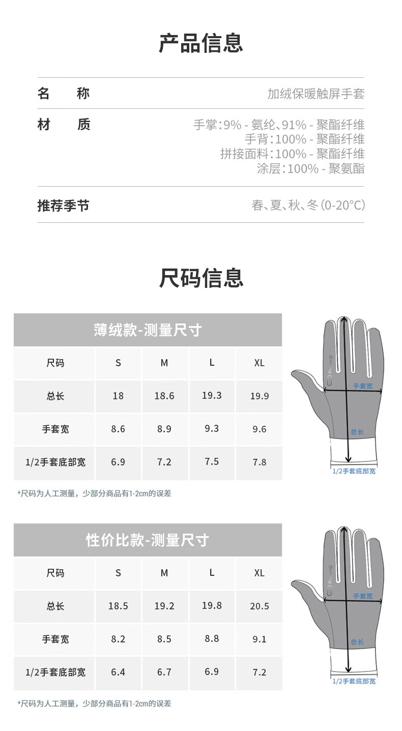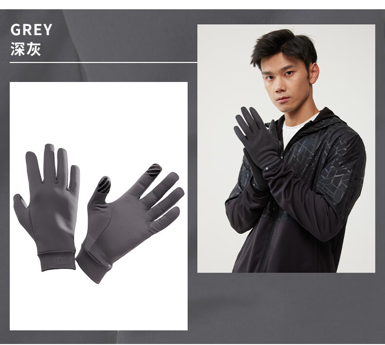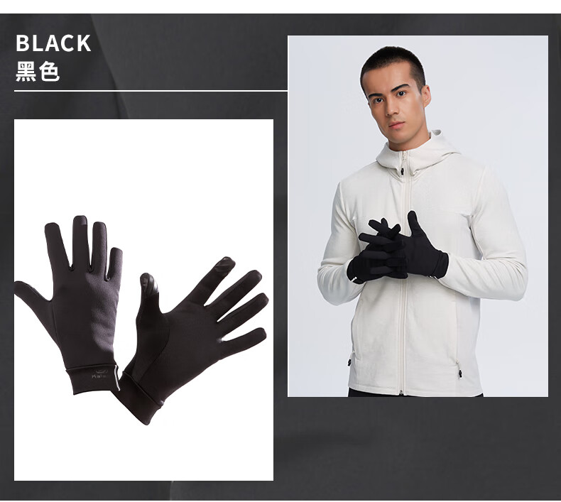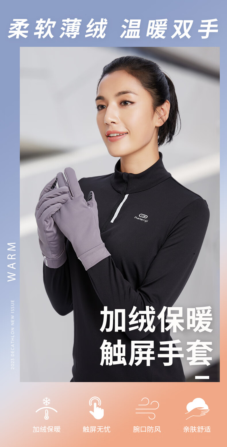 迪卡侬保暖可触屏手套秋冬男女跑步运动户外骑行黑色L-4563977