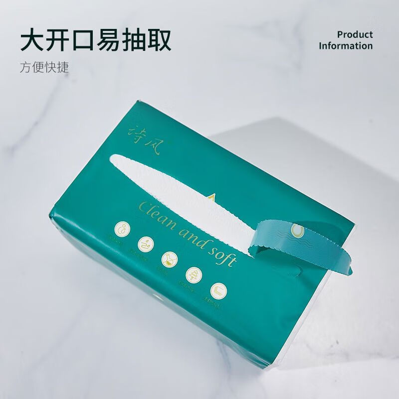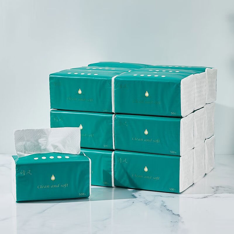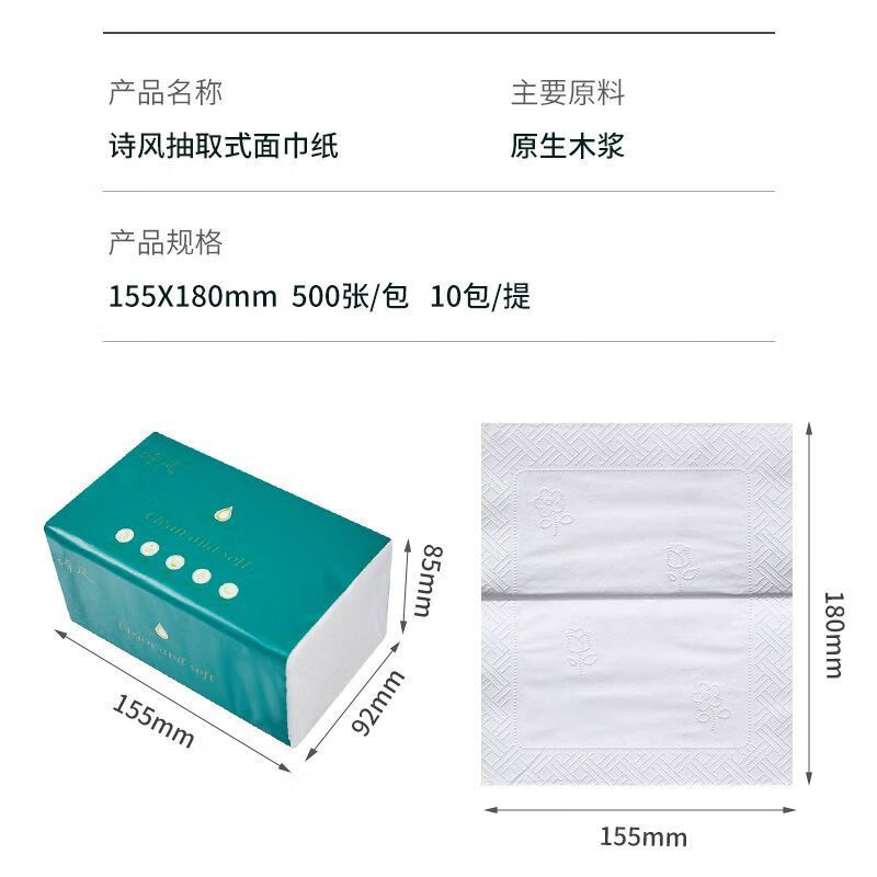 诗风抽纸500张整箱实惠装大号原生木浆可湿水纸巾餐巾纸家用100包 1层 1抽*1包