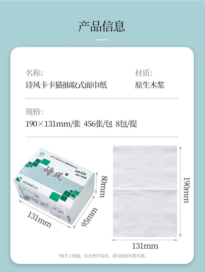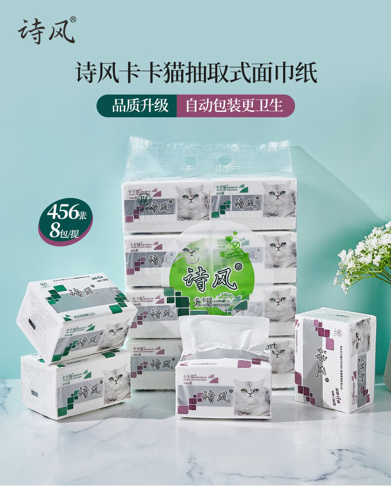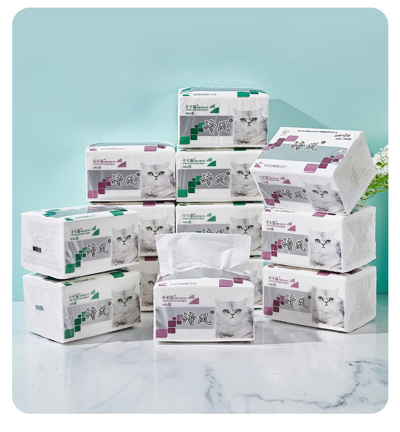 诗风卡卡猫抽纸456张80包家用纸巾饭店餐巾纸整箱批婴儿用实惠装 16包