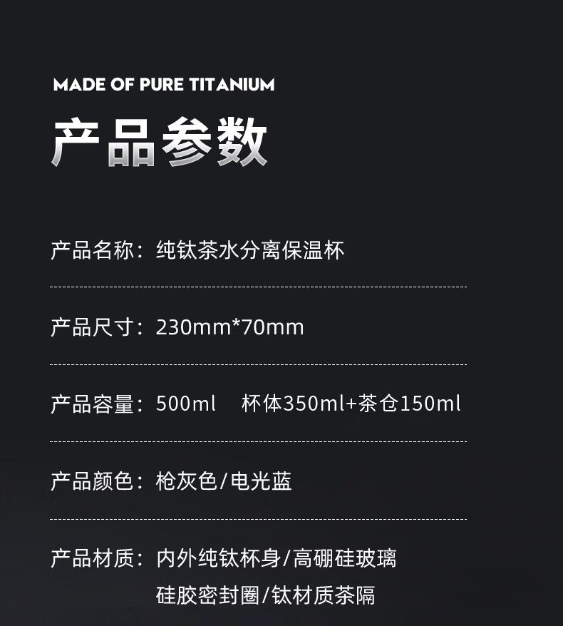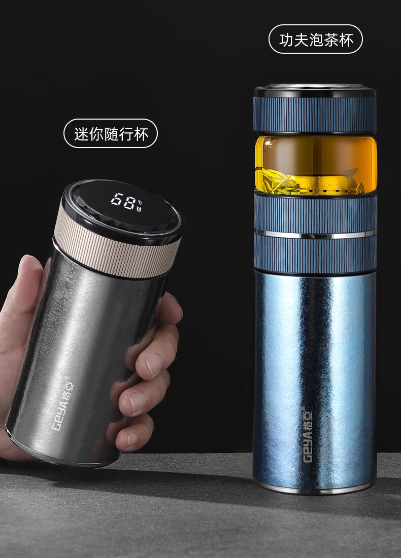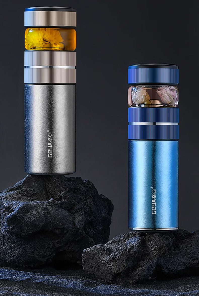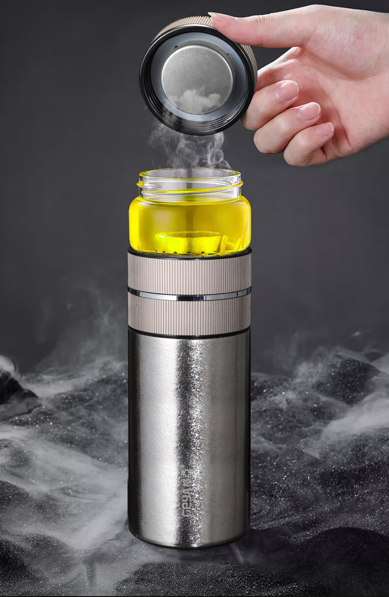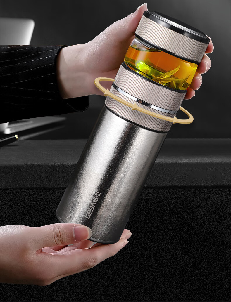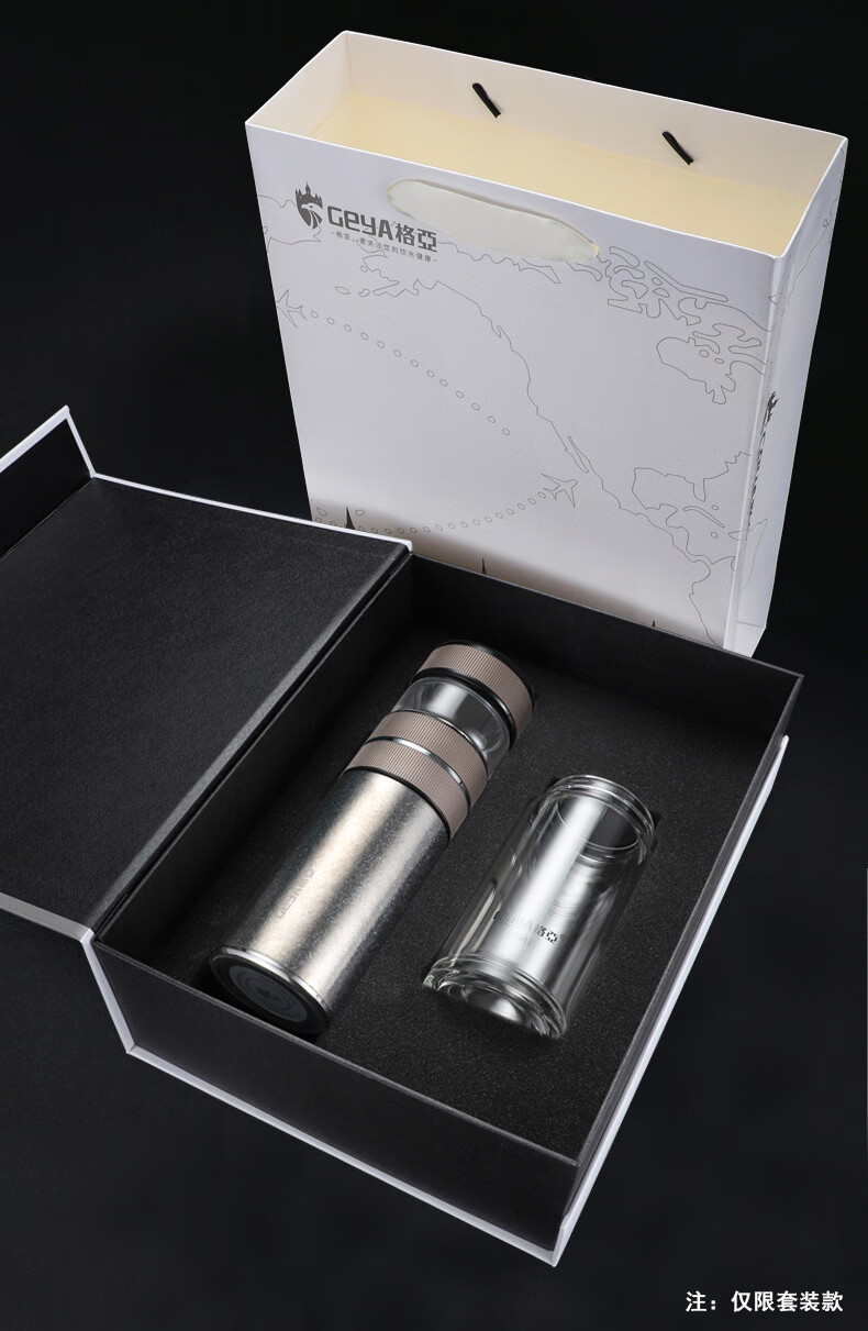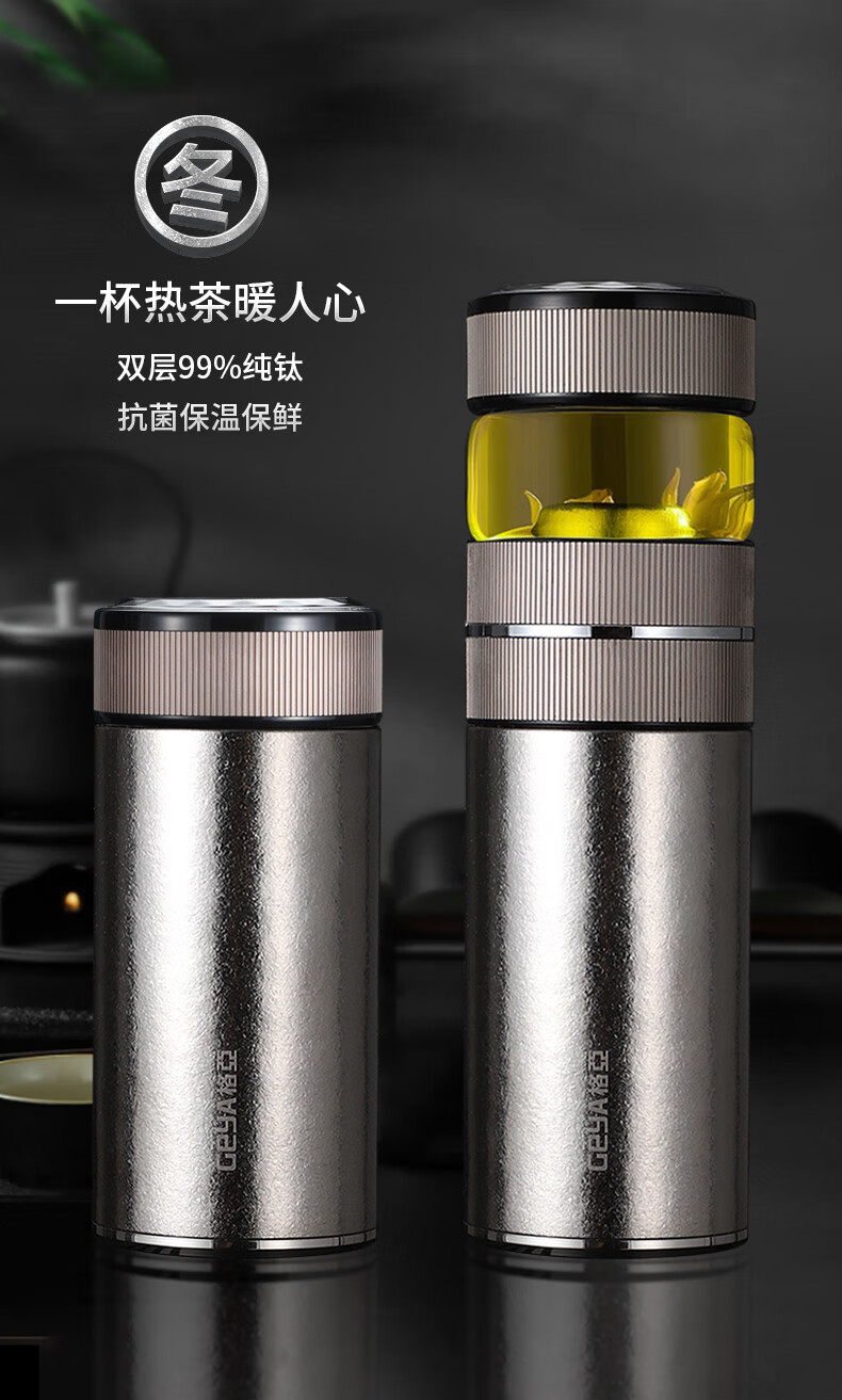 格亚(GEYA)纯钛保温杯茶水分离高档焖茶杯抑菌钛杯泡茶杯子水杯办公礼品定制 枪灰色【高档礼盒】500ml
