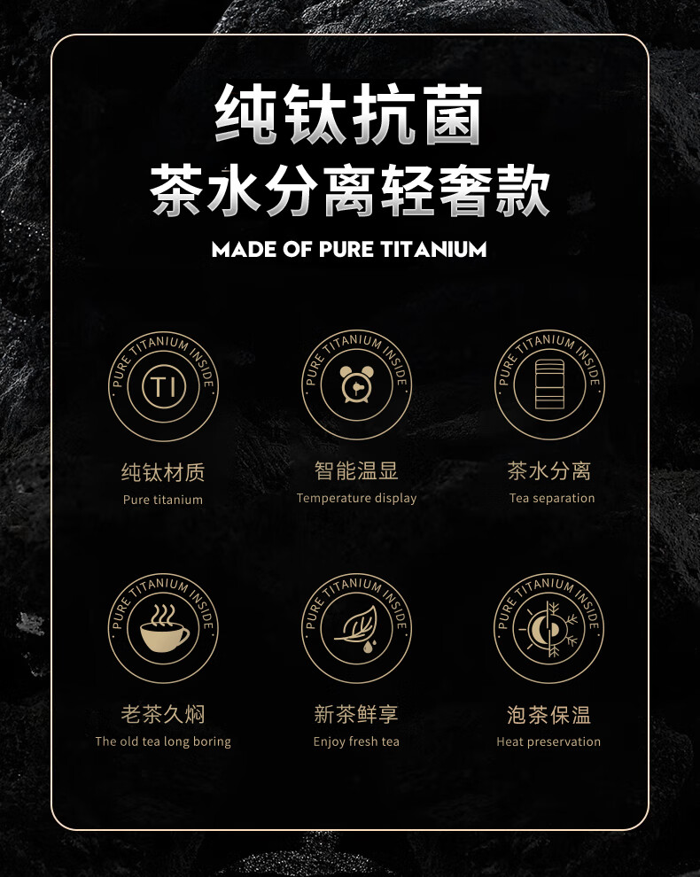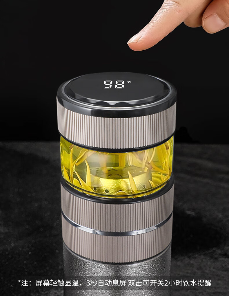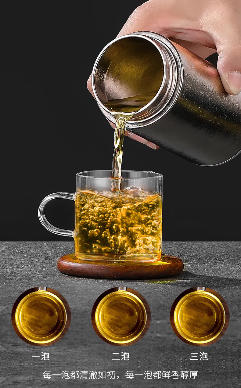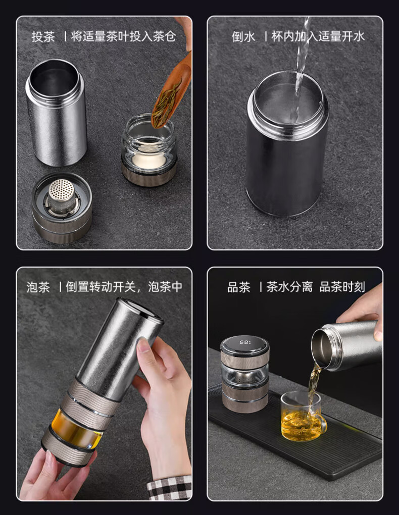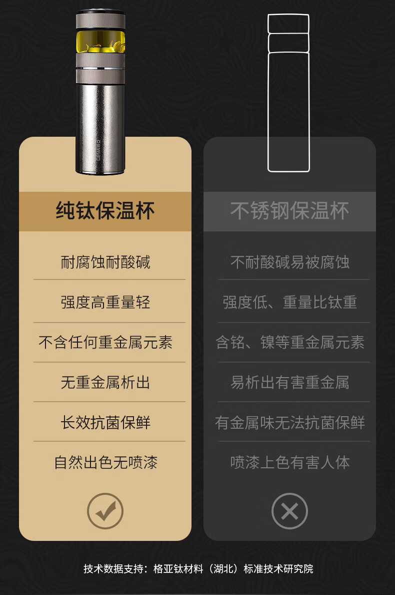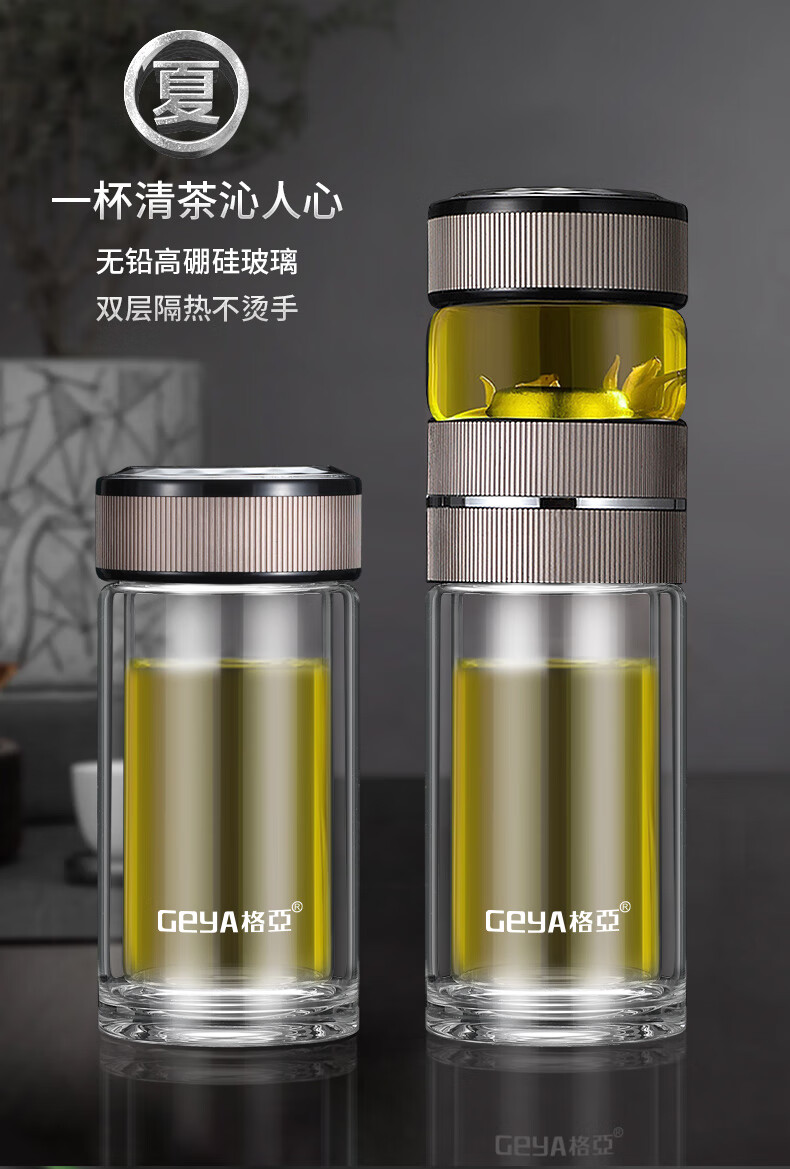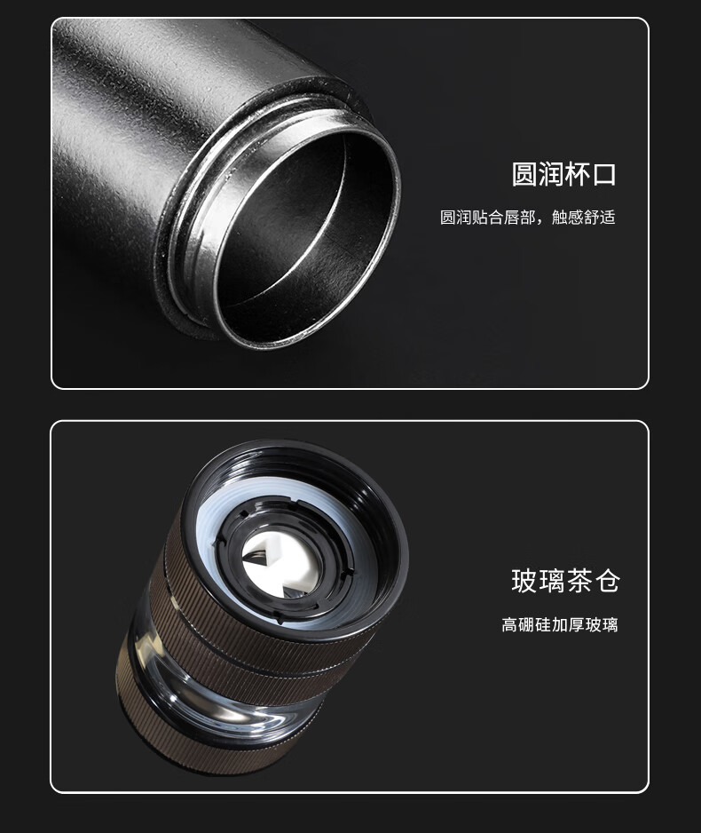 格亚(GEYA)纯钛保温杯茶水分离高档焖茶杯抑菌钛杯泡茶杯子水杯办公礼品定制 枪灰色【高档礼盒】500ml