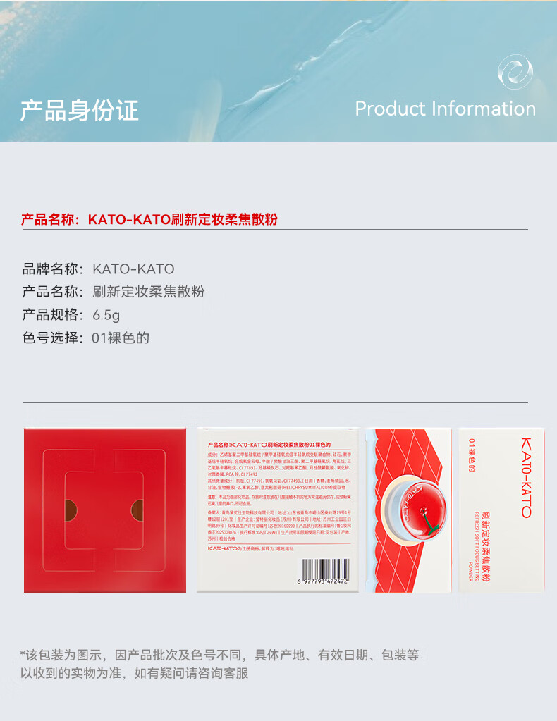 KATO-KATO刷新定妆散粉蜜粉4.0控油持妆防水防汗不脱妆 6.5g新年礼物送女友
