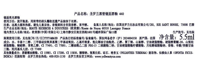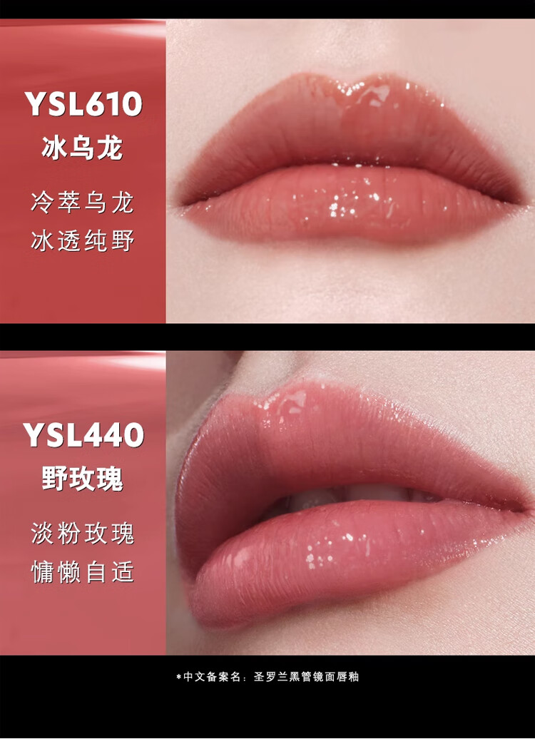 圣罗兰黑管镜面唇釉5.5ml-440#野玫瑰 欲感玻璃唇 胶原膜限定套装送礼物