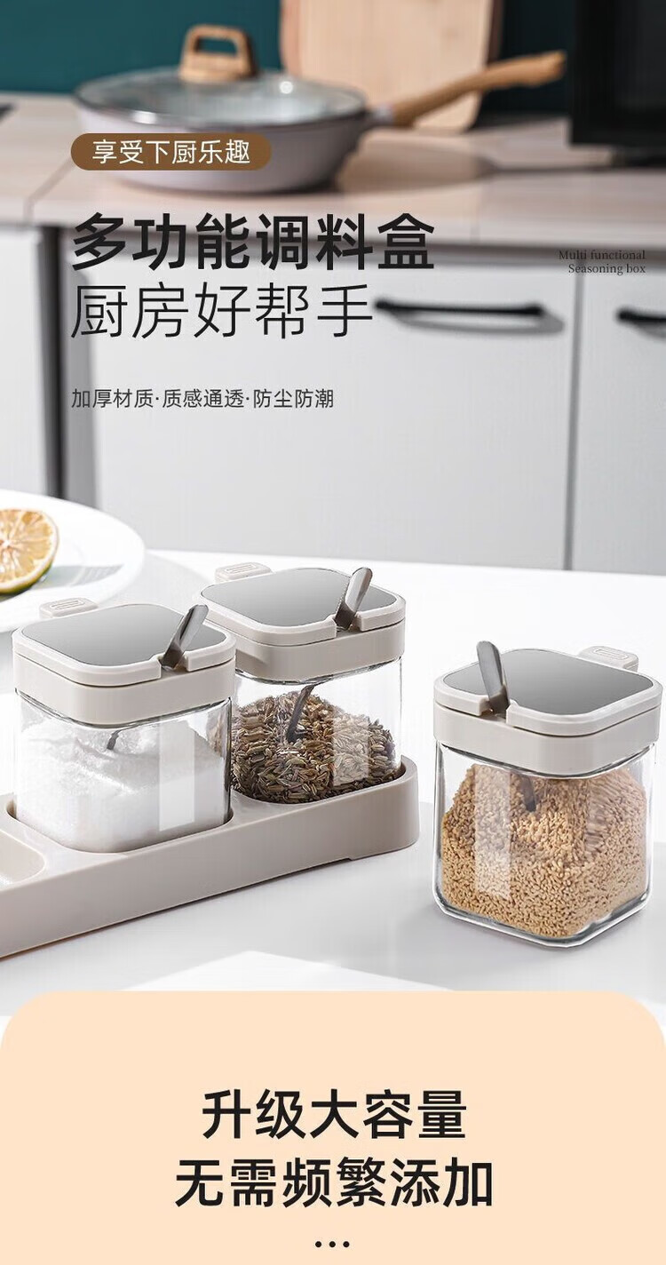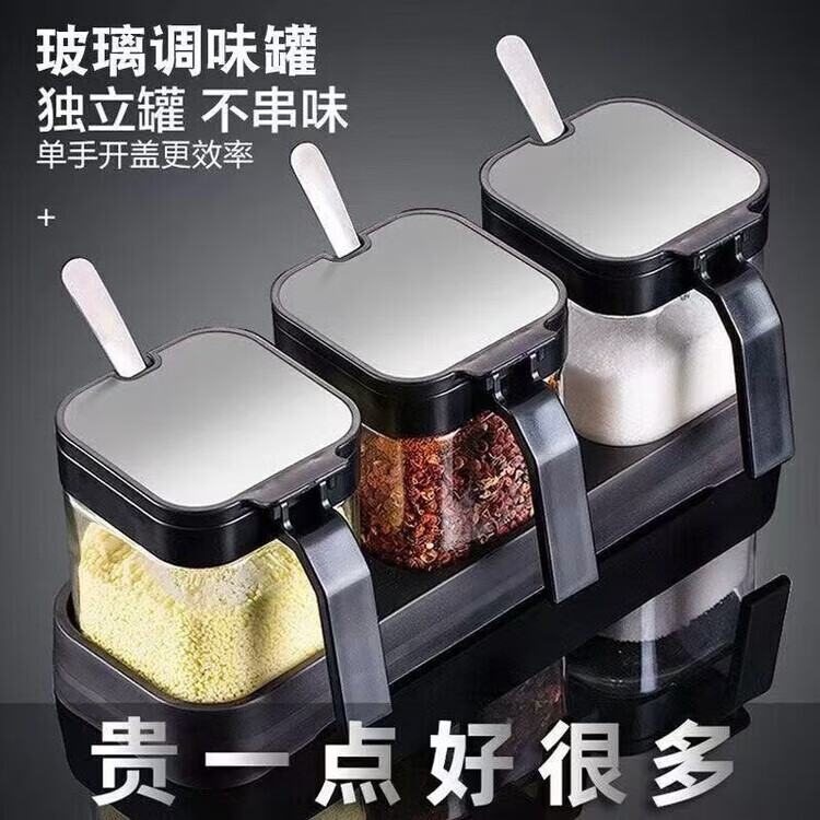 XKJ304不锈钢调料玻璃盐罐家用调味套装调料厨房罐子味精佐料调味瓶 白色 一只装+勺子+贴纸