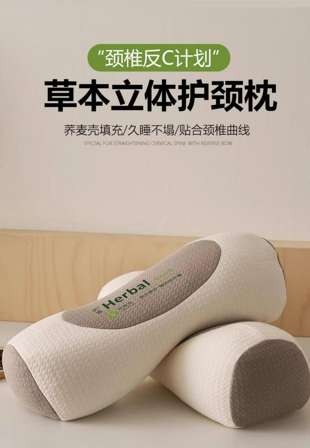 草本初色荞麦枕头睡眠单人一只装枕芯一对成人圆柱牵引腰椎枕专用 学生专款【米色-一只装】草本立体护颈枕