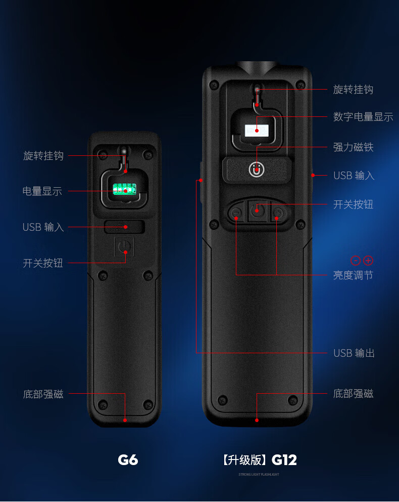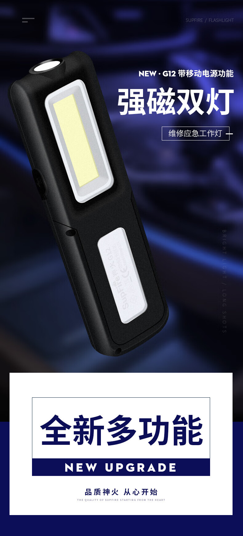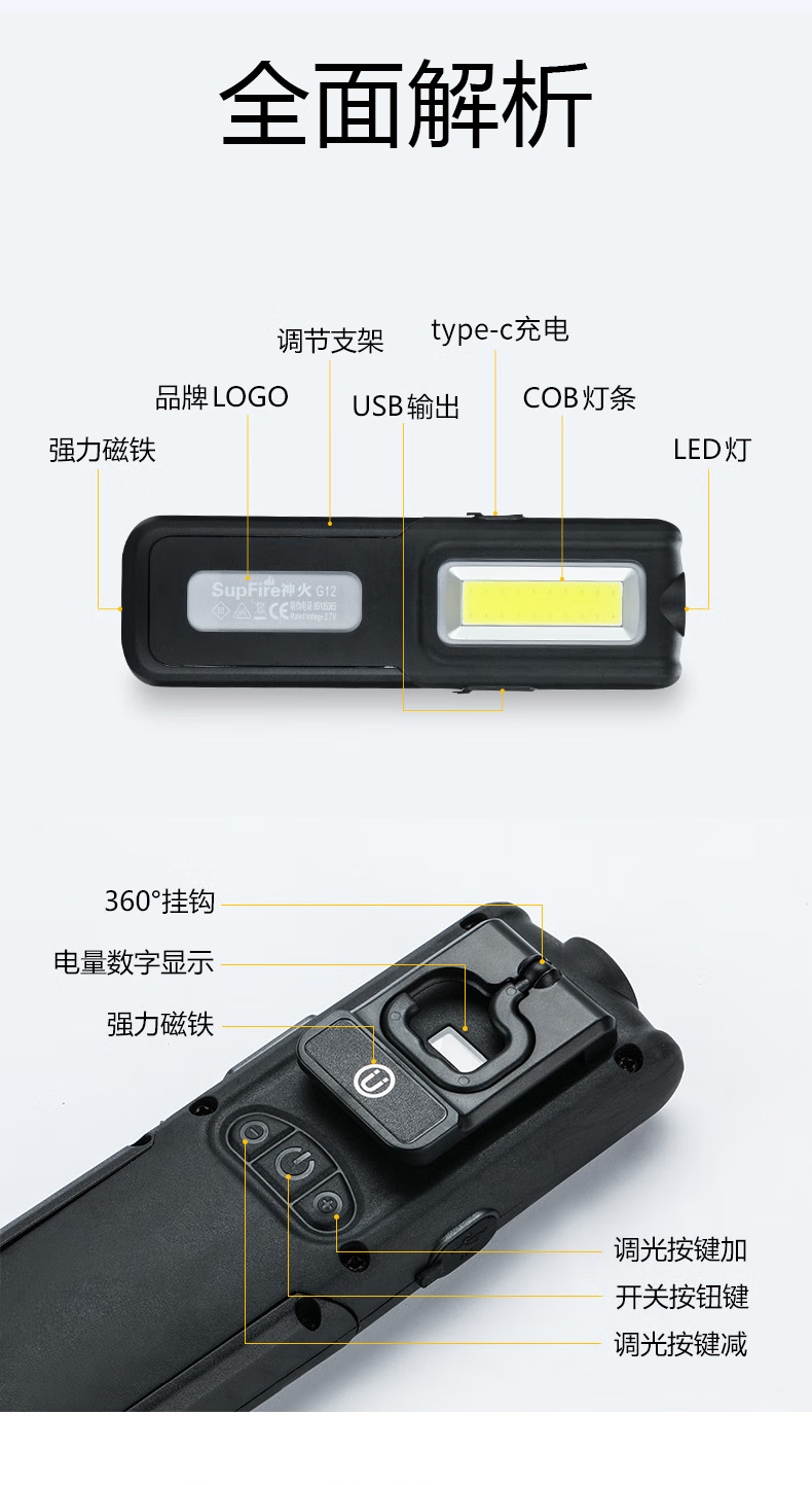 神火(SupFire)G12强光手电筒多功能工作灯led汽修带磁铁磁吸应急维修灯充电户外应急家用灯