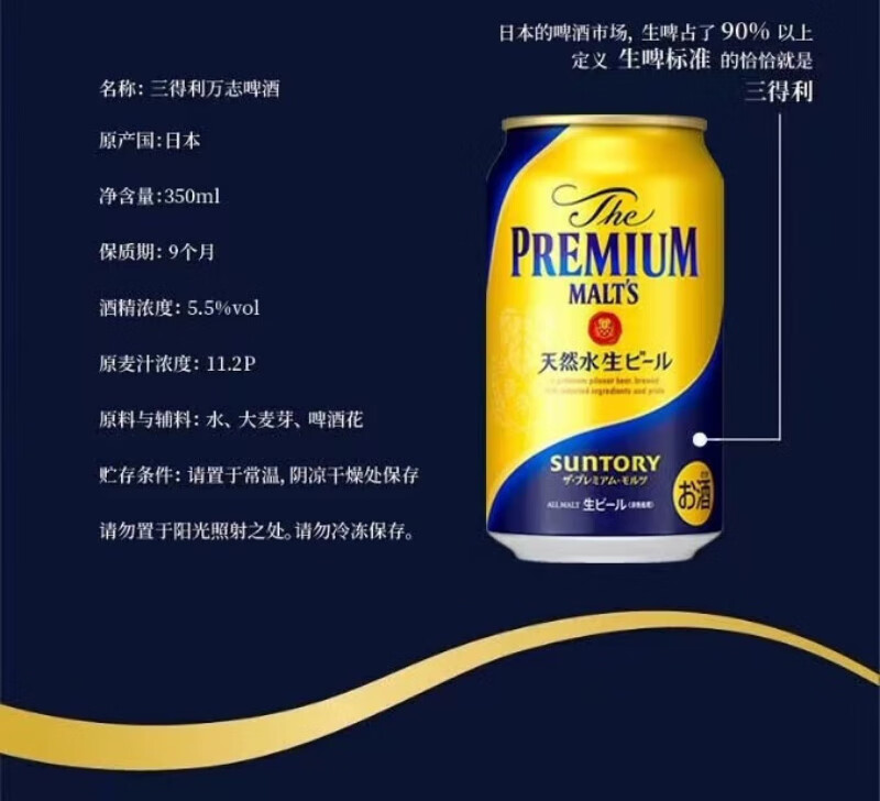 三得利(Suntory)万志金罐生啤【11月产】天然水神泡甘美优美限定 日本原装进口 大万志蓝罐 500mL 25年8-9月产 12罐