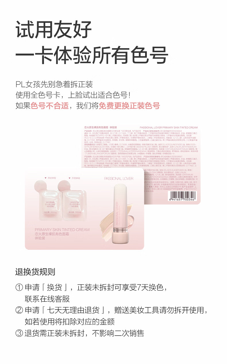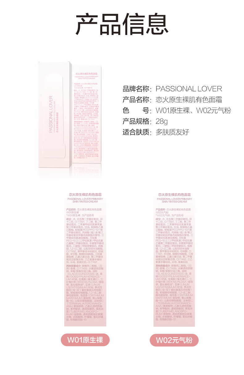 恋火(Passional Lover)PL原生裸肌有色面霜体验装 素颜霜懒人面霜妆前隔离BB霜试用小样