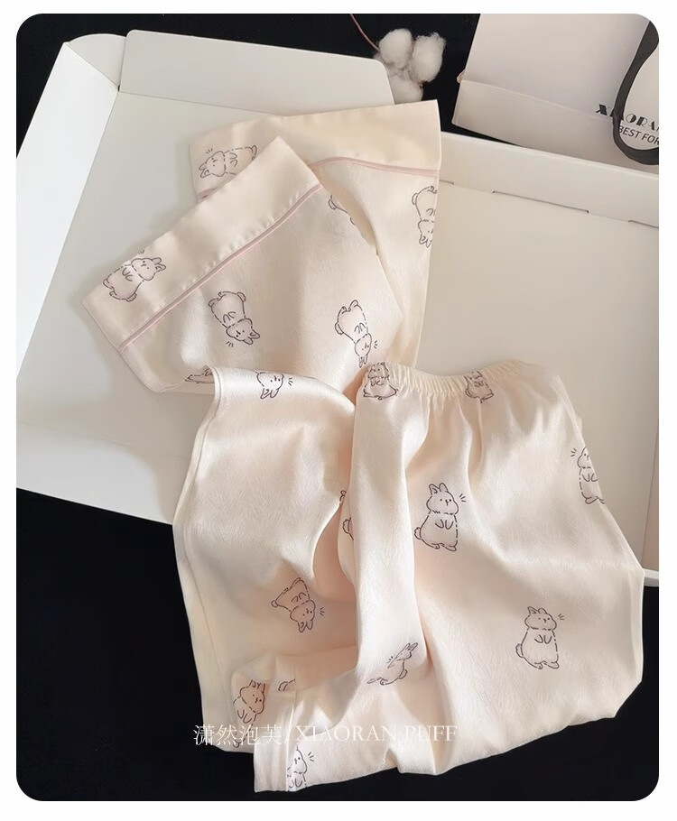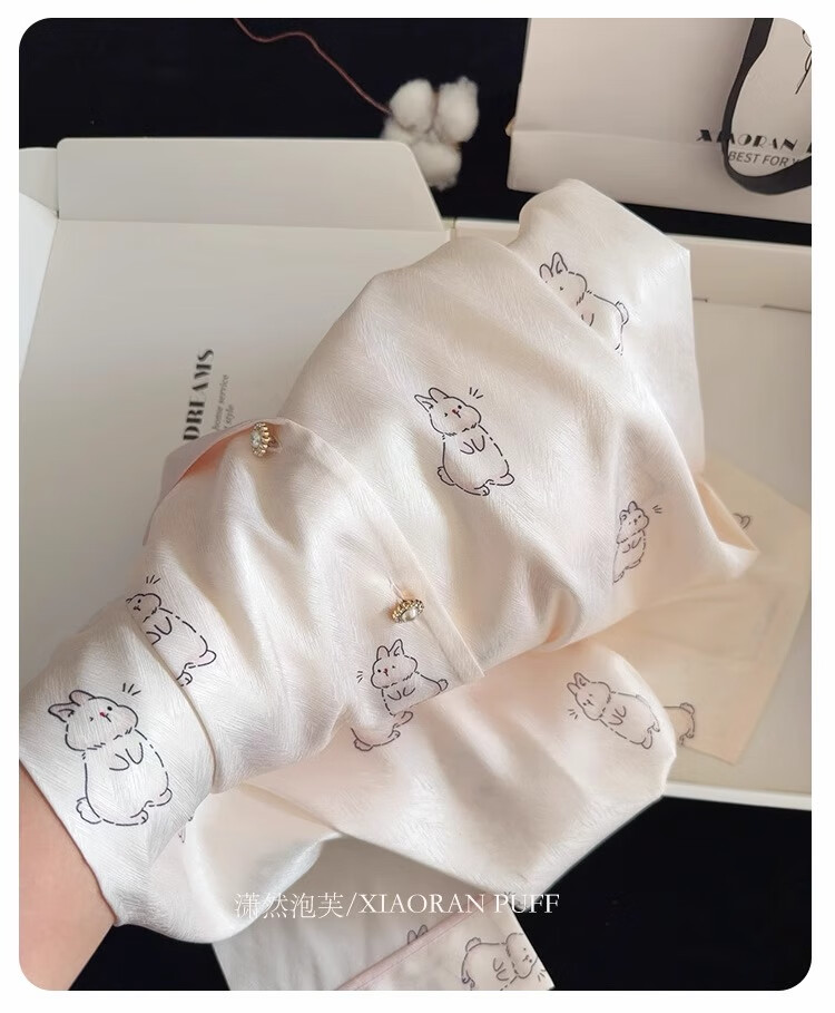浪莎呆萌兔子冰丝睡衣女士春薄款家居服可爱送闺蜜生日礼物礼盒装睡衣 呆萌兔子长袖冰丝 非礼盒 M