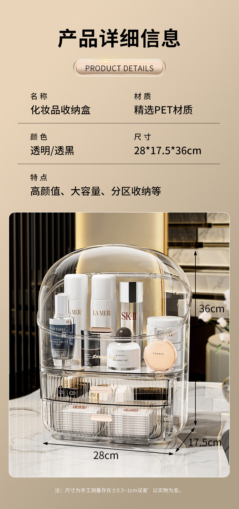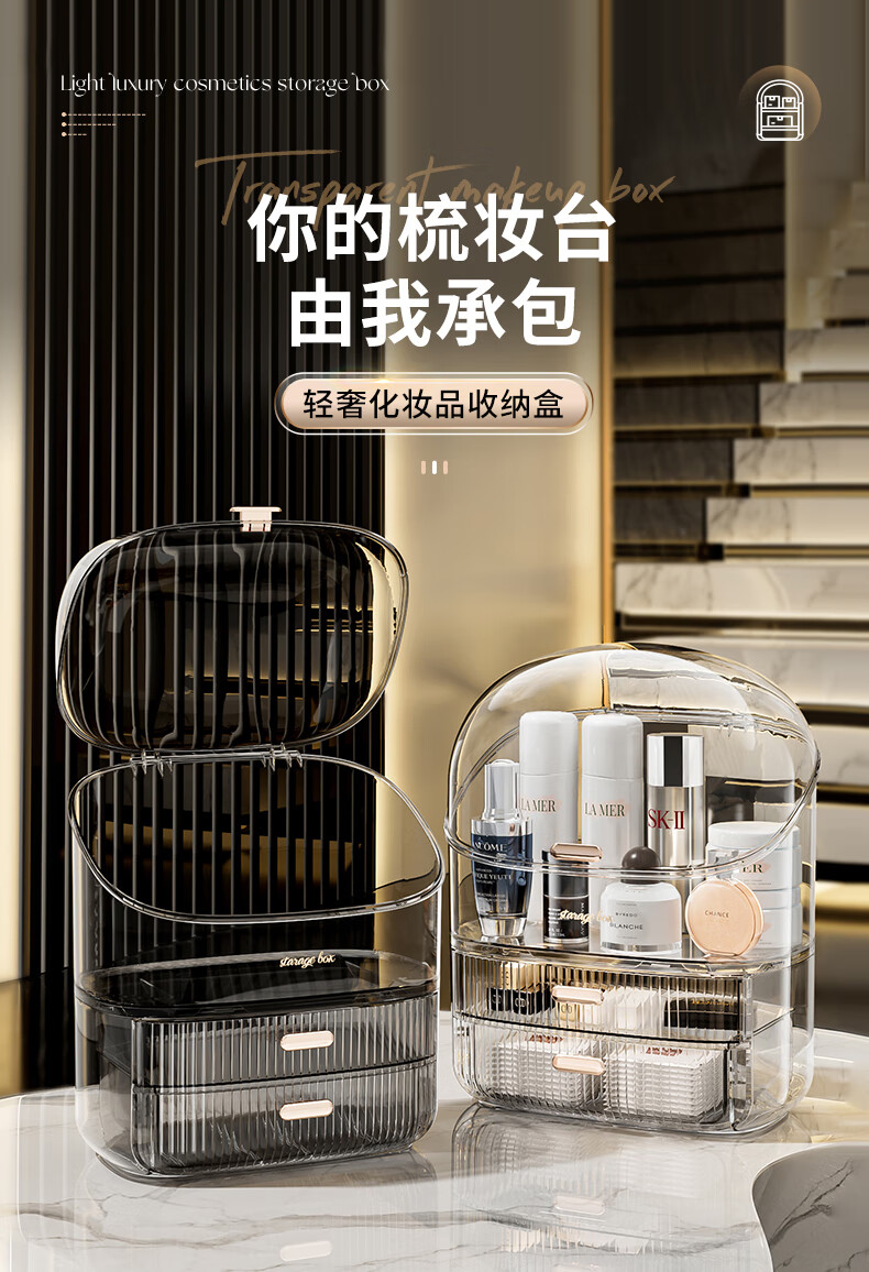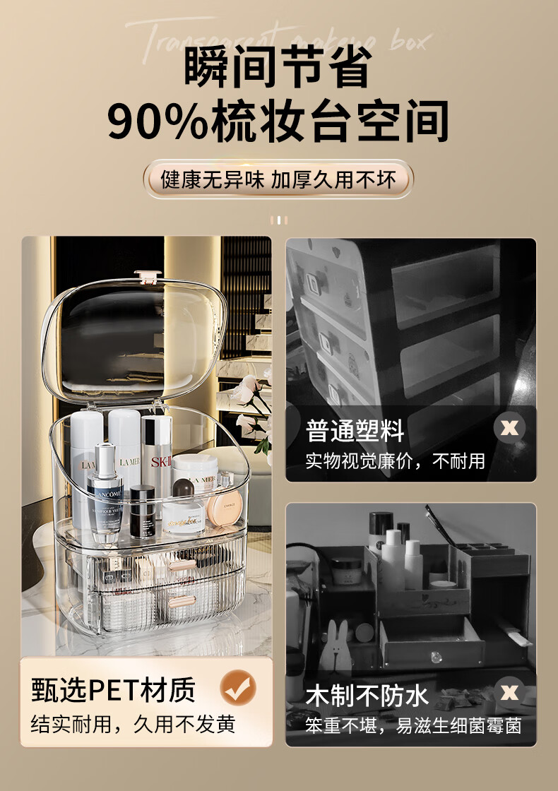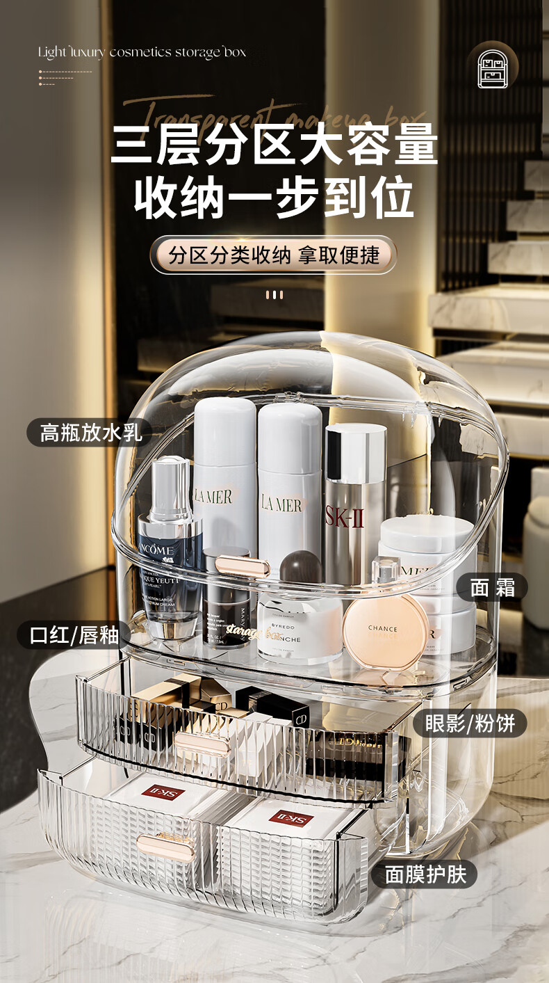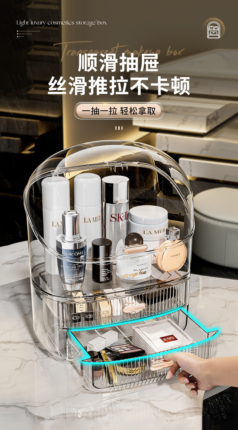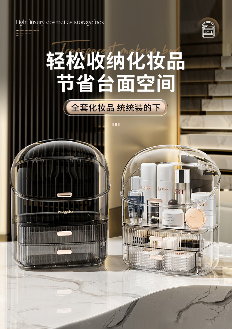 KAMAN轻奢化妆品收纳盒桌面梳妆台置物架抽屉式高级感护肤品口红美妆箱 透黑【防尘/大容量】1个