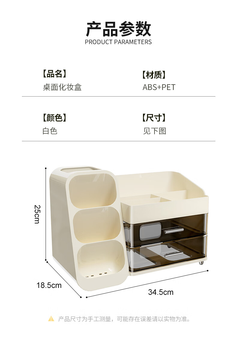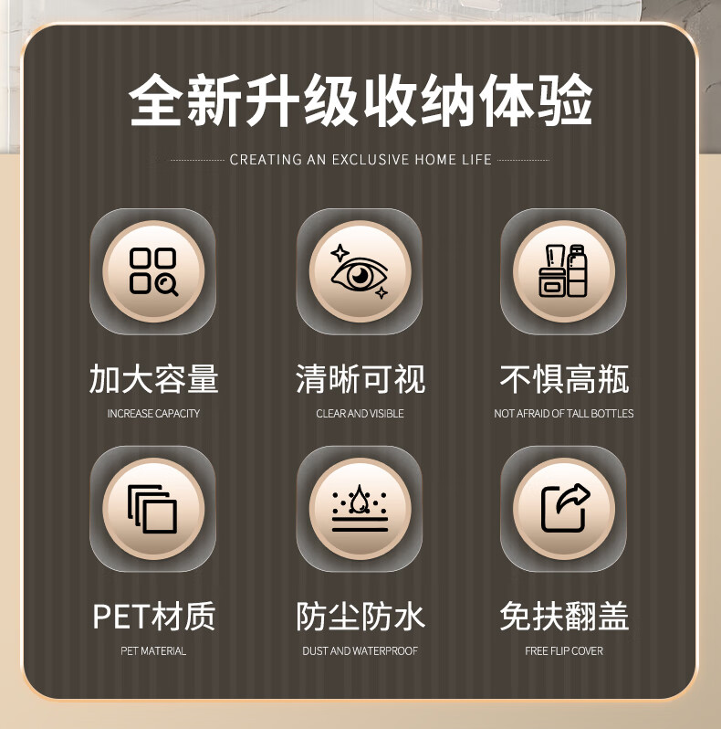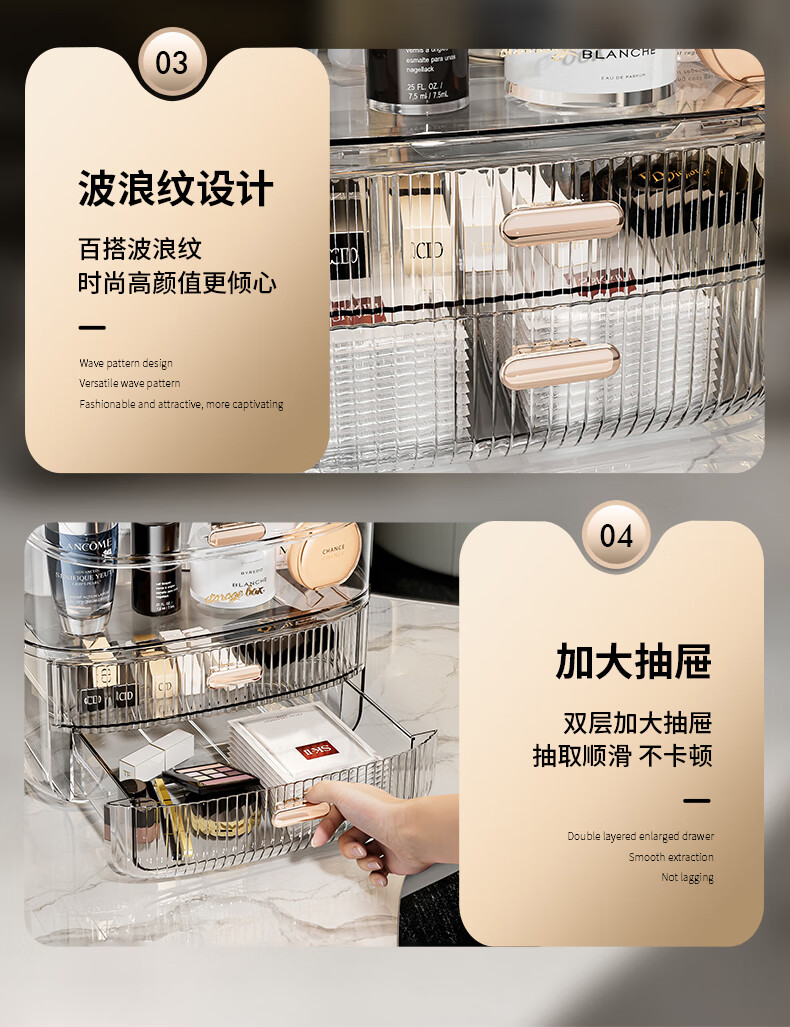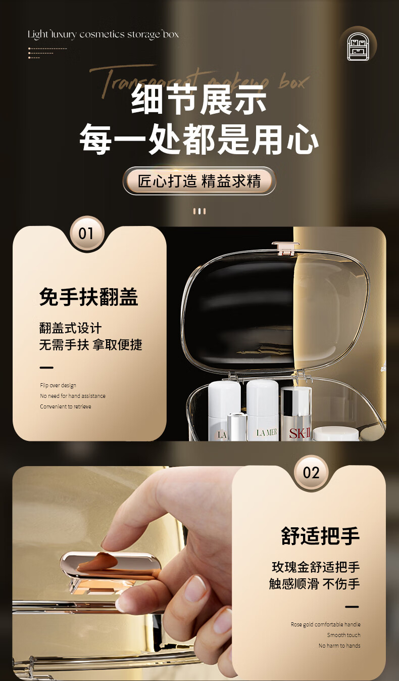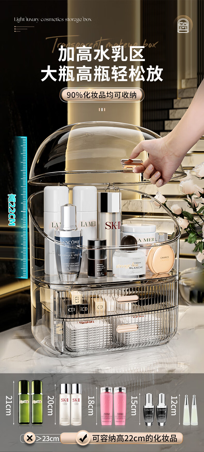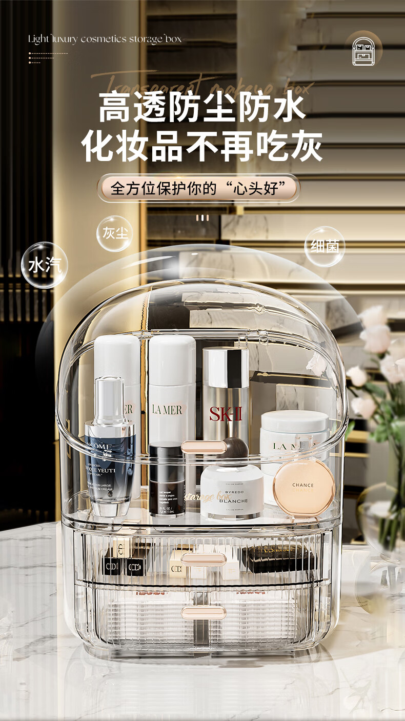 KAMAN轻奢化妆品收纳盒桌面梳妆台置物架抽屉式高级感护肤品口红美妆箱 透黑【防尘/大容量】1个