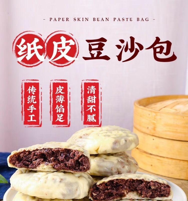 纯手工纸皮红豆饼豆沙包红豆包纸皮馒头窝窝头面点主食早餐半成品 2斤10个纸皮红豆包1
