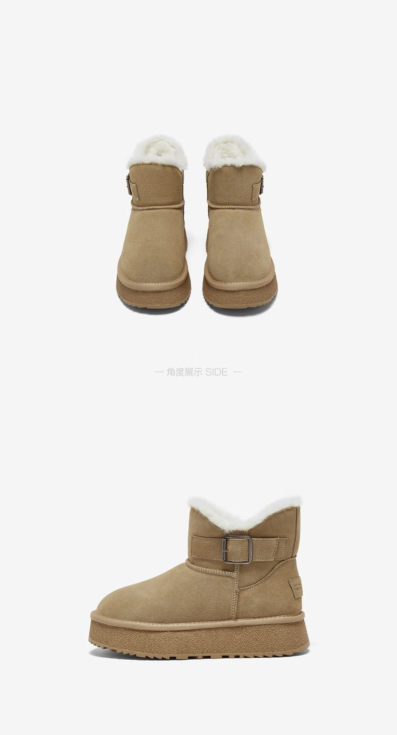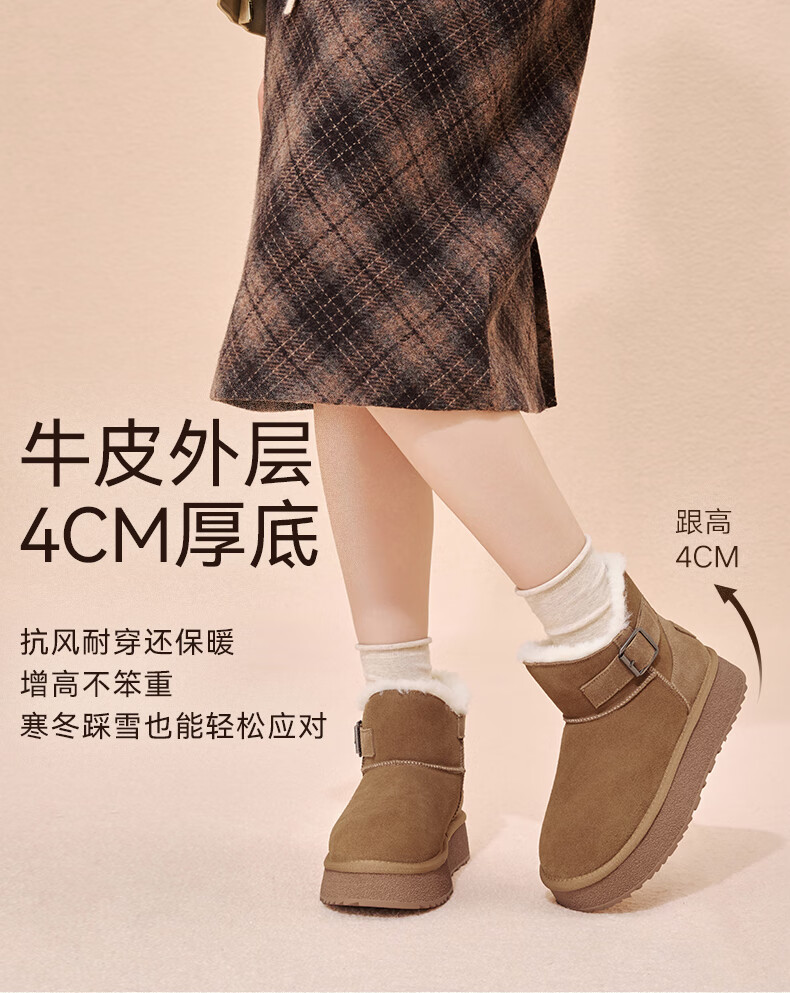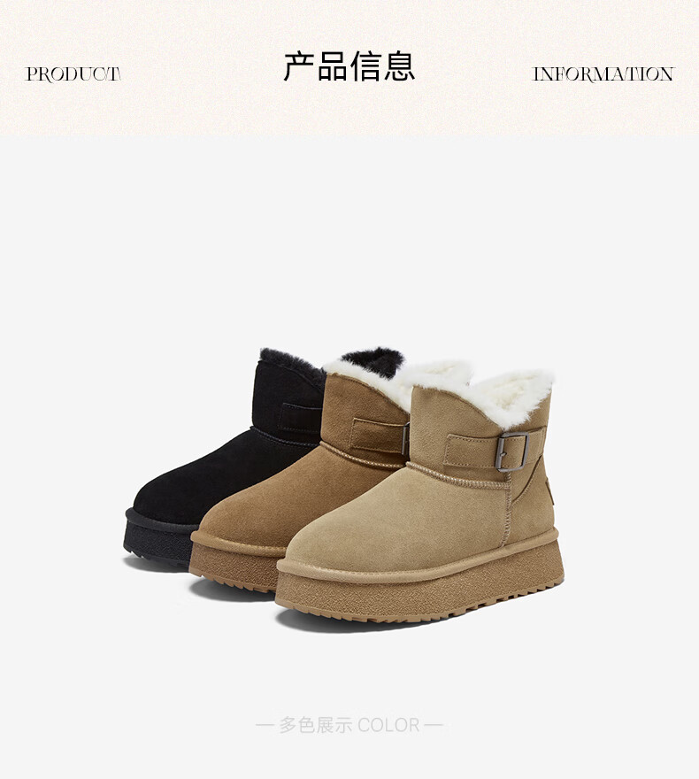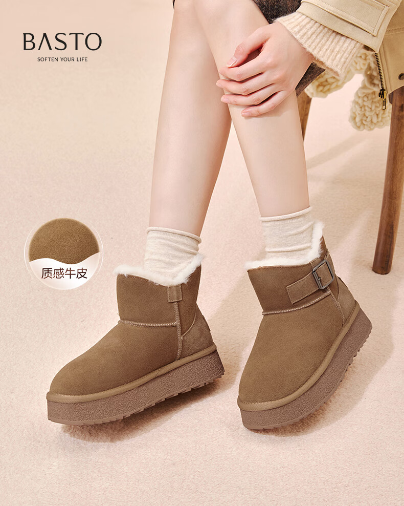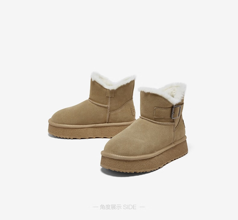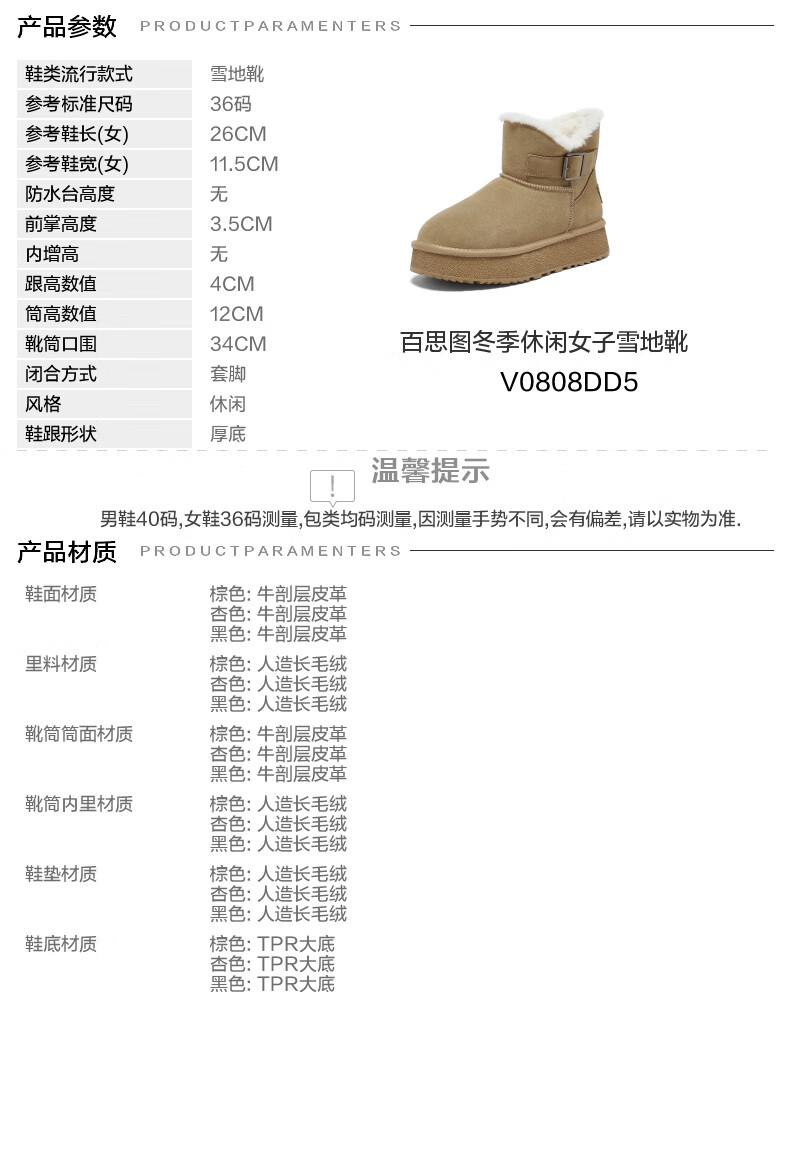 百思图2025冬季新款雪地靴时尚简约休闲厚底女短靴V0808DD5【预售】 杏色 38