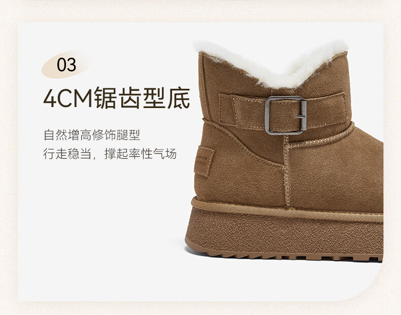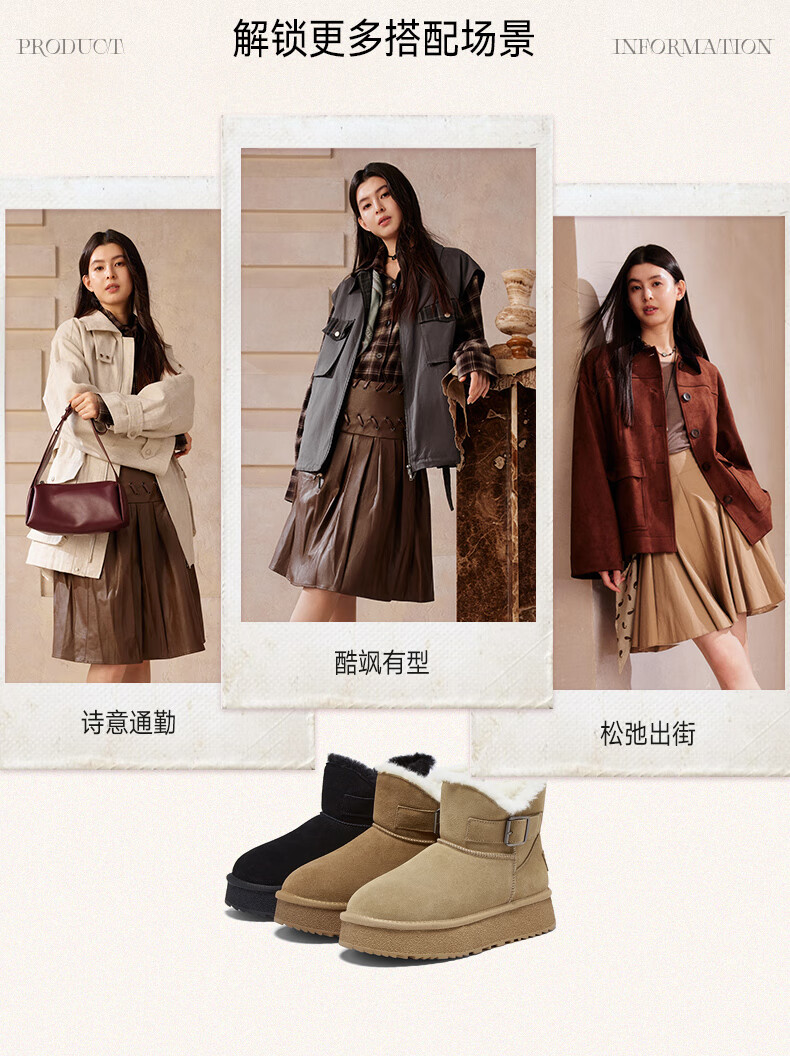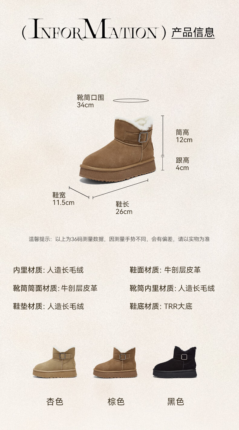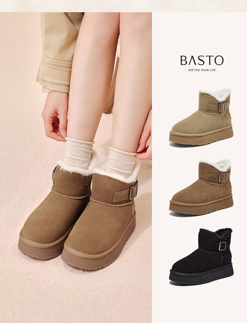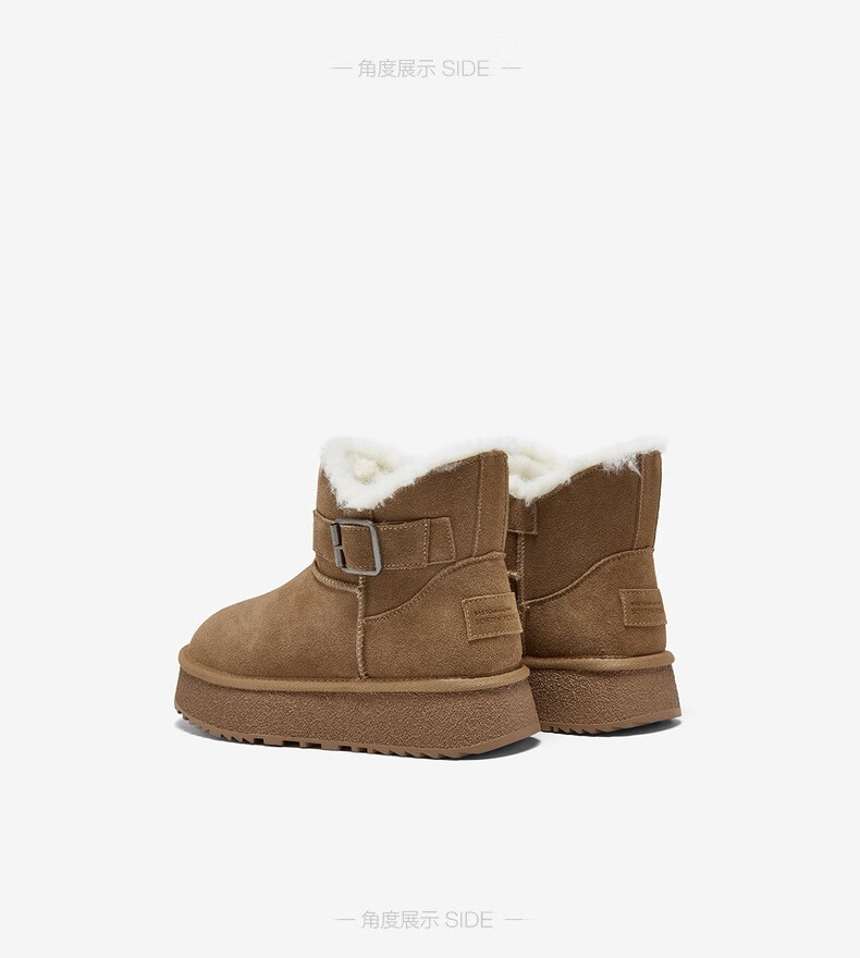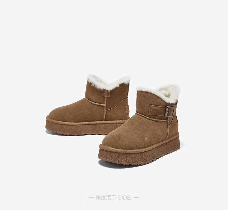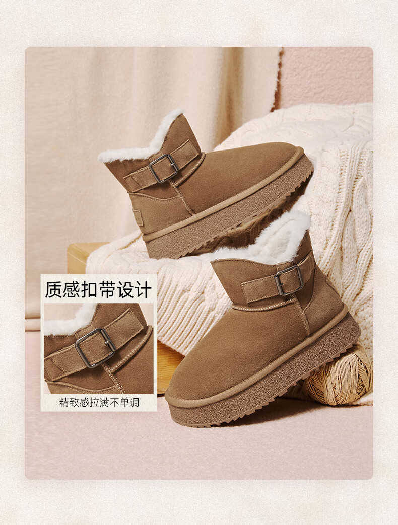 百思图2025冬季新款雪地靴时尚简约休闲厚底女短靴V0808DD5【预售】 杏色 38