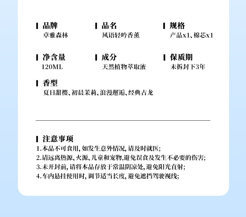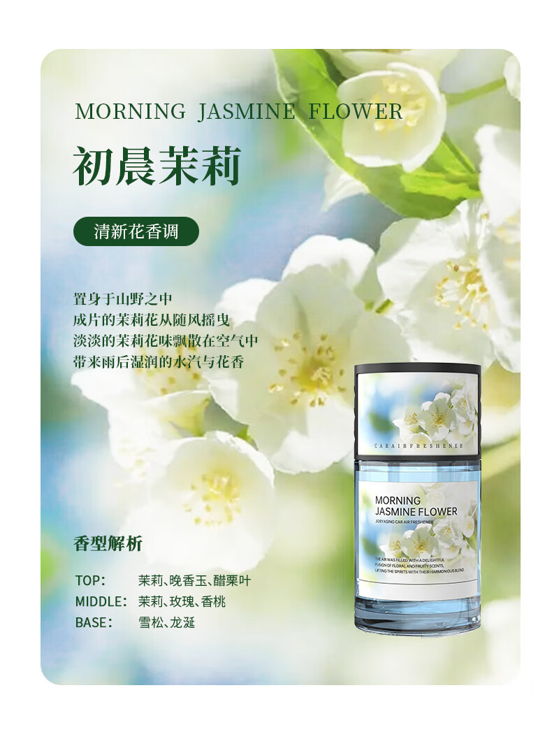卓雅森林精油香薰汽车香水元气香氛香味清新淡雅持久留香樱花果味 【清新茉莉香】初晨茉莉 120ml