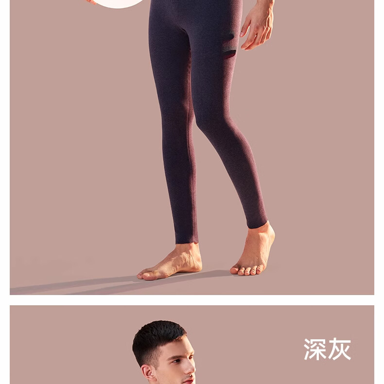 俞兆林保暖秋裤男士羊绒蚕丝德绒无痕打底线衬裤10A抗菌抗静电1条深灰