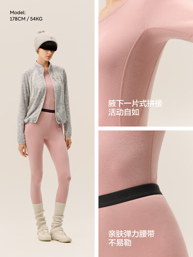 蕉内热皮302++保暖内衣男女士棉感套装7A抗菌秋衣秋裤抓绒加厚秋冬季 【女士】藕粉 M