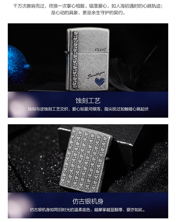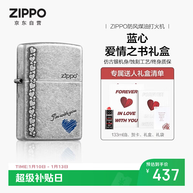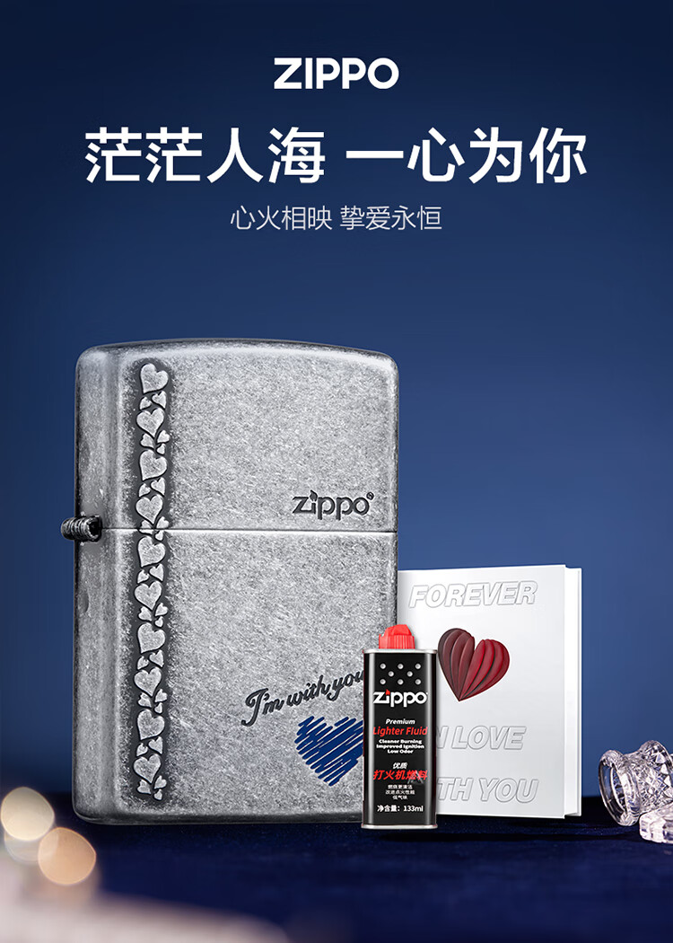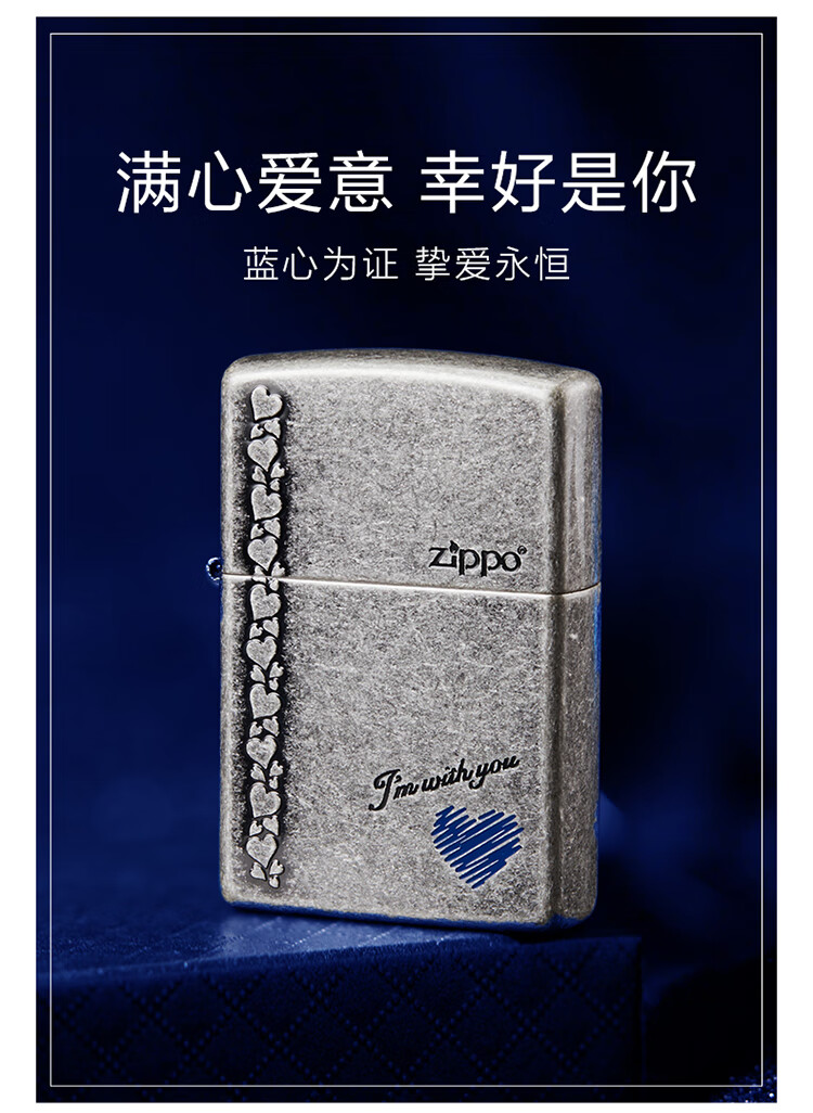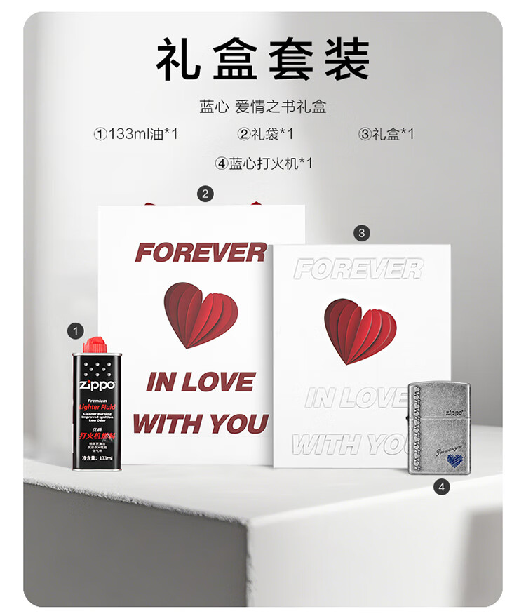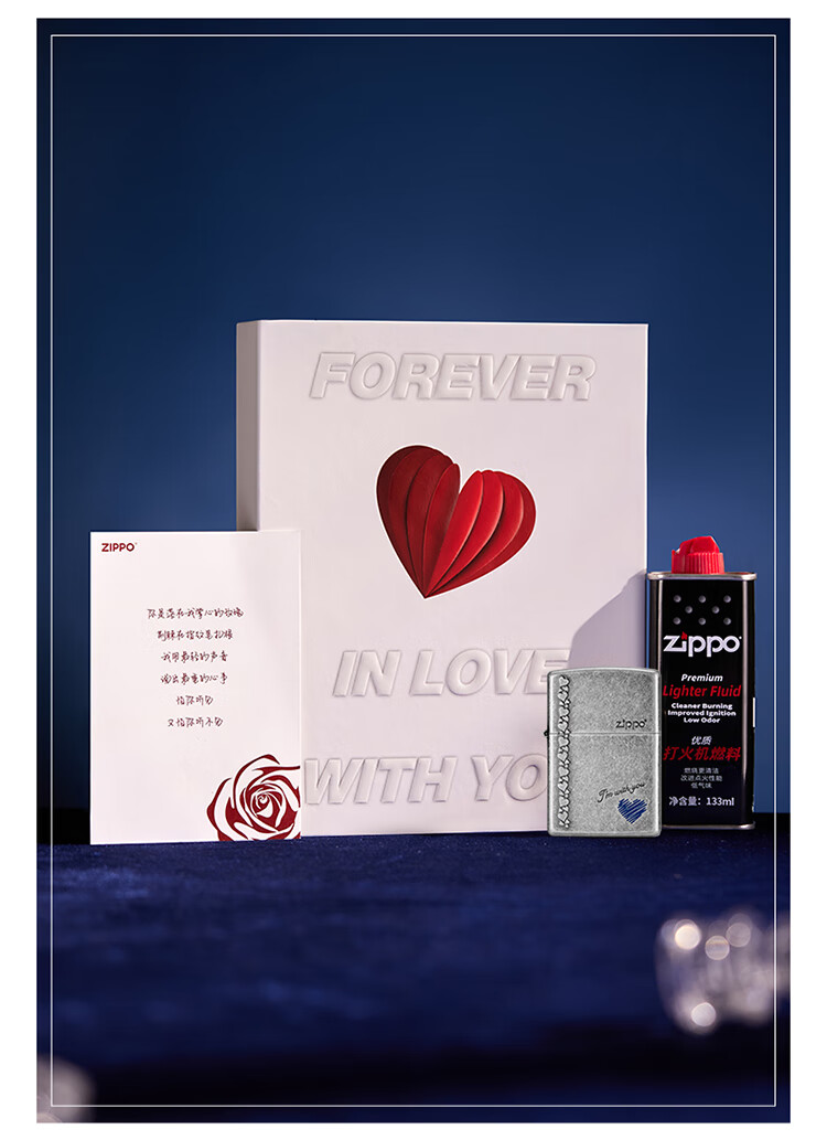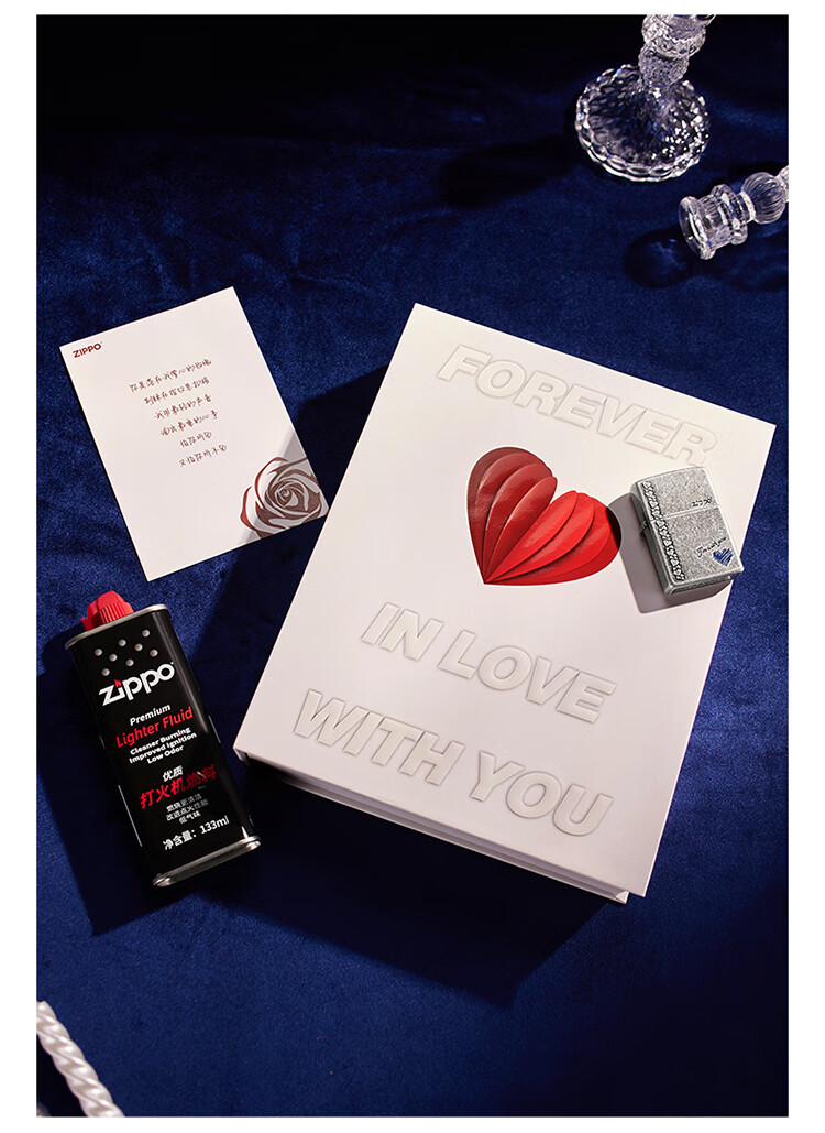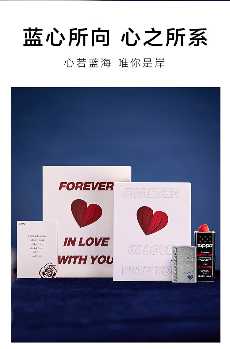ZIPPO打火机之宝防风煤油 蓝心 爱情之书礼盒生日礼物送男友 含油套装