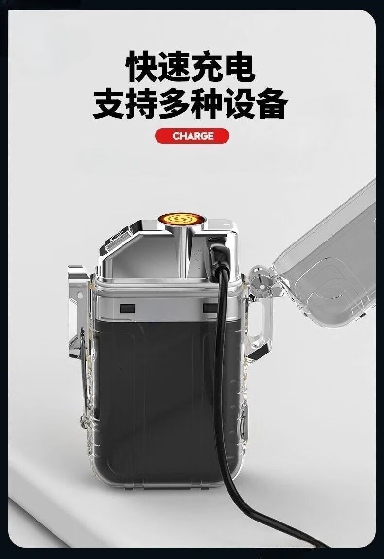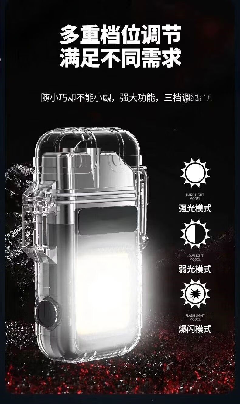 双电打火机可充电户外便携迷你强光应急灯家用多功能照明灯 银色 超亮电打火机