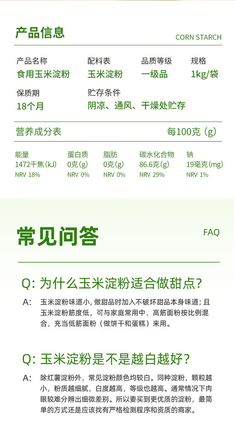 新良玉米淀粉1kg烘焙原料勾芡生粉蛋糕饼干点心糕点 玉米淀粉1kg