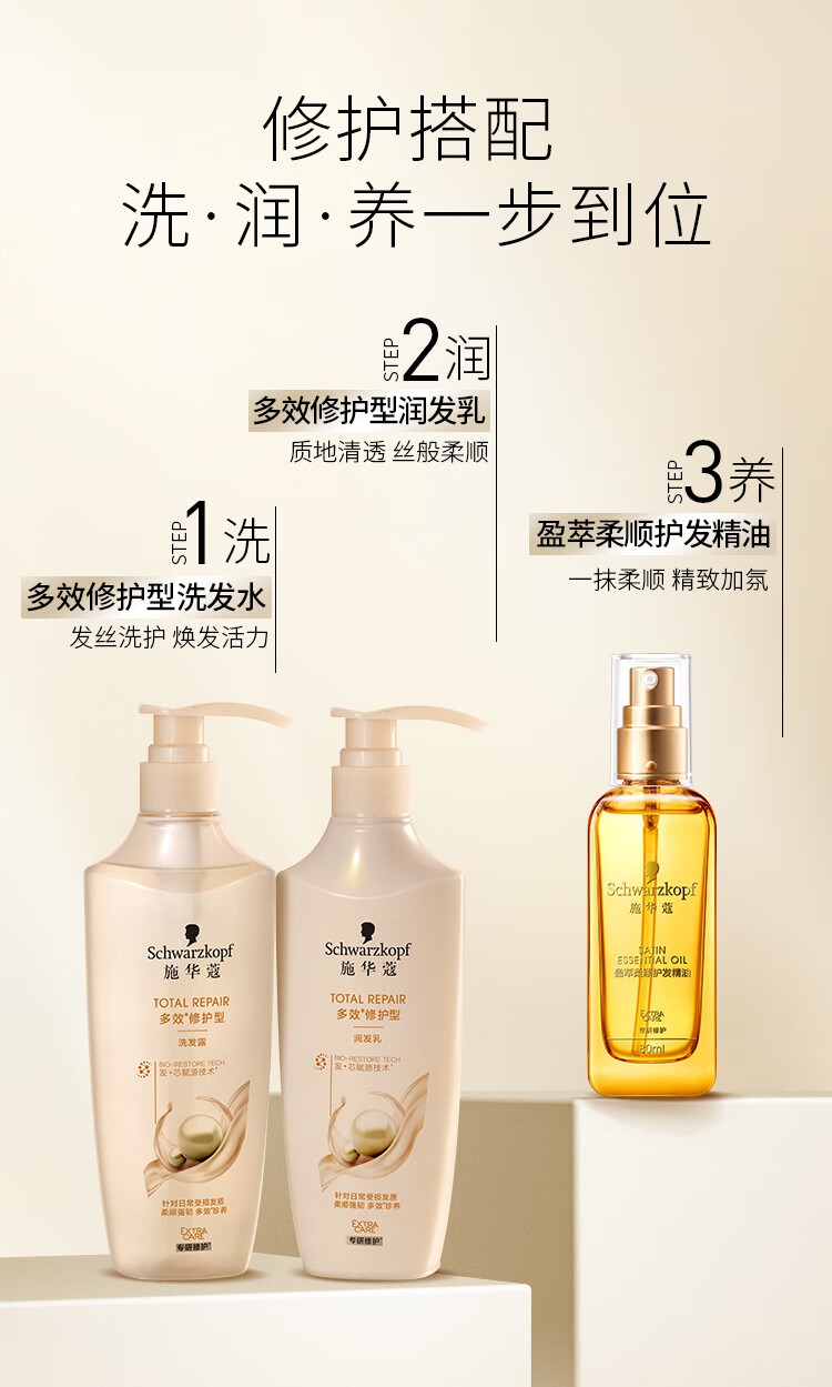 施华蔻(Schwarzkopf)多效修护型洗发露600ml 改善毛躁针对受损柔顺滋养洗发水新老包装