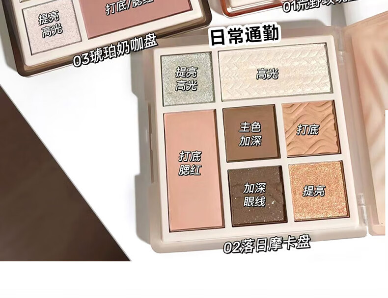 AKF眼影腮红高光提亮修容卧蚕全妆一体正品大牌懒人综合盘大地色系 03# 琥珀奶咖【百搭-奶咖橘棕】