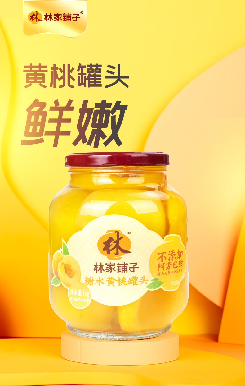 林家铺子糖水黄桃罐头1000g 水果罐头1公斤装休闲零食送礼礼品 【不添加阿斯巴甜】1000g*1罐