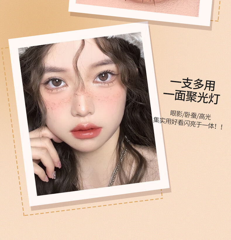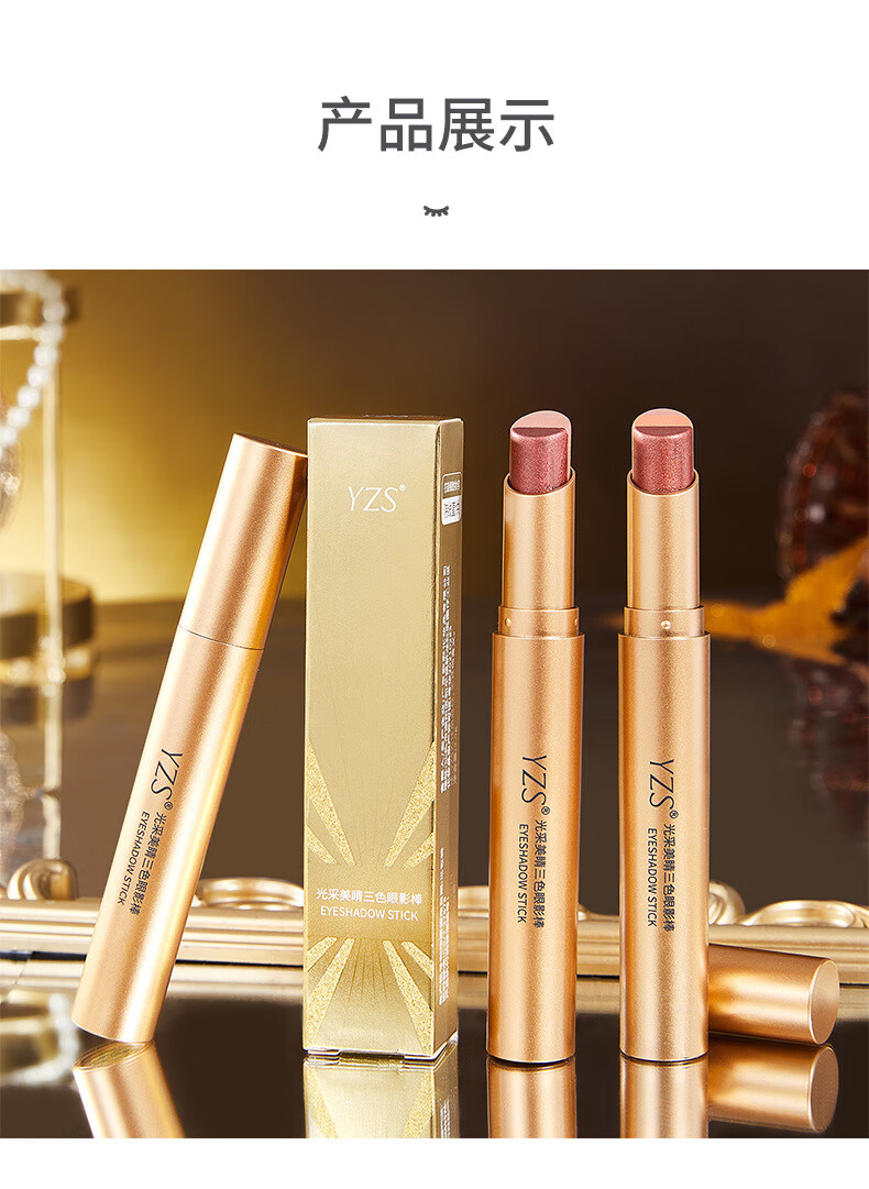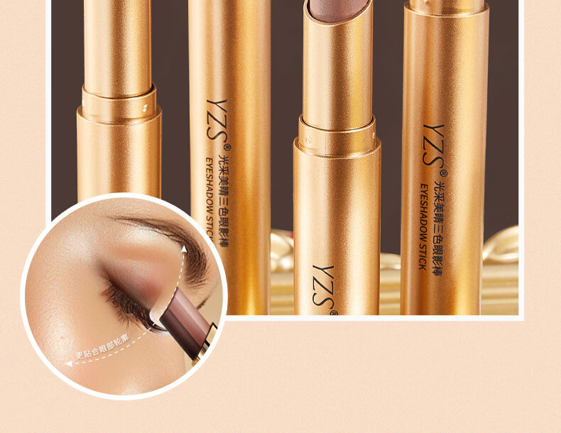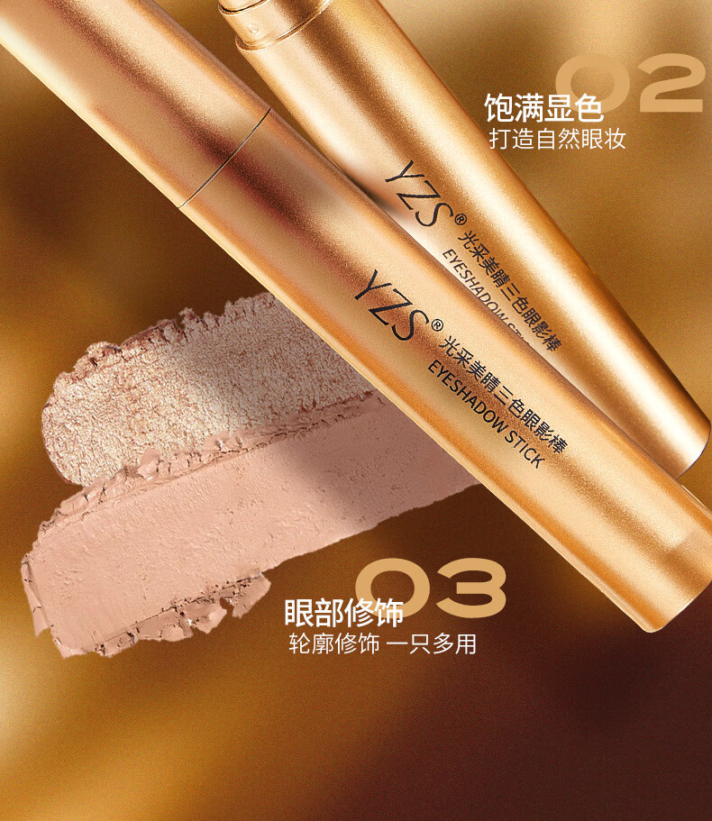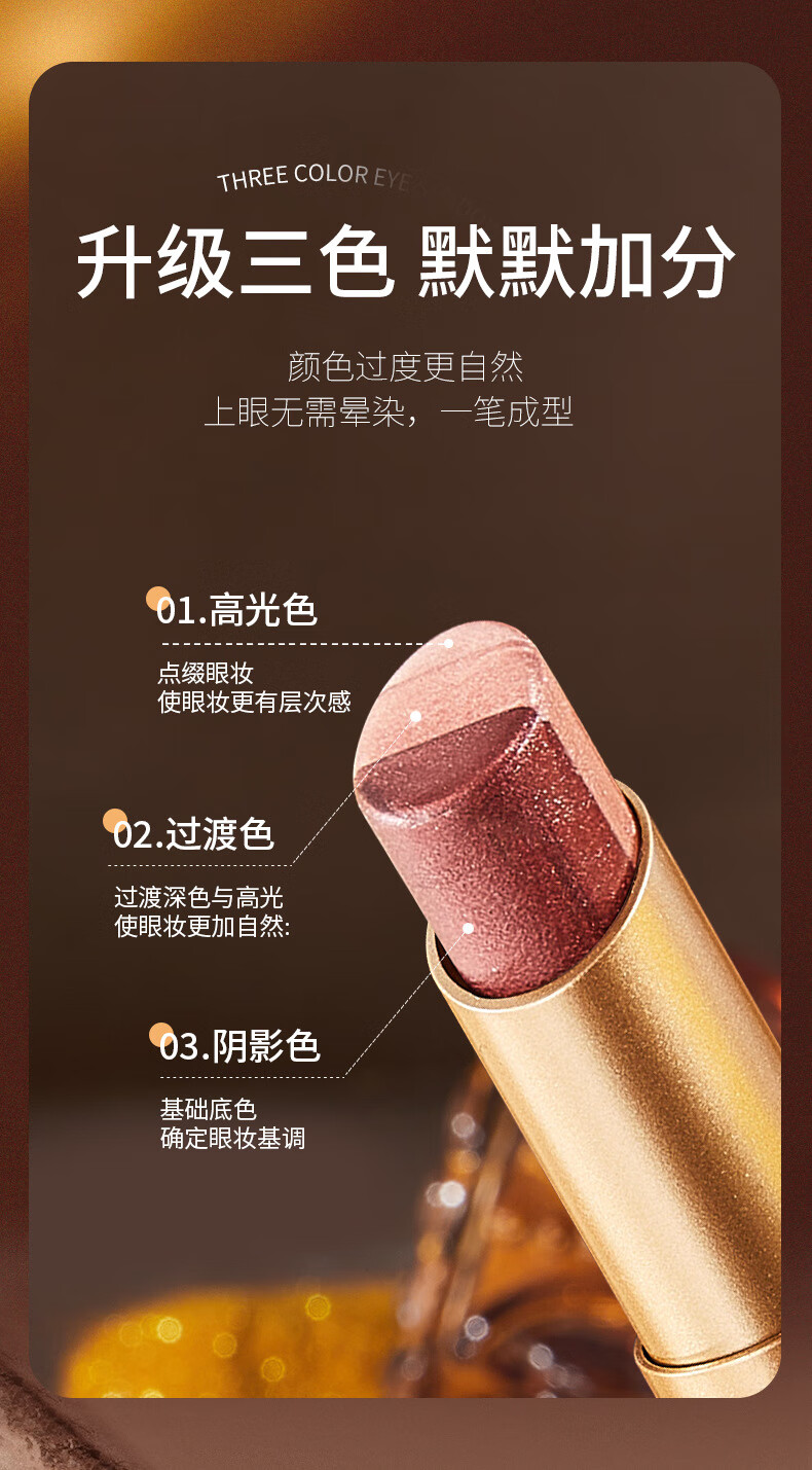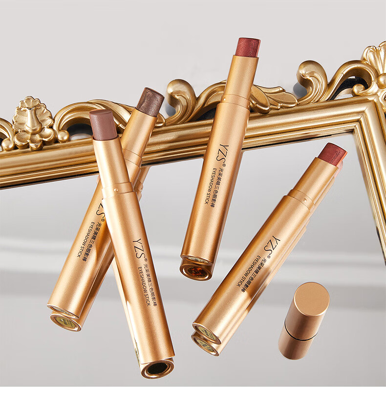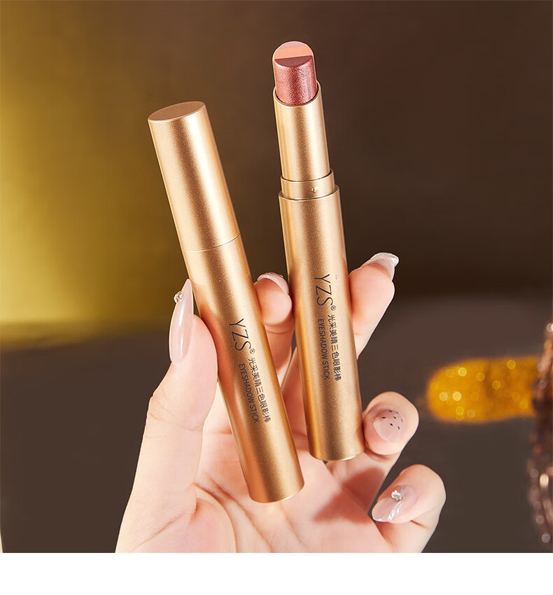 YHYH三色眼影棒高光修容腮红渐变眼影笔珠光细闪哑光大地棕防水不掉色 03-细闪奶咖【约会首选】