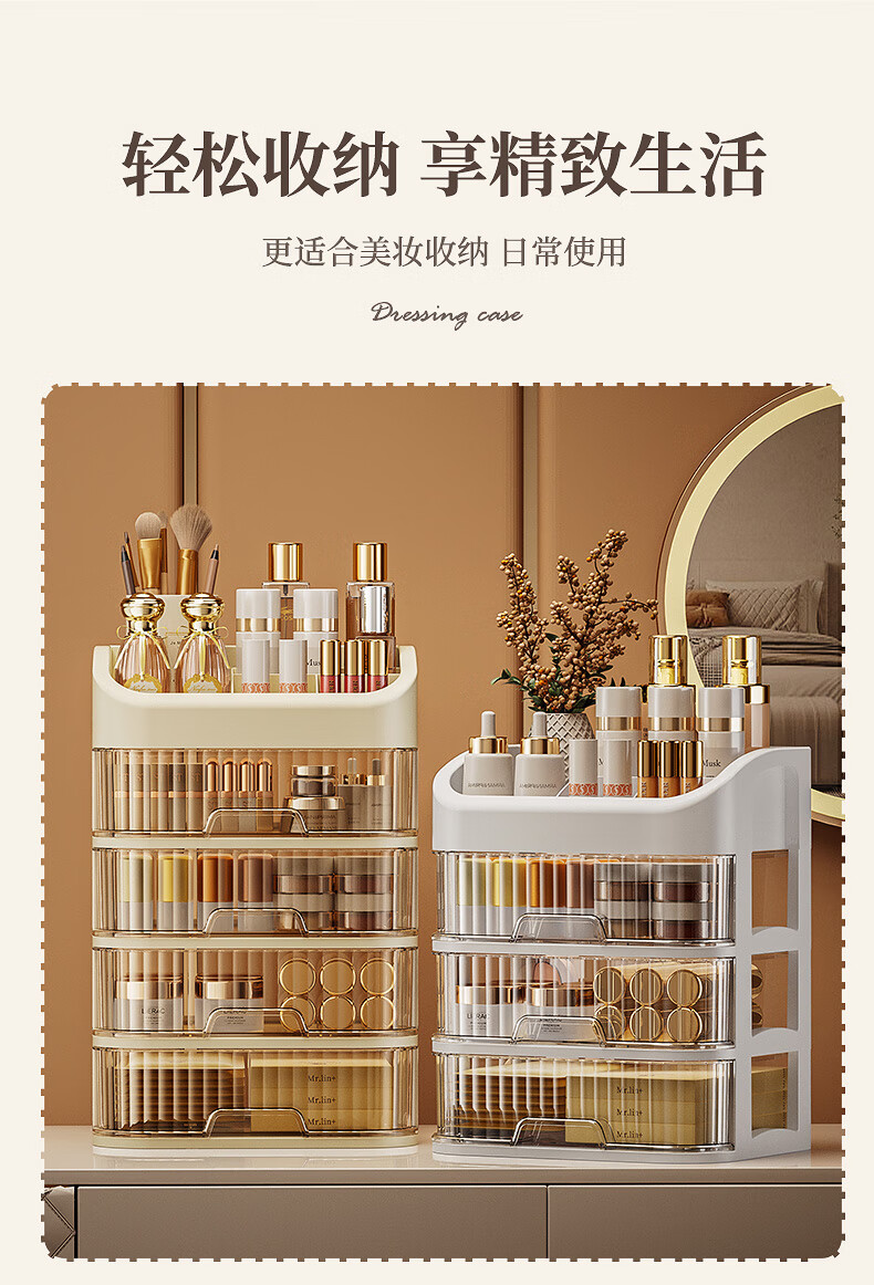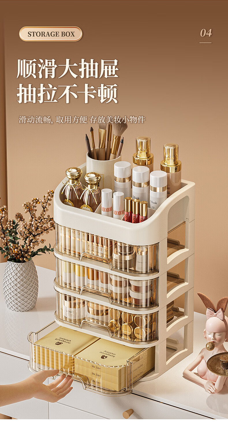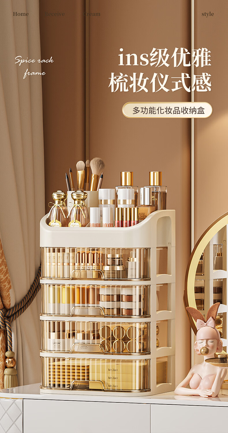 纳份爱化妆品收纳盒桌面抽屉式口红化妆刷整理盒子梳妆台护肤品收纳神器 奶白色4层【活动价】