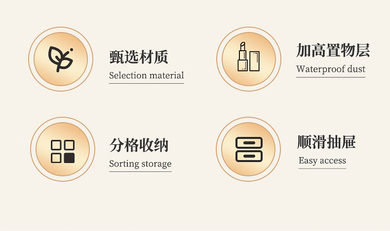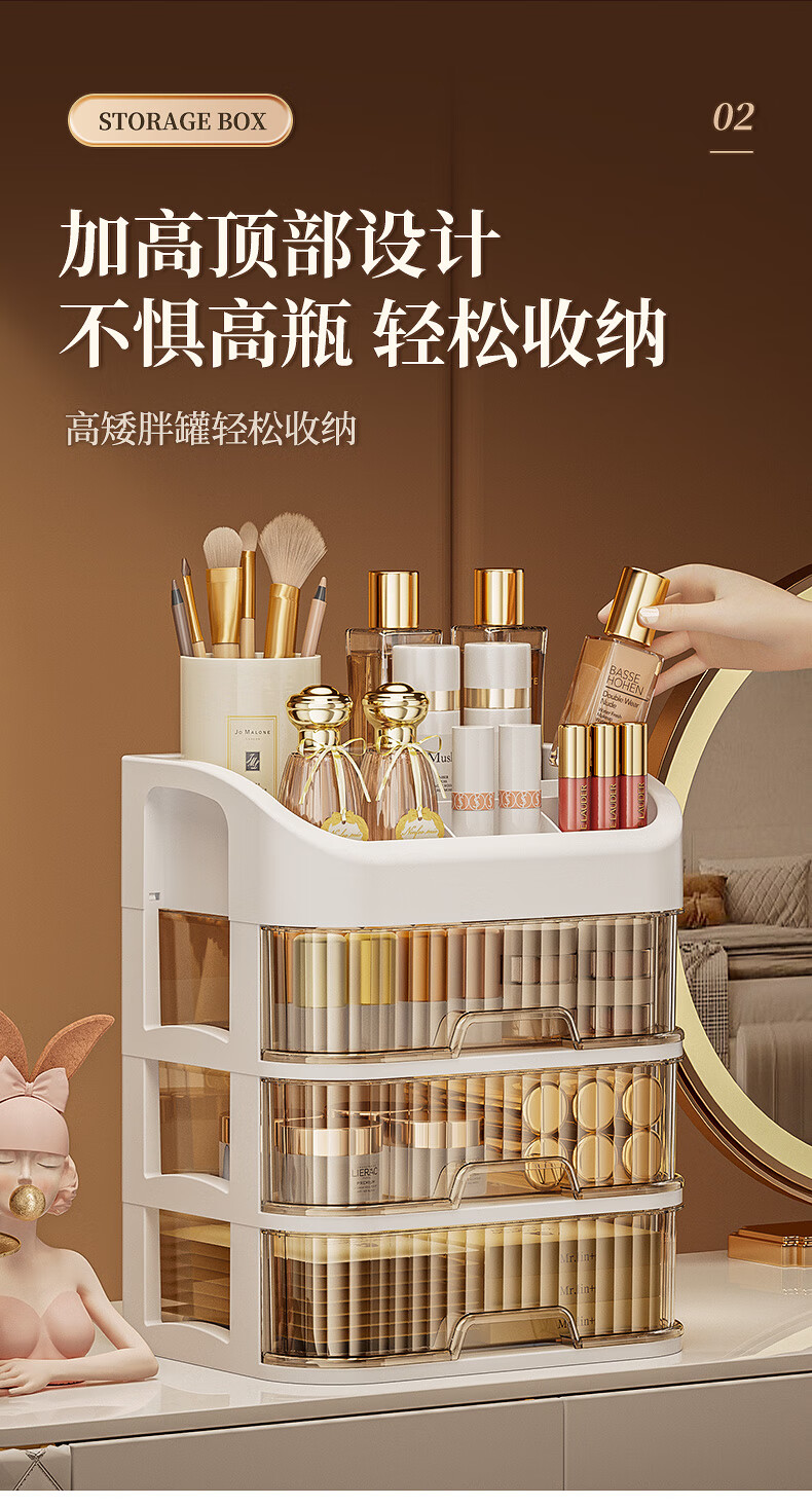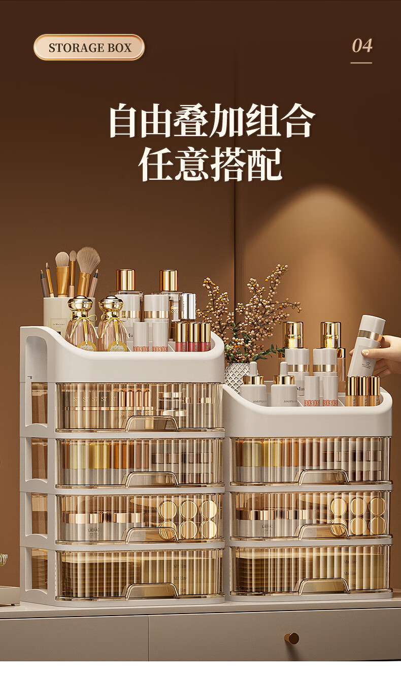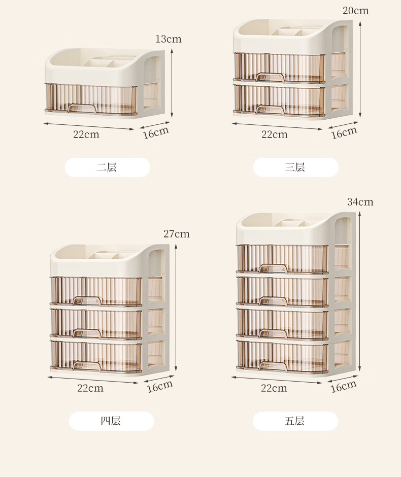 纳份爱化妆品收纳盒桌面抽屉式口红化妆刷整理盒子梳妆台护肤品收纳神器 奶白色4层【活动价】
