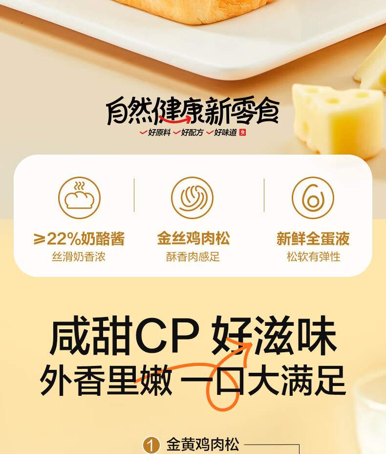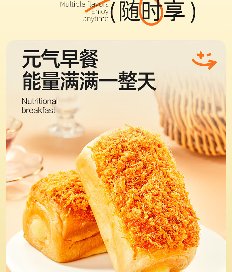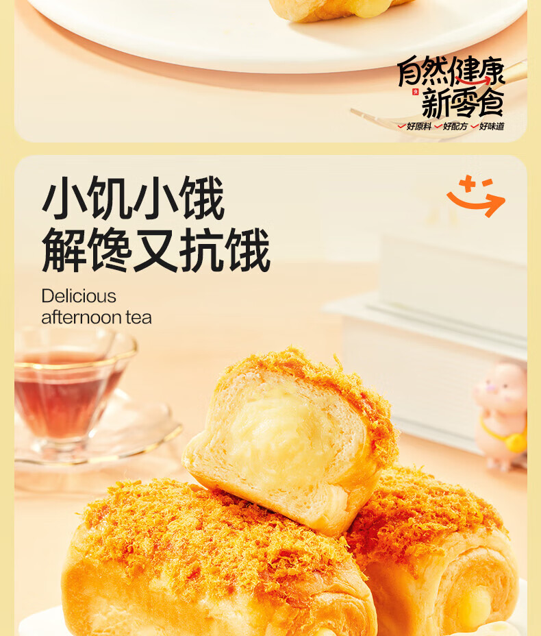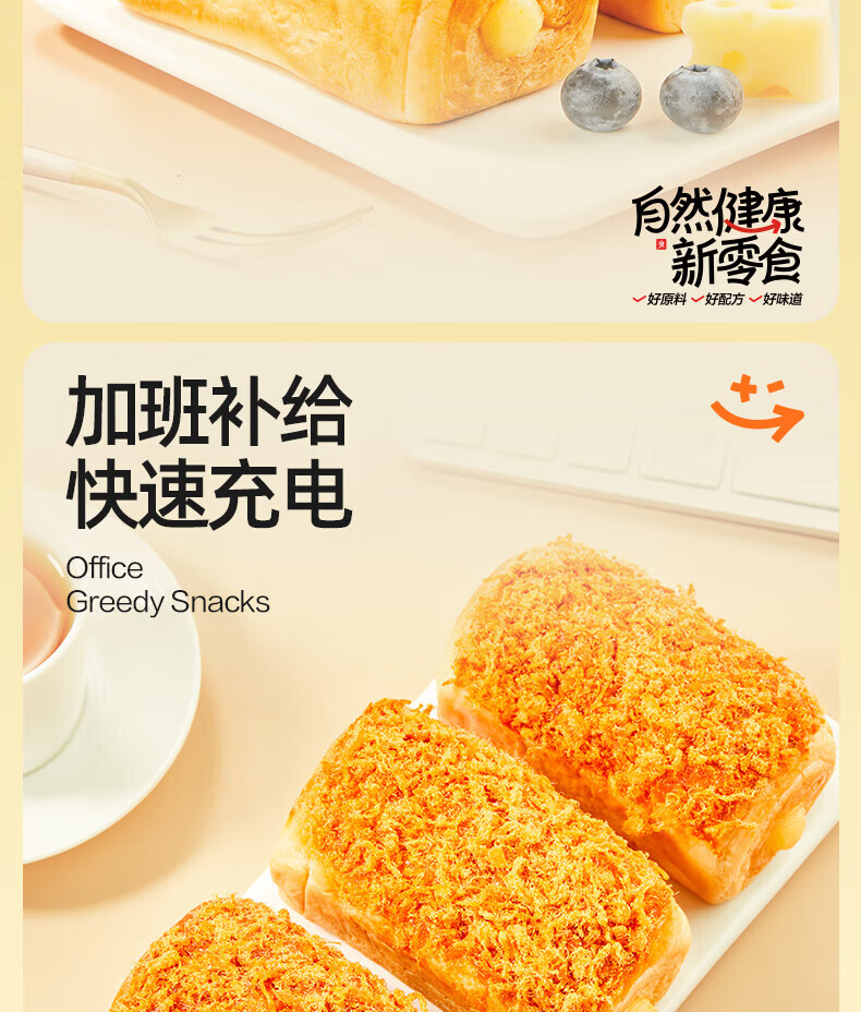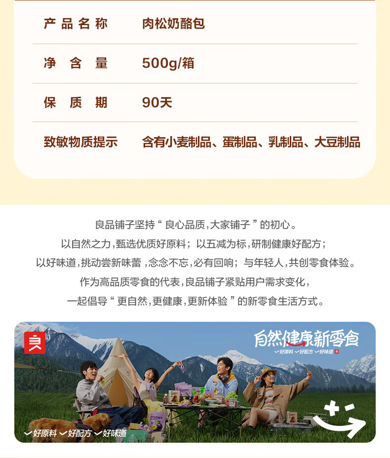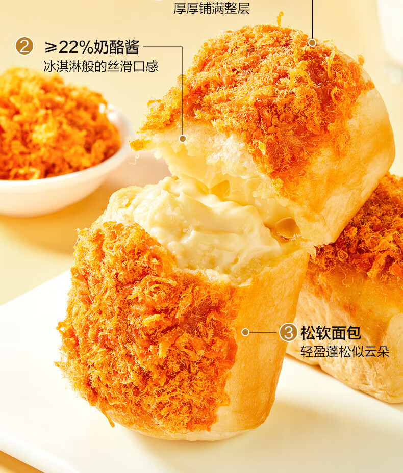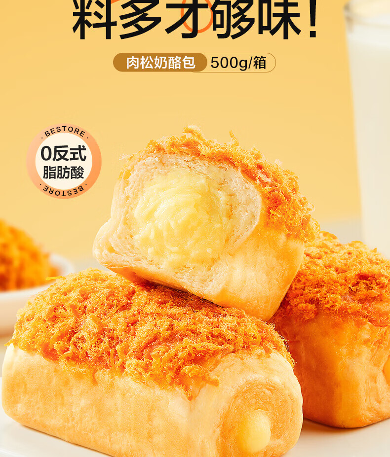 良品铺子肉松奶酪面包早餐整箱学生营养代餐主食夹心红豆面包零食 [松软馅料足]肉松奶酪包500g
